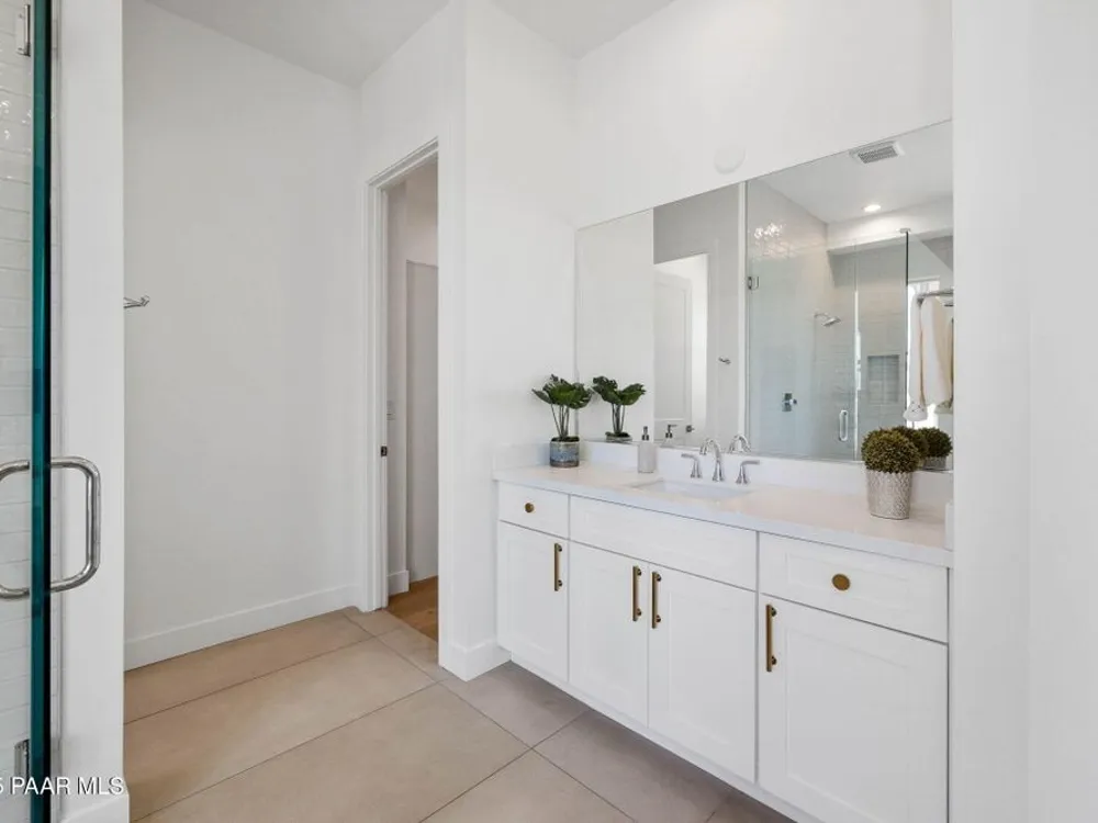 Former model home in gated Solstice Ridge II at Prescott Lakes with over $100k in builder upgrades and prime location on the highest point of the community. Offering panoramic golf course and mountain views! Includes all model home furnishings, decor and professional landscaping. Single level 3BR/2.5BA farmhouse style design with vaulted and open beam ceilings, wood & custom tile floors, and stone fireplace. Designer kitchen features granite, upgraded stainless appliances and a walk-in pantry. Spacious master suite with soaking tub, walk-in shower and large closet. 3-car finished garage with epoxy floors and large covered patio for entertaining. Enjoy Prescott Lakes amenities: private golf course, clubhouse, pools, pickleball, and fitness center.