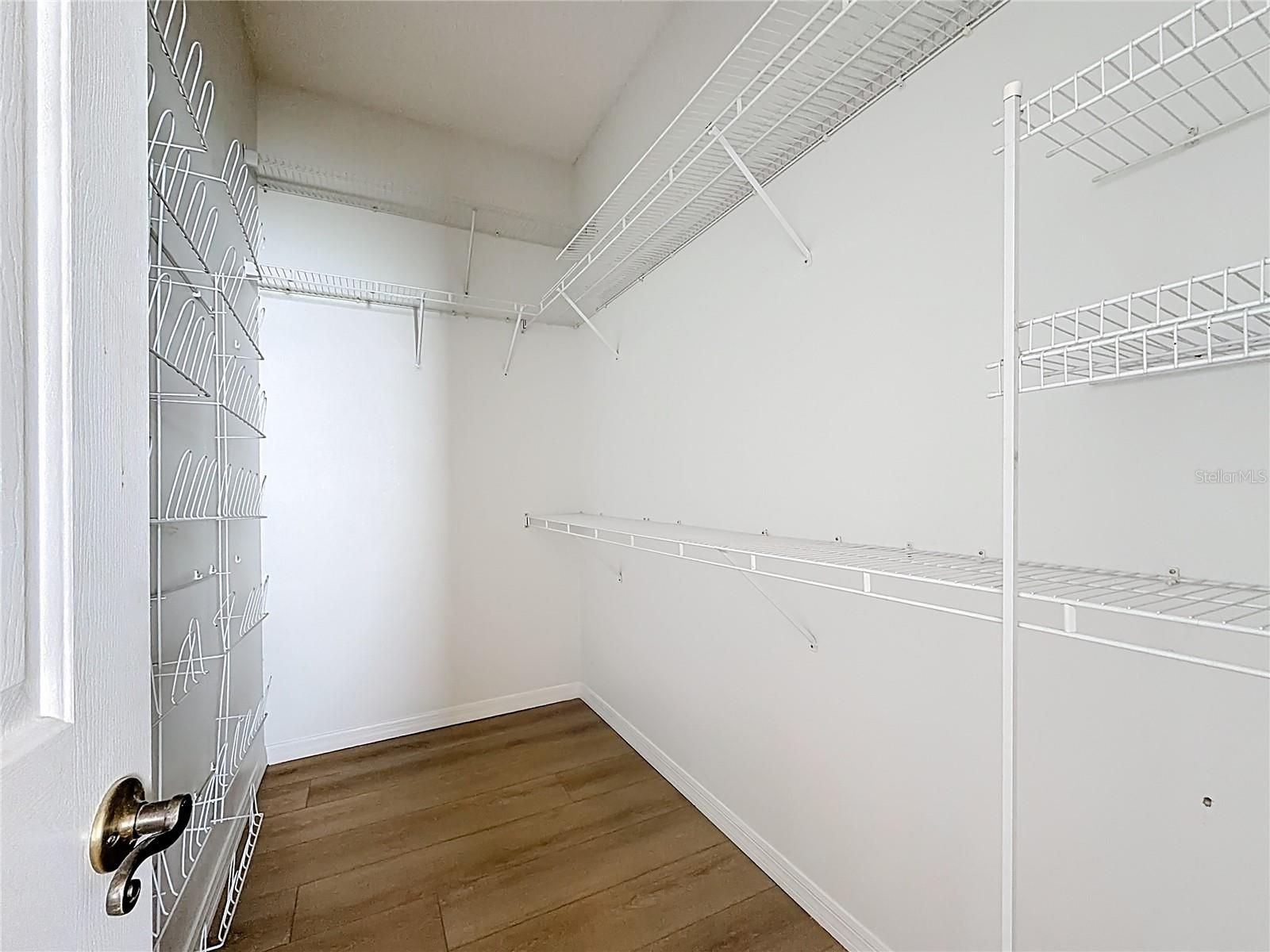 - Ceiling Fan(s), Crown Molding, Living/Dining Room, Main Level Primary, Solid Surface Counters, Thermostat, Vaulted Ceiling(s), Walk-In Closet(s)