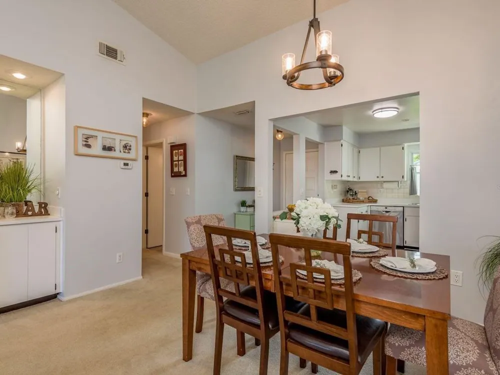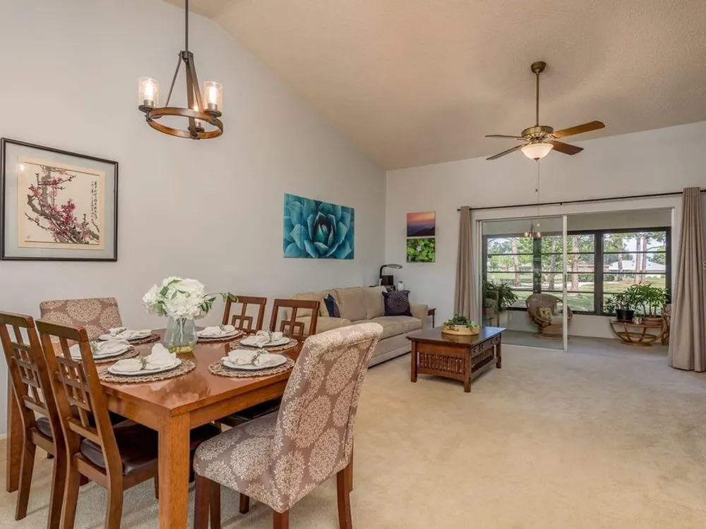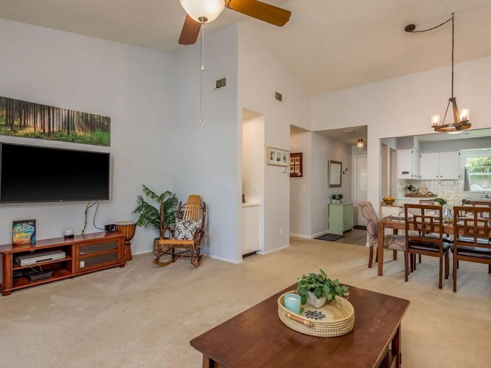 - Cathedral Ceiling(s), Ceiling Fan(s), Eat-in Kitchen, High Ceilings, Kitchen/Family Room Combo, Living/Dining Room, Open Floorplan, Main Level Primary, Vaulted Ceiling(s), Walk-In Closet(s), Window Treatments