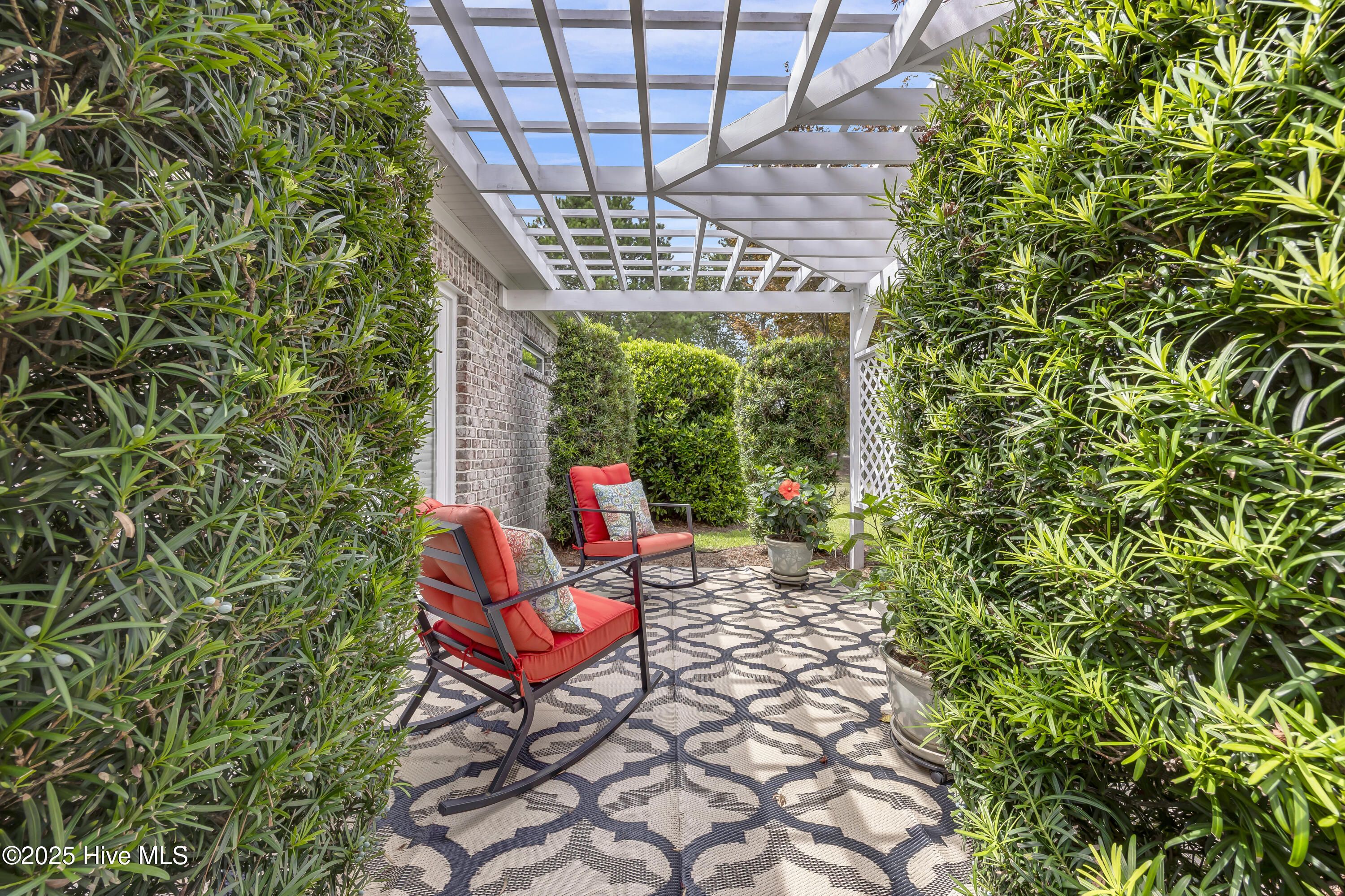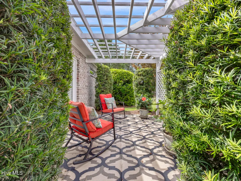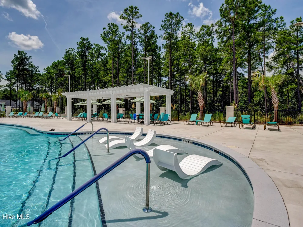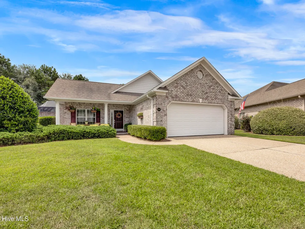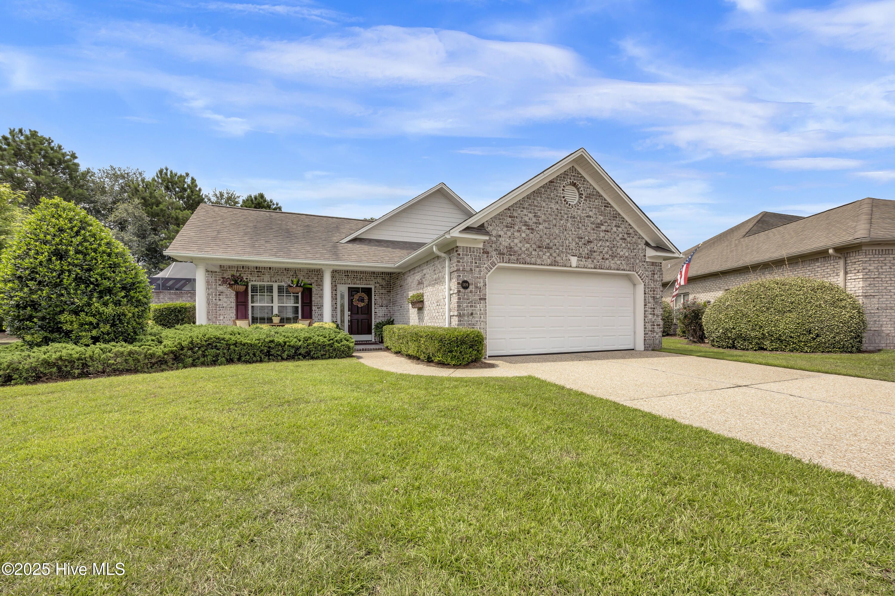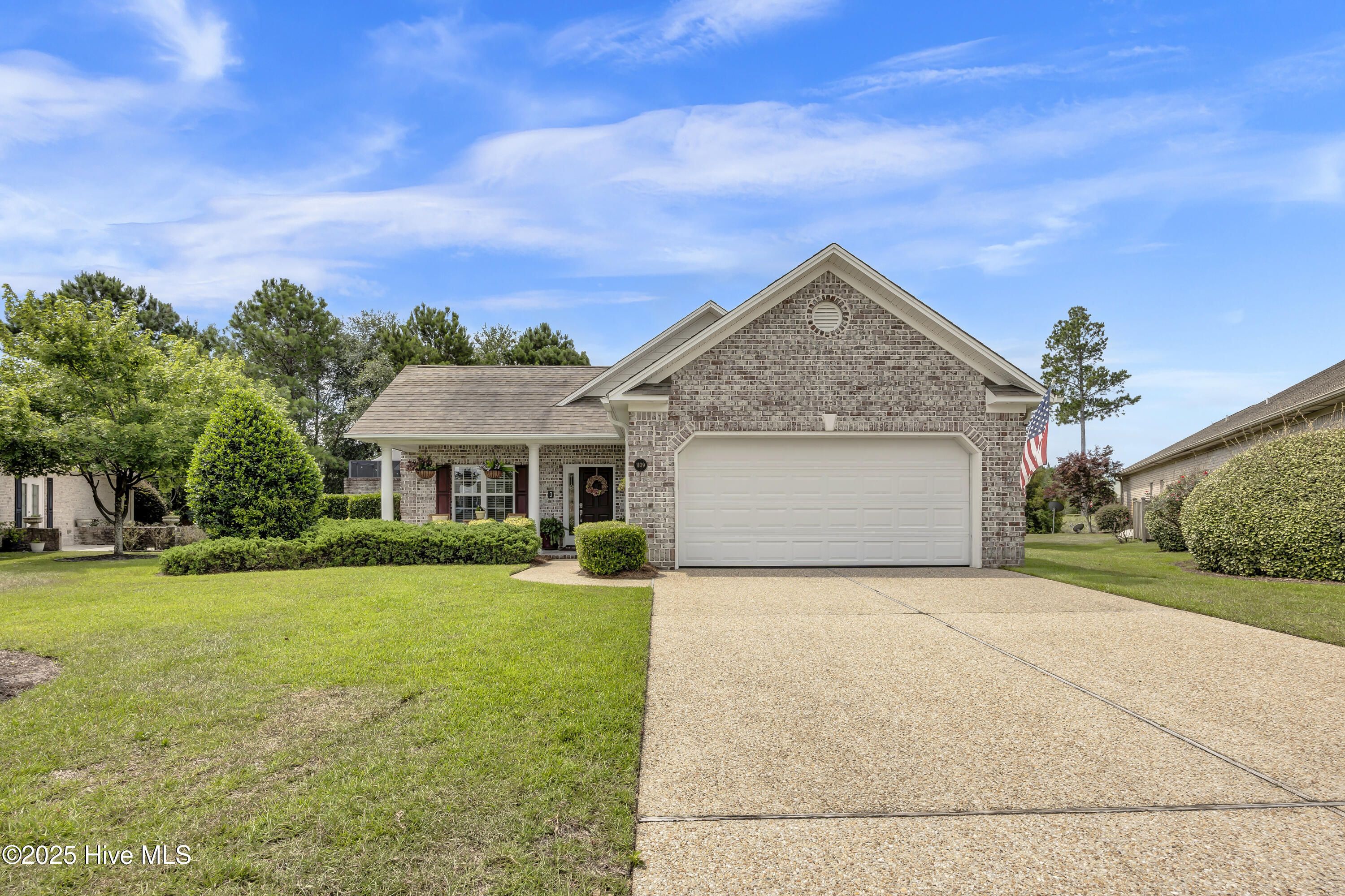 Located in a cul-de-sac within the Jefferson Landing neighborhood of Brunswick Forest, this beautifully updated, move-in ready home offers 2,227 sq ft of thoughtfully designed living space with tasteful upgrades throughout. The 3-bedroom, 2.5-bath layout includes select accessibility modifications, such as widened doorways and halls in certain areas, offering added functionality without sacrificing style.The main living area features soaring vaulted ceilings that create an open and airy feel, seamlessly connecting to the kitchen and dining areas. The kitchen boasts granite countertops, stainless steel appliances, and abundant cabinet space -- plus a custom-installed dry bar perfect for entertaining. A versatile office or flex space sits at the front of the home, ideal for working remotely or relaxing.The spacious primary suite includes a walk-in closet and a spa-like bathroom with a soaking tub, tiled walk-in shower, and double vanity. Engineered hardwood floors can be found throughout the home. Outdoor living is a highlight, with two distinct spaces: a covered lanai on one side of the home and a separate patio with a pergola on the other -- offering flexibility for both relaxing and hosting. Additional features include an epoxy-coated garage floor and freshly painted garage walls. Updated mechanicals include a new HVAC system in 2018 and hot water heater in 2021.Set on a 0.31-acre lot in one of the area's most popular master-planned communities, this home offers comfort, quality, and convenience in a sought-after location just minutes from downtown Wilmington.
