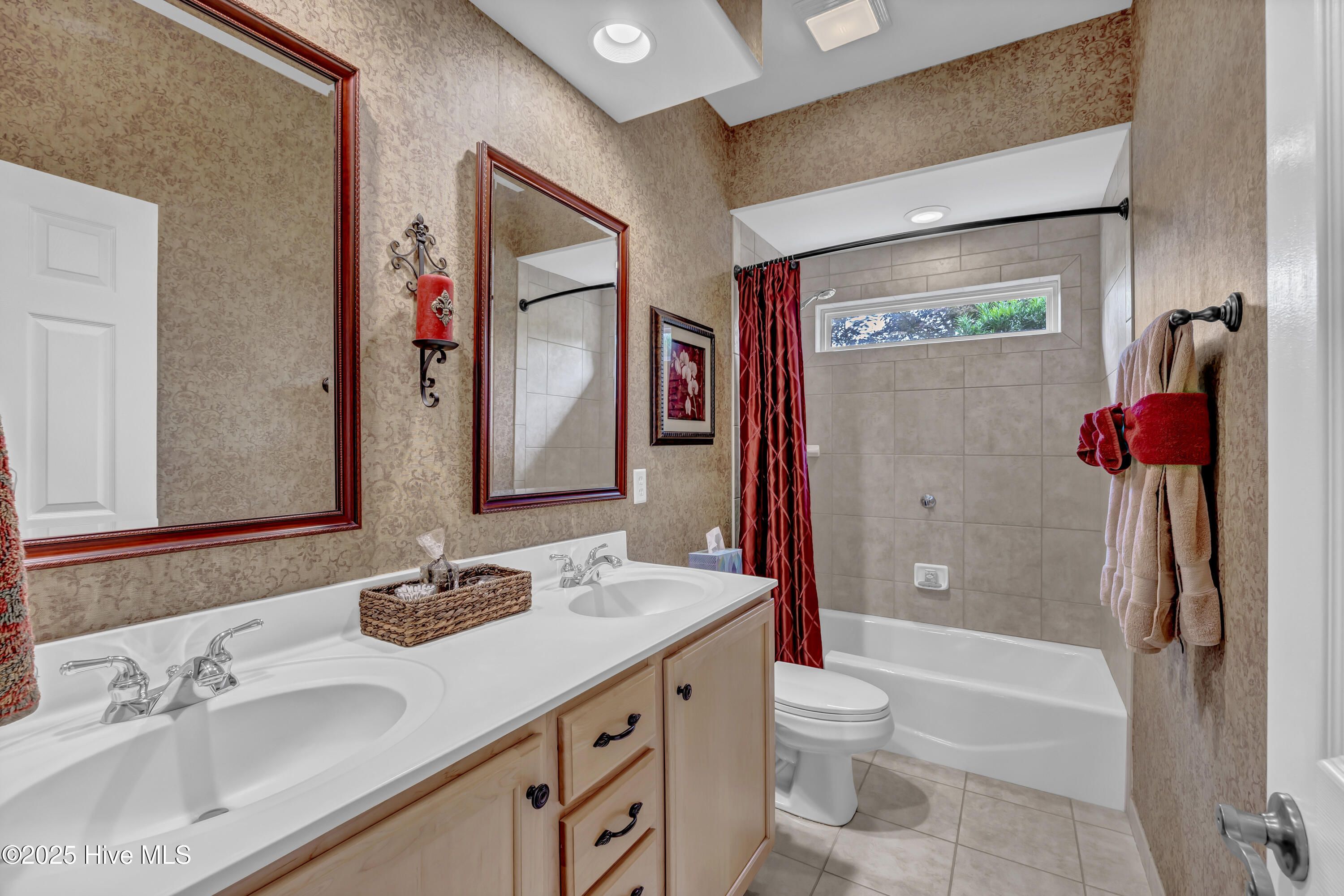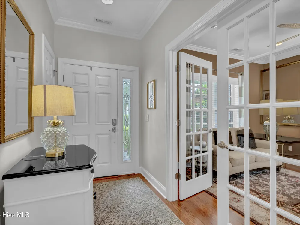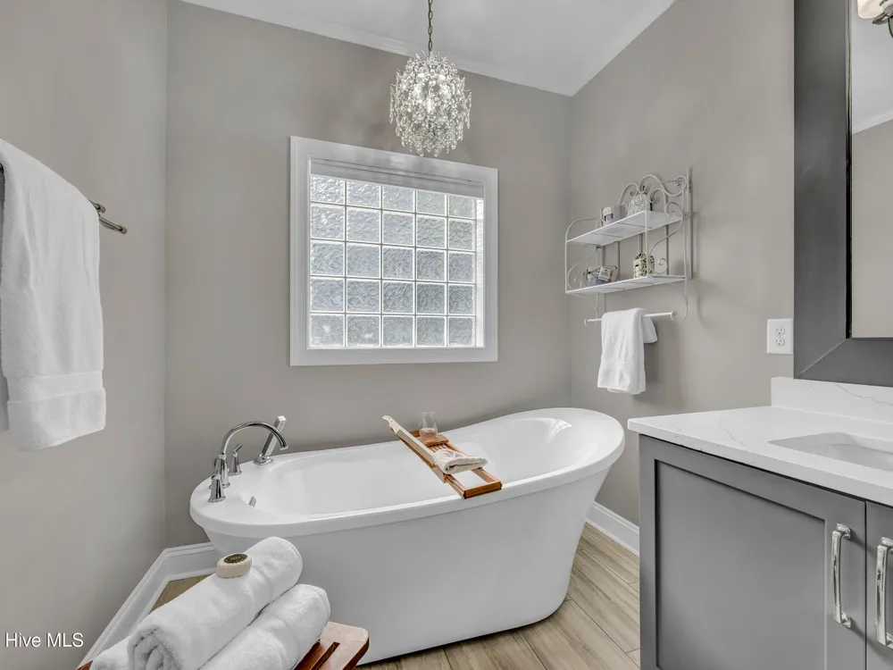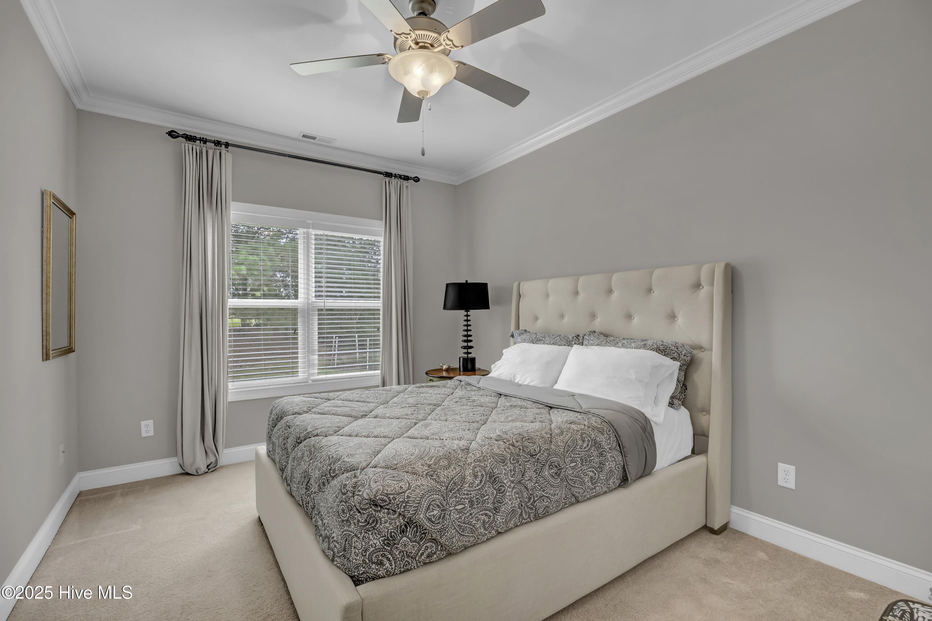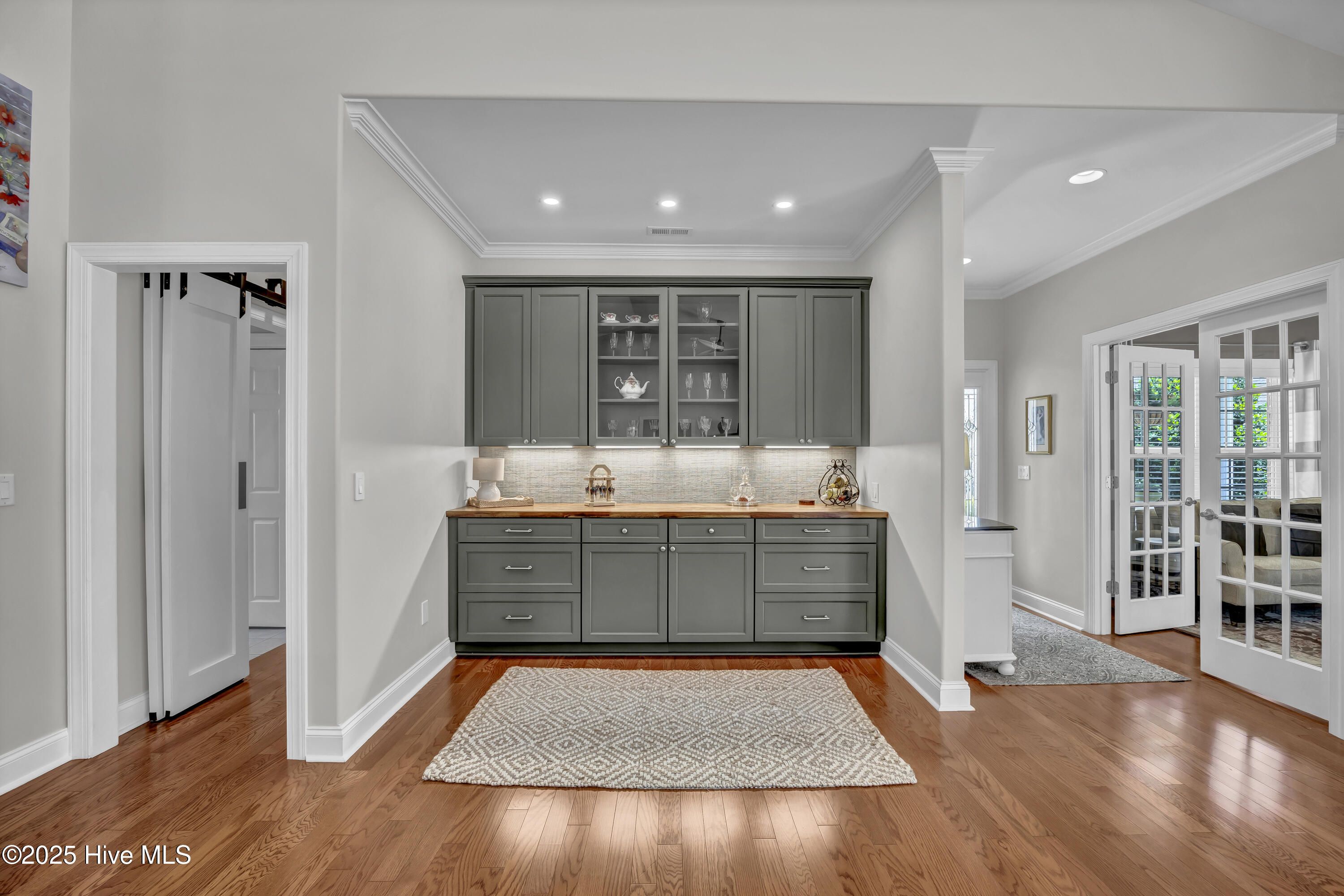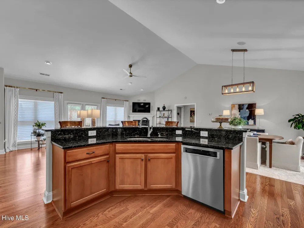 Located in a cul-de-sac within the Jefferson Landing neighborhood of Brunswick Forest, this beautifully updated, move-in ready home offers 2,227 sq ft of thoughtfully designed living space with tasteful upgrades throughout. The 3-bedroom, 2.5-bath layout includes select accessibility modifications, such as widened doorways and halls in certain areas, offering added functionality without sacrificing style.The main living area features soaring vaulted ceilings that create an open and airy feel, seamlessly connecting to the kitchen and dining areas. The kitchen boasts granite countertops, stainless steel appliances, and abundant cabinet space -- plus a custom-installed dry bar perfect for entertaining. A versatile office or flex space sits at the front of the home, ideal for working remotely or relaxing.The spacious primary suite includes a walk-in closet and a spa-like bathroom with a soaking tub, tiled walk-in shower, and double vanity. Engineered hardwood floors can be found throughout the home. Outdoor living is a highlight, with two distinct spaces: a covered lanai on one side of the home and a separate patio with a pergola on the other -- offering flexibility for both relaxing and hosting. Additional features include an epoxy-coated garage floor and freshly painted garage walls. Updated mechanicals include a new HVAC system in 2018 and hot water heater in 2021.Set on a 0.31-acre lot in one of the area's most popular master-planned communities, this home offers comfort, quality, and convenience in a sought-after location just minutes from downtown Wilmington.