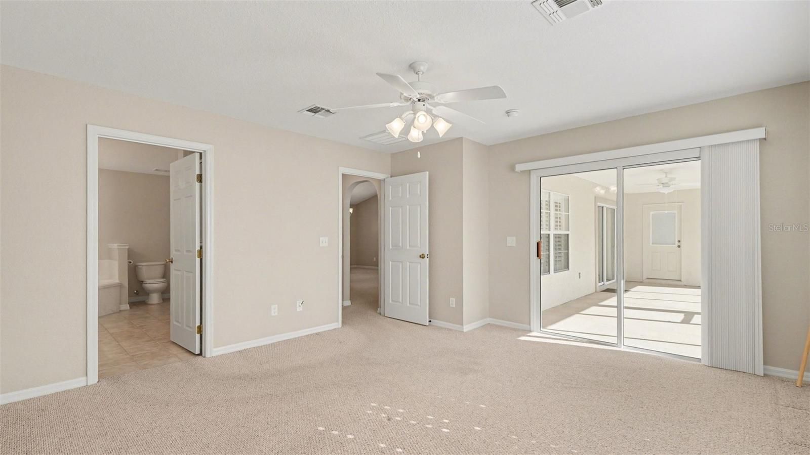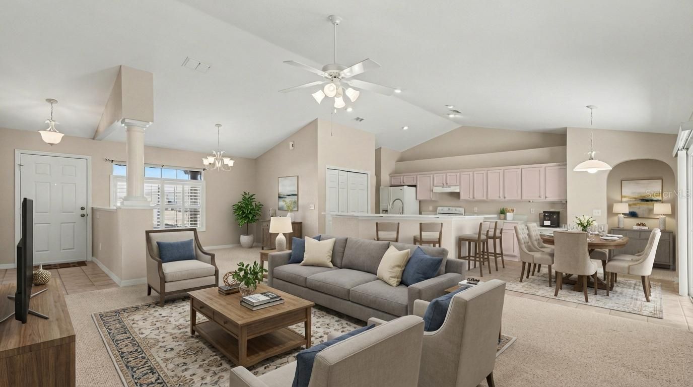 - Ceiling Fan(s), Kitchen/Family Room Combo, Living/Dining Room, Other, Main Level Primary, Solid-Wood Cabinets, Stone Counters, Thermostat, Walk-In Closet(s)