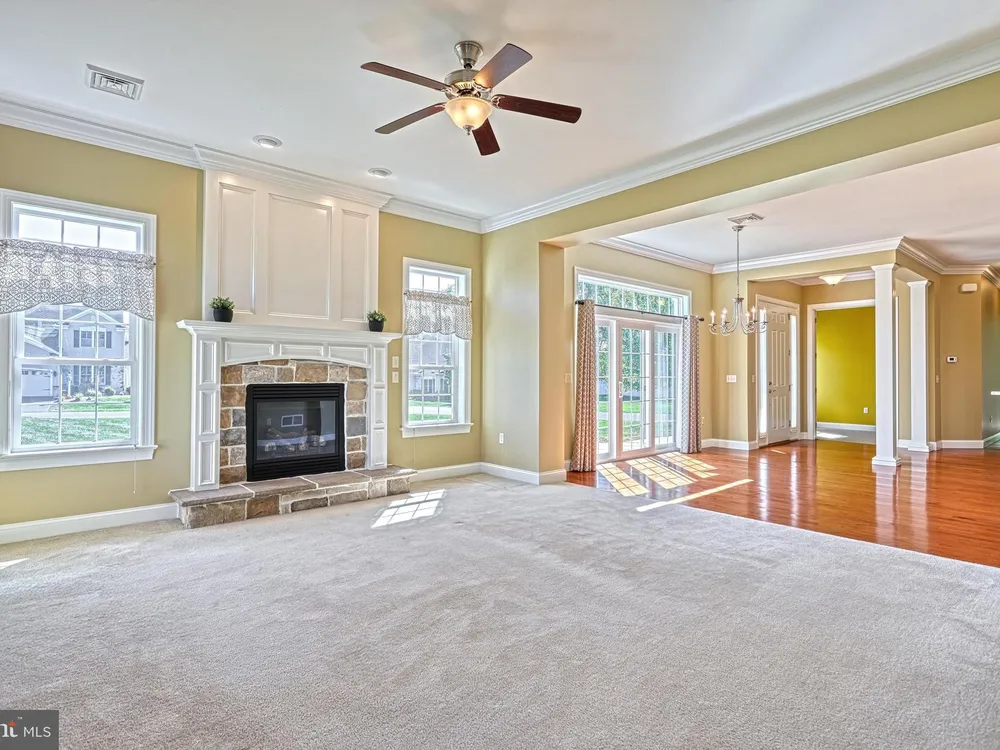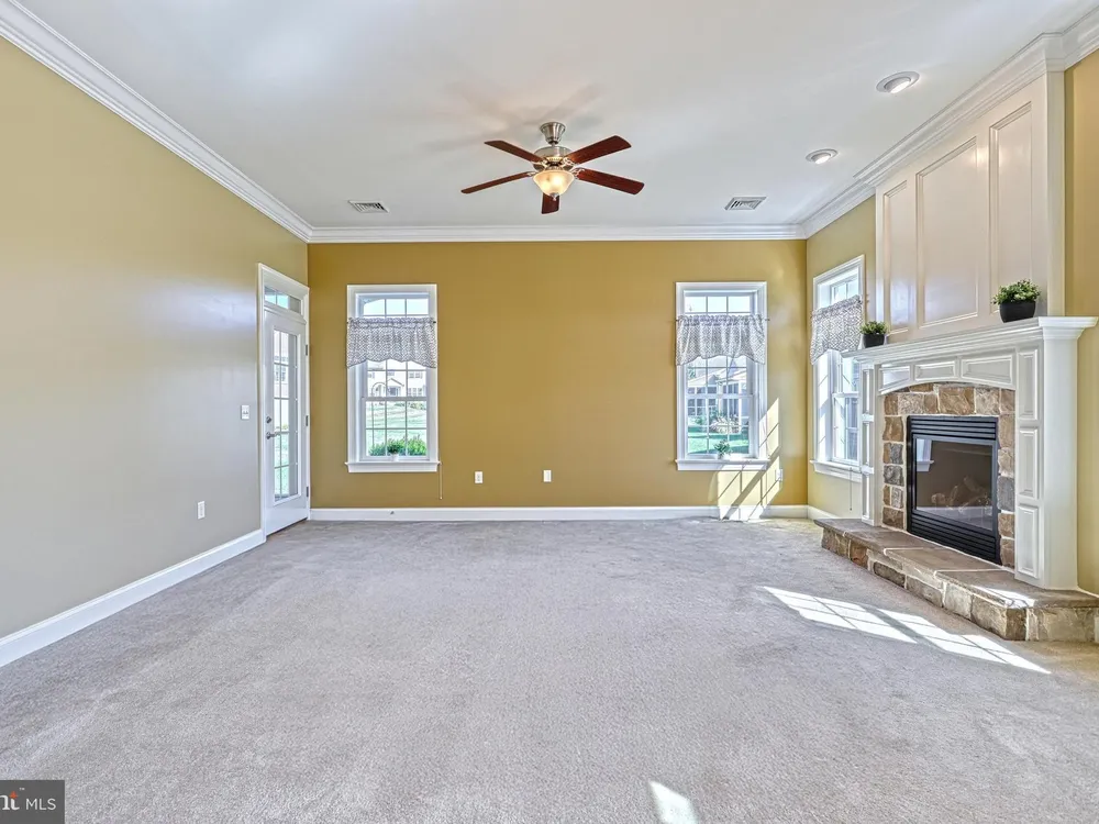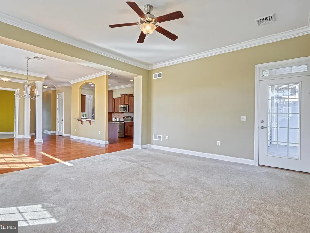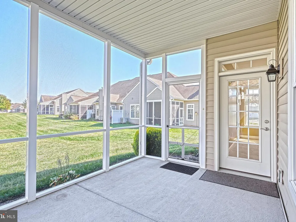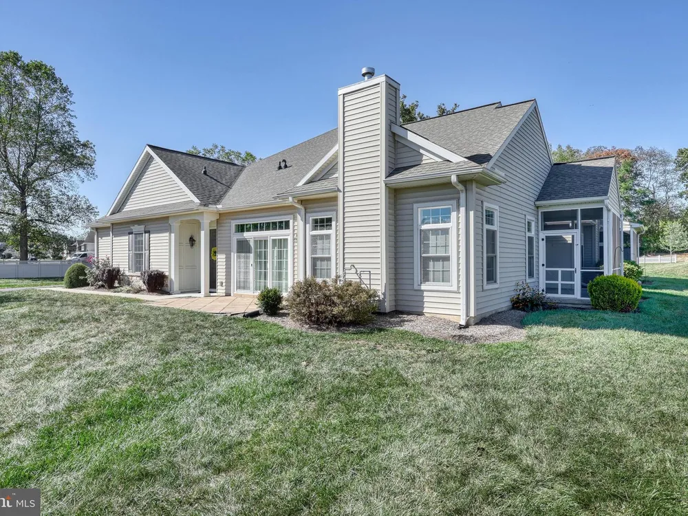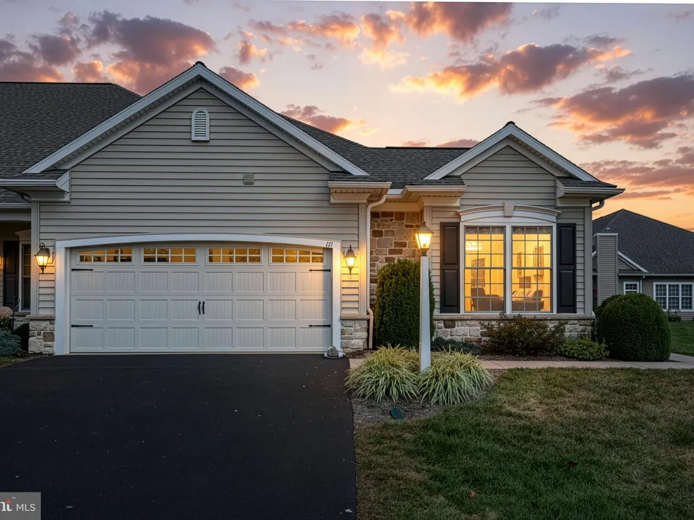 Welcome to effortless single-floor living at 111 Carmella Drive! This beautifully designed 2-bedroom, 2-bath semi-detached ranch home located within the Carmella 55+ community offers a perfect blend of comfort, elegance, and convenience. Enjoy soaring 9+ foot ceilings, crown molding, and luxury vinyl plank flooring that flows throughout most of the main living areas. The kitchen impresses with granite countertops, stainless steel appliances, and a spacious layout perfect for cooking and entertaining. The open-concept living room with a vaulted ceiling is both spacious and inviting, highlighted by a cozy gas fireplace that creates the perfect gathering spot. A bright den with French doors, plush carpet, and a coffered ceiling provides the ideal space for a home office or reading retreat. Convenient main-level laundry adds ease to everyday living. The primary suite is a true retreat, showcasing a lighted tray ceiling, walk-in closet, a double vanity, tiled flooring, and a walk-in shower with a glass door. The secondary bathroom features tiled flooring, a full tub and shower combination, and stylish finishes. Both bedrooms feature soft carpeting for added warmth and comfort. Abundant natural light fills the home thanks to the home’s desirable location within the community. Step outside and enjoy two beautiful outdoor spaces with a paved patio off the dining area and a private screened-in porch off the living room overlooking open green space. An unfinished bonus space located in the attic provides a fantastic opportunity for additional storage or future flex space to fit your needs. The condominium association provides maintenance-free living, to include lawn care, snow removal, exterior building maintenance, roof replacement and all common areas maintenance throughout the community. Residents also enjoy access to a clubhouse, fitness center, and community outdoor pool, offering a wonderful lifestyle just steps from your door. Schedule your private tour today!