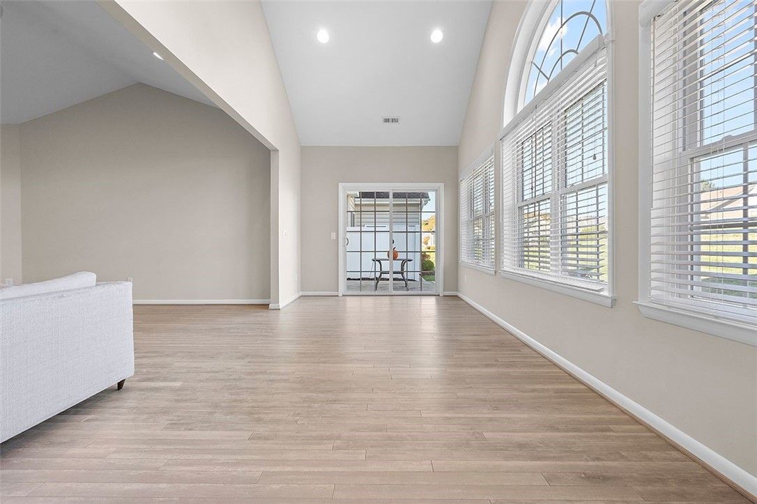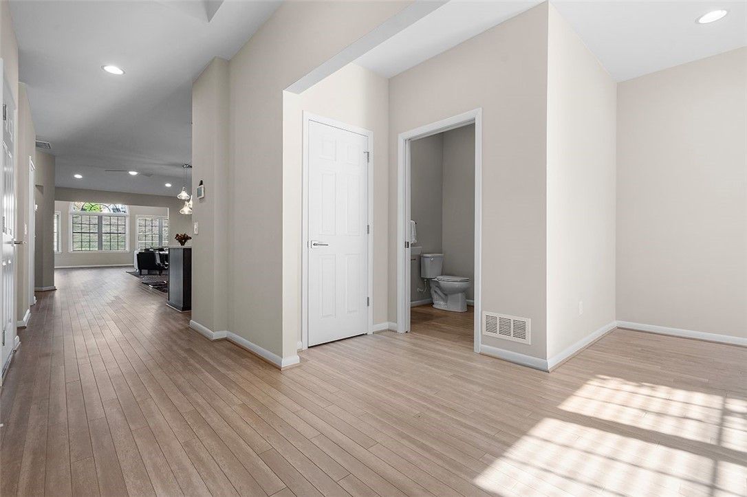 Prepare to welcome Spring ’26 in this upgraded patio home at Traditions of America Summer Seat, a 55+ Lifestyle community designed for active, stress-free living. Lofty ceilings, combined with neutral décor, contribute volume and serenity to this comfortably stylish residence. Hardwood floors greet you in the spacious foyer, beneath a tray ceiling, and continue through the adjacent den plus powder room. This flexible space is perfect for an office or library. The central hallway leads to garage access, Guardian home controls and the open chef’s kitchen, anchored by an angled island with pendant lighting. Cabinetry is equipped with pull-outs for easy access to ample storage, supplemented with a pantry closet, lazy Susan and trash drawer. A five-burner gas range, stainless steel appliances, quartz countertops, glass tile backsplash and box bay window above the Kohler ceramic sink lend character and functionality to this nucleus of the home. Continuous hardwood flooring ensures a seamless transition to the dramatic open-concept dining/living areas. The great room ceiling is vaulted, with a fan and recessed lighting. White window blinds offer clean lines. Favorite furnishings will find themselves at home here. Capturing your attention beyond is an awesome 21 ft sunroom, with gorgeous windows, vaulted ceiling, patio door access, ready to accommodate a cherished piano or an indoor plant collection. The main-floor primary suite delivers comfort and privacy, with its tray ceiling, window seat, luxury tiled shower, double quartz vanity, linen storage plus huge walk-in closet. Upstairs, a carpeted loft/sitting area plus second bedroom and full bath with crystalline tilework provide an optional suite for family or guests. The walk-out attic holds the gas furnace, humidifier, tankless Noritz water heater and plenty of room for treasures. Adjacent to the stairwell, across from the kitchen, a convenient utility room includes a laundry pair and washtub, storage cabinetry, a separate closet for bulky appliances, etc. Resort-style amenities are included with ownership here, including a heated pool, pickleball court, clubhouse with fitness center, sports bar and library. You won’t have time to miss the yard work or the basement you left behind!