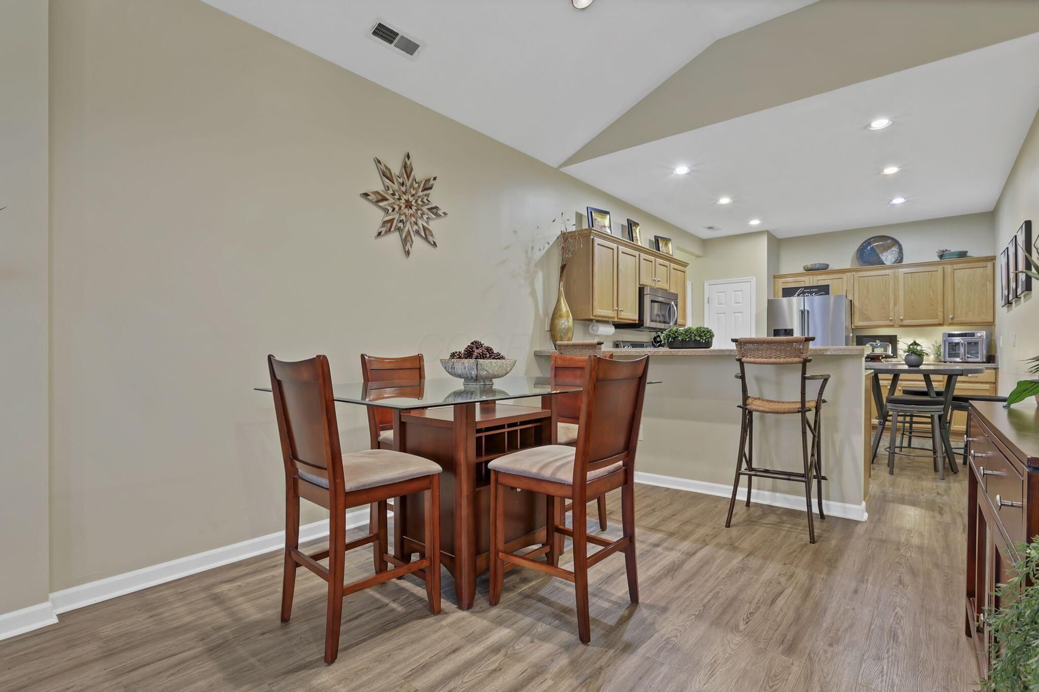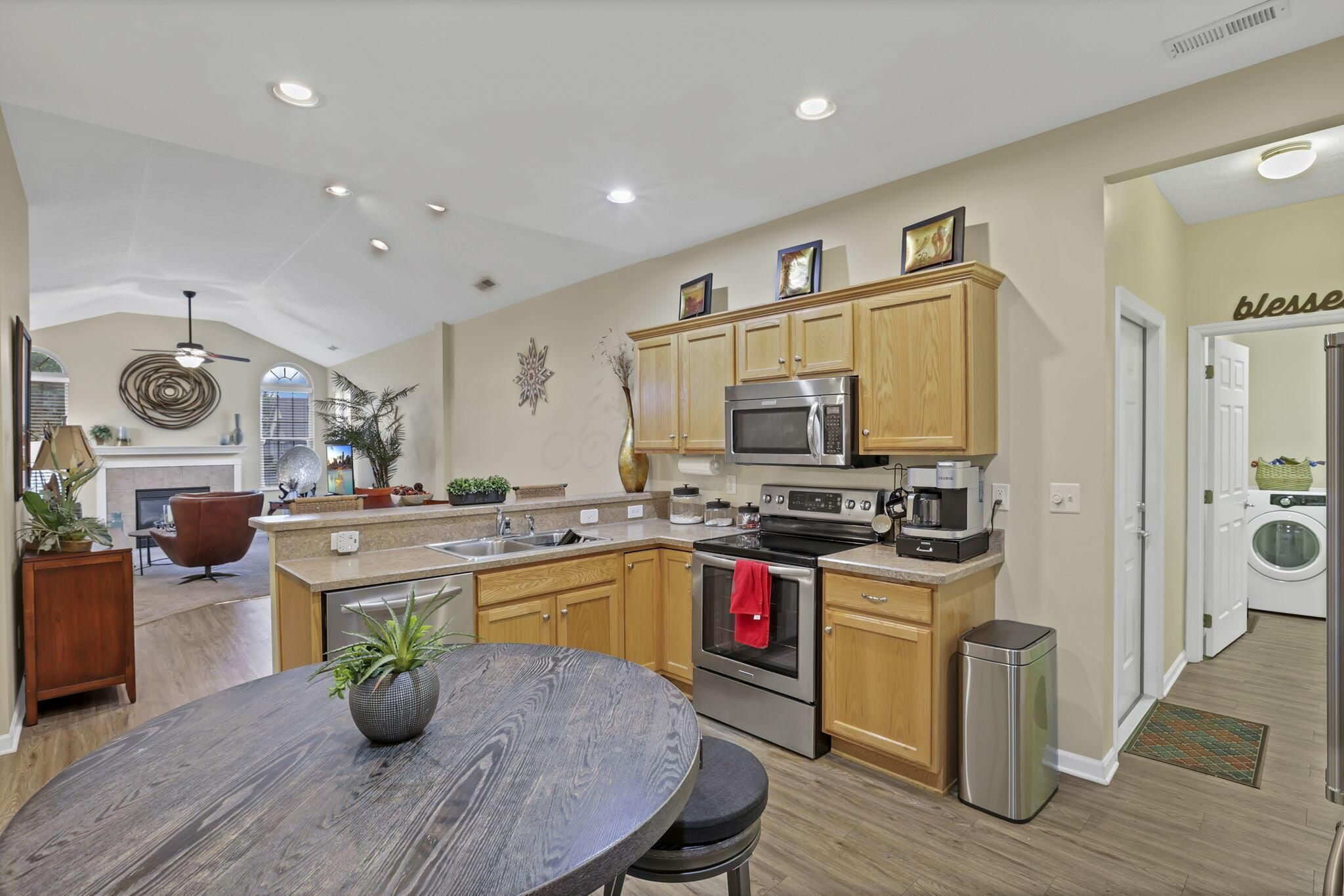 Welcome to a premier, low-maintenance lifestyle in the desirable Villas at Milnor Crossing. This beautifully maintained ranch condominium offers a blend of comfort and convenience with a sought-after first-floor living design. The open and bright great room features a vaulted ceiling, a cozy gas log fireplace, and ample windows for an abundance of natural light. The space flows seamlessly into the dining area and an inviting kitchen, which boasts a breakfast bar, upgraded appliances, and granite countertops. The home includes two spacious bedrooms and two full bathrooms, including a primary suite with a private bath and vanity. A convenient first-floor laundry room and an attached two-car garage add to the ease of living. This home is well maintained with a new AC Unit in 2024! Spend time outside on your patio, or take advantage of the excellent community amenities, including a clubhouse, fitness area, and swimming pool. The prime Pickerington location offers easy access to local parks, dining, and shopping. See A2A Remarks!
