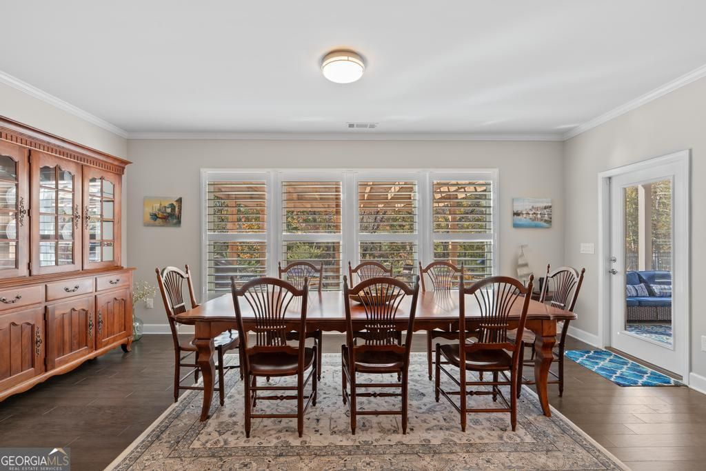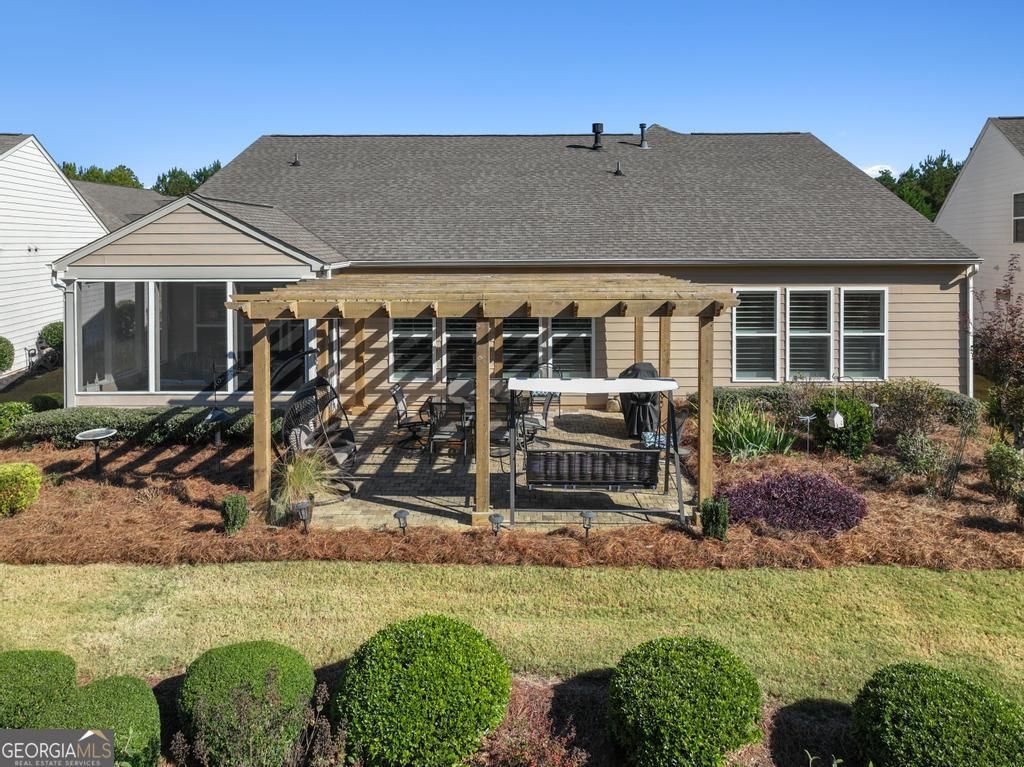 Embrace the Ultimate 55+ Lifestyle in Sun City Peachtree with the Dunwoody Way Plan Welcome to Your Dream Home: Step into the epitome of luxury and comfort with one of the most sought-after floorplans in the prestigious 55+ community of Sun City Peachtree - the Dunwoody Way Plan. Known for its expansive and open layout, this home is a haven of elegance with hardwood floors and beautiful tile, designed for those who cherish wide open spaces and refined living. Culinary excellence awaits! At the heart of this home is a chef's dream kitchen, featuring a large center island that serves as a focal point for gatherings, offering seating for four. Enjoy unobstructed views of the family room, breakfast area, foyer, and sunroom, ensuring you're always part of the conversation. The kitchen boasts a raised dishwasher, 5-burner gas cooktop, walk-in pantry, wall ovens, granite countertops with tile backsplash, under-cabinet lighting, and ample workspace, creating the perfect blend of functionality and style. A 2nd walk-in deep closet is available for additional storage or pantry overflow. Indulge in the comfort of two spacious bedrooms, 2.5 baths, and a generous flex space currently utilized as 3rd bedroom. This home features tons of upgrades, including new plantation shutters throughout and new top end KitchenAid appliances. The back of home is complemented by a large pergola with stone patio and upgraded irrigation system. The two-car garage also has a 3rd space w/garage door for golf cart, motorcycles, bikes, or whatever toys you fancy. Further enhancements include a screened porch conversion, a fully finished and climate-controlled upper attic storage space, custom Elfa shelving systems in multiple closets, and enhanced crown molding trim package. Other upgrades include, thermal acoustical pest control attic insulation, insulated garage doors and more garage upgrades including 7-piece wall-mounted steel cabinet storage system, elevate the home's efficiency and convenience. Bask in the natural light of the expansive owner's suite, leading to a luxurious bath with double vanity, plus separate third vanity space, and an easy-entry walk-in shower. The meticulously organized walk-in closet is a dream for the tidy-minded. With no homes or roads directly behind, the stone patio and pergola offer a serene escape, perfect for enjoying meals, entertaining large groups or morning coffee amidst the tranquility of wooded views and nature's melody. Sun City Peachtree is not just a home; it's an unmatched lifestyle. With the 45,000 sq ft Club Peachtree at your disposal, enjoy a ballroom, library, movie theater, heated indoor/outdoor pool, state-of-the-art fitness center, tennis, bocce, pickleball courts, dog park, playground, and more. A full-time lifestyle director ensures a vibrant community life with over 60 clubs and interest groups, complemented by an age-restricted private 18-hole golf course in this golf cart-friendly community. Walking trails and golf cart lanes blanket the community. Discover Your Perfect Home Today: Don't let this extraordinary opportunity pass. Experience the exceptional lifestyle awaiting in Sun City Peachtree. All the shopping, dining and additional entertainment you could possibly need is less than 10 minutes way including medical facilities. Schedule your visit today and step into a world where luxury meets comfort and community. Your dream home is ready for you to move in and cherish the fabulous life that awaits.