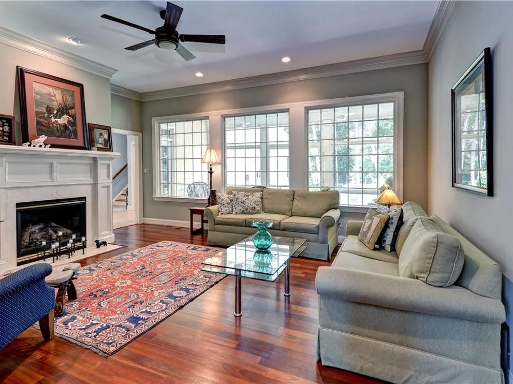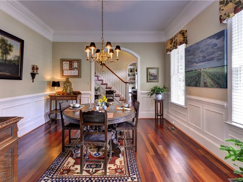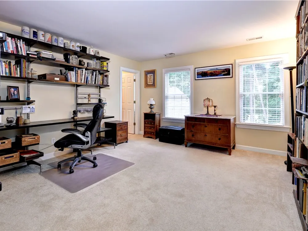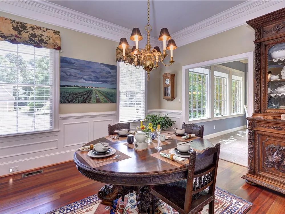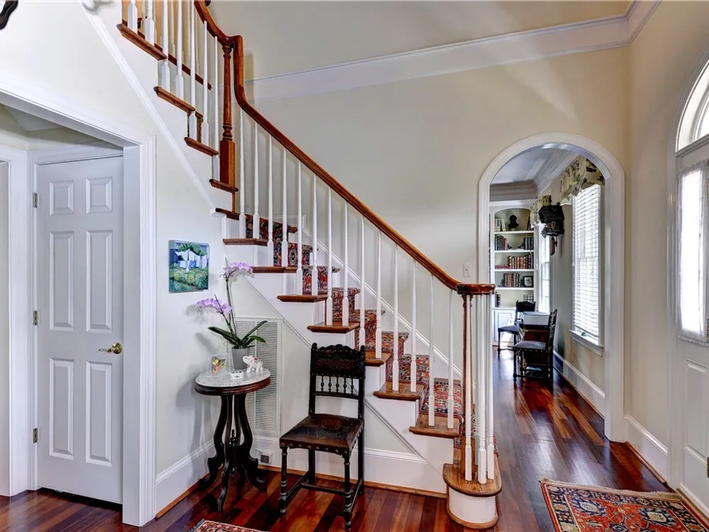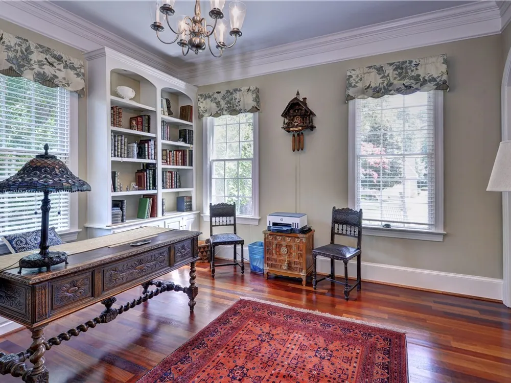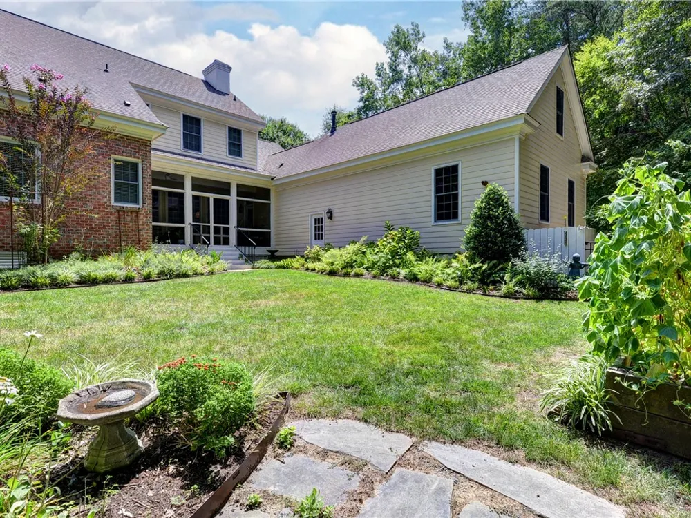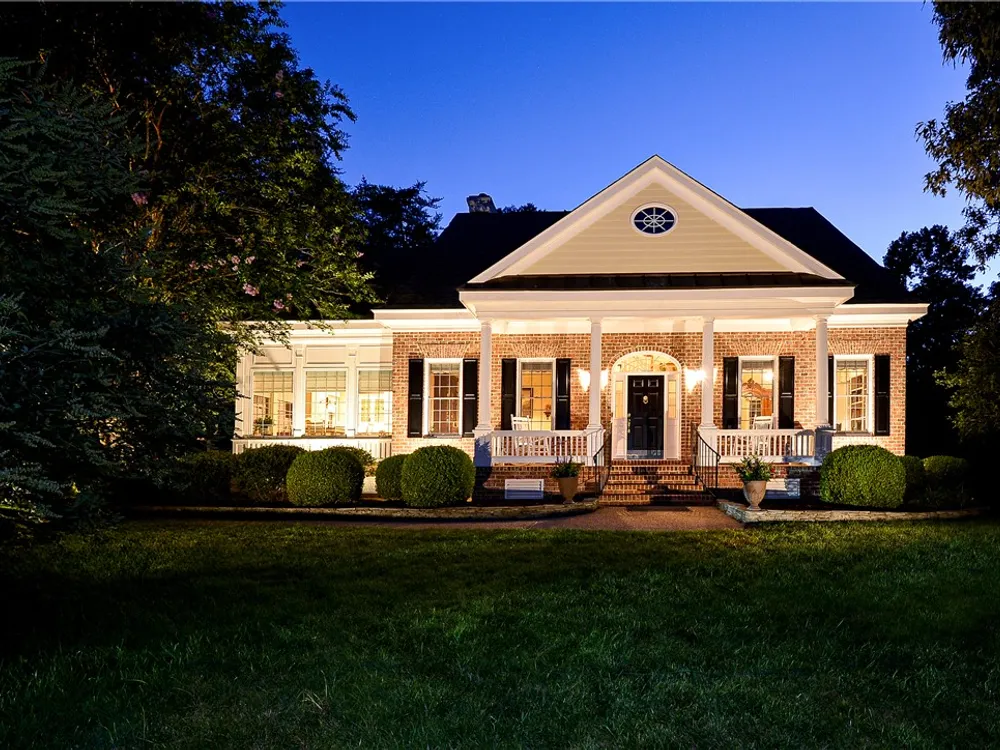 ASSUMABLE 3% LOAN—ask for details!! Beautifully maintained “Shield Townhouse” floor plan offers 3,602 square feet, four bedrooms plus a bonus, 3.5 baths, a NEW primary bath and a three-car garage. Exceptional features include cherry floors, 10-foot ceilings on the first floor, elegant millwork, a natural gas generator and landscape lighting. An office/library with built-ins and a dining room with refined moldings add to the home’s charm. The chef’s dream kitchen has a Viking gas cooktop, Sub-Zero refrigerator, wine fridge, center island with prep sink, large pantry, inset cabinetry and a sunny breakfast area. The family room with a fireplace and built-ins opens to a screened porch and private fenced yard. The first-floor primary suite offers cherry floors, two walk-in closets and a renovated bath with floating vanities, curbless shower, freestanding tub and ambient lighting. Upstairs are a second en suite bedroom, a Jack and Jill layout for bedrooms 3 and 4 and a flex space ideal for an office or playroom. A separate staircase leads to a large bonus room with wood floors and walk-in closet. Enjoy golf and pond views plus 500+ daffodils blooming each spring! HVAC is 5-years old.