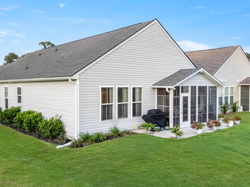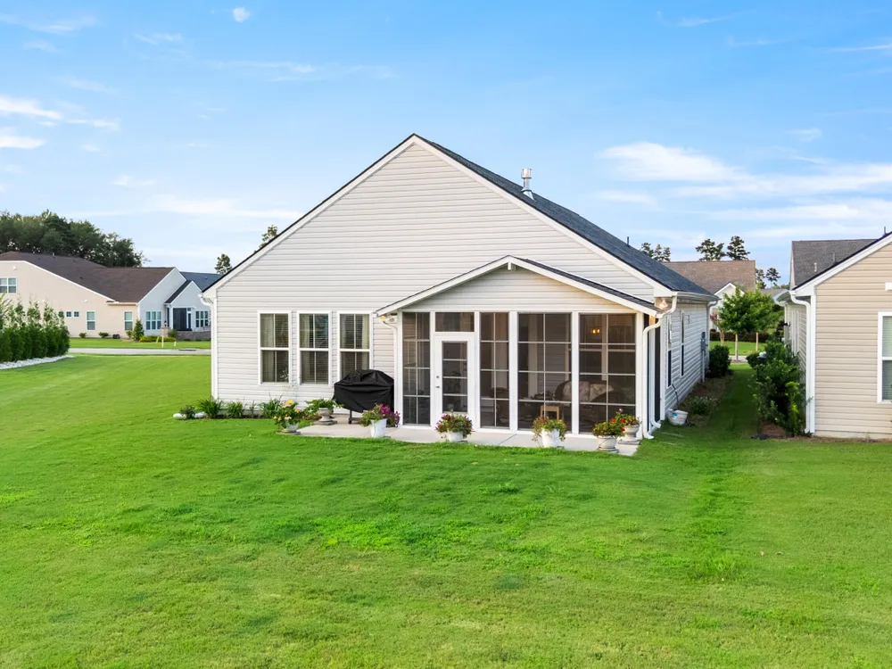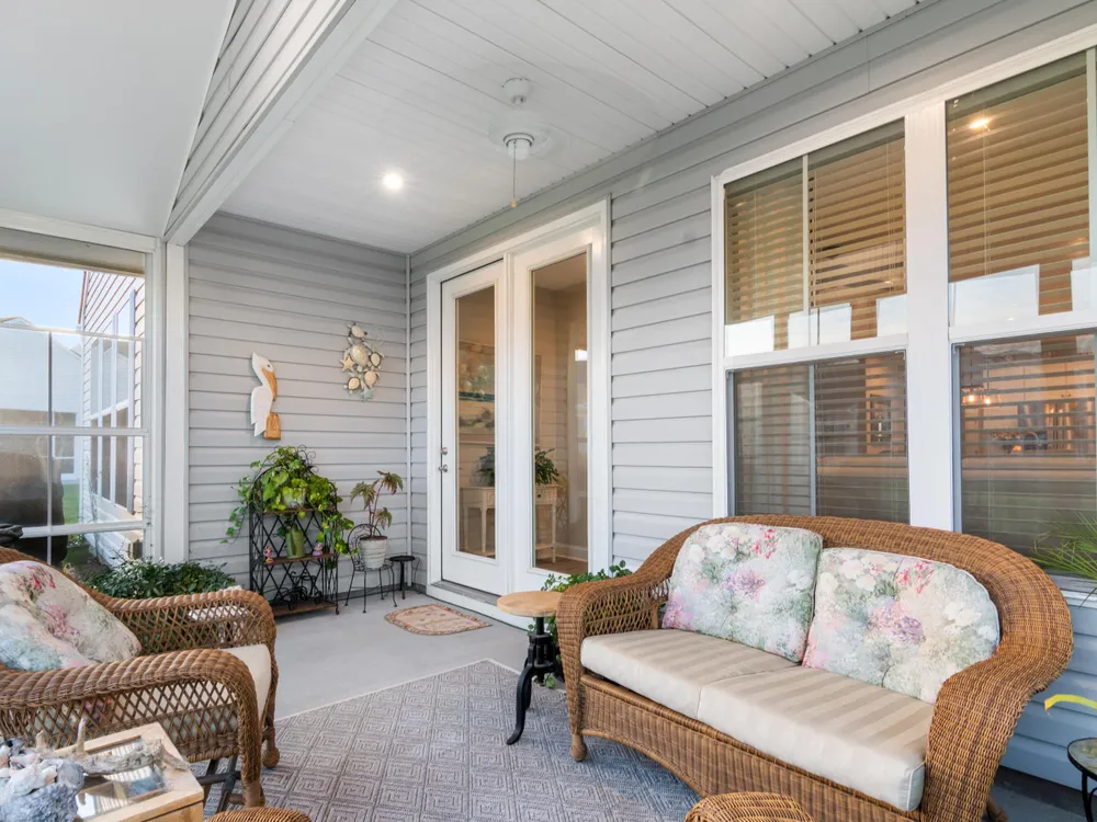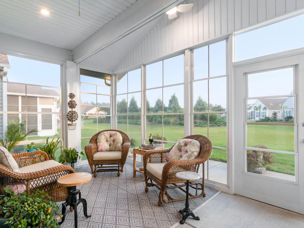 Welcome to this meticulously maintained Grenada Plan Home on a Premium Lot w/ expansive common area. Four Seasons, a 55 and over active adult community. From the time you enter this home you will be impressed with the design, quality and attention to detail . 2 BR. 2 Bath 1822 sq. ft. home offers additional 370 sq. ft. in partially finished Frog and 3 Season Sunroom.Study/library, Foyer, 10 ft. ceilings, gourmet Kitchen w/island, quartz countertop, white cabinets, w/ soft closures & pull outs. custom lighting , walk in pantry. Sep. Dining Rm. w/ crown molding and wainscoting. Relax in the Great Rm. in front of the custom gas fireplace or in the extended 3 seasons Sunroom overlooking the extended patio and expansive back area with privacy Berm .