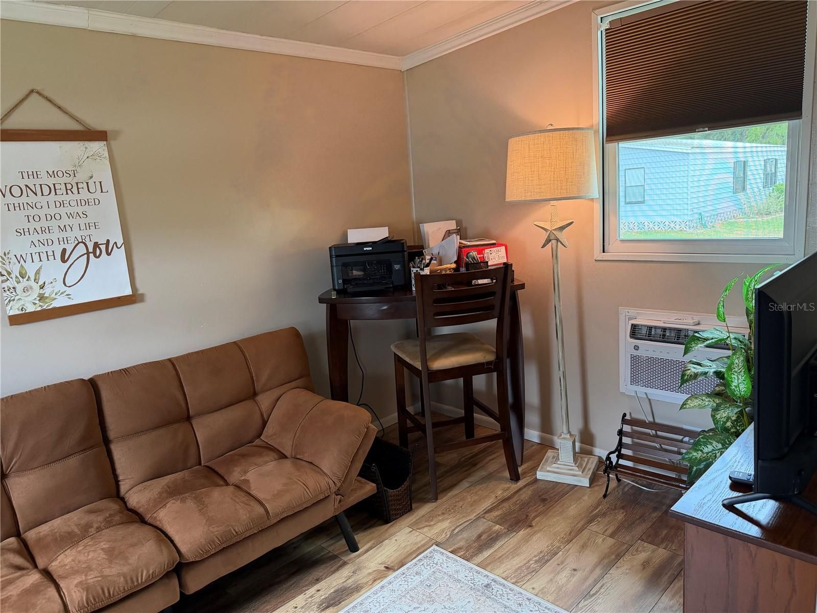 - Ceiling Fan(s), Crown Molding, High Ceilings, Window Treatments