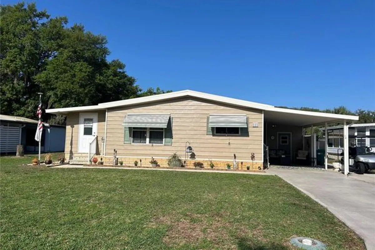 Located in a desirable 55+ community in Wildwood, this well-maintained home sits on your own land and offers a wonderful Florida lifestyle! Recent updates include a new front door, New flooring, updated master bath and shower, and A/C replaced just 2 years ago. Additional features include irrigation system R/O certificate. Enjoy a community full of amenities and an unbeatable location just minutes from The Villages with shopping, dining, golf, and entertainment nearby. Perfect for seasonal or full-time Florida living!