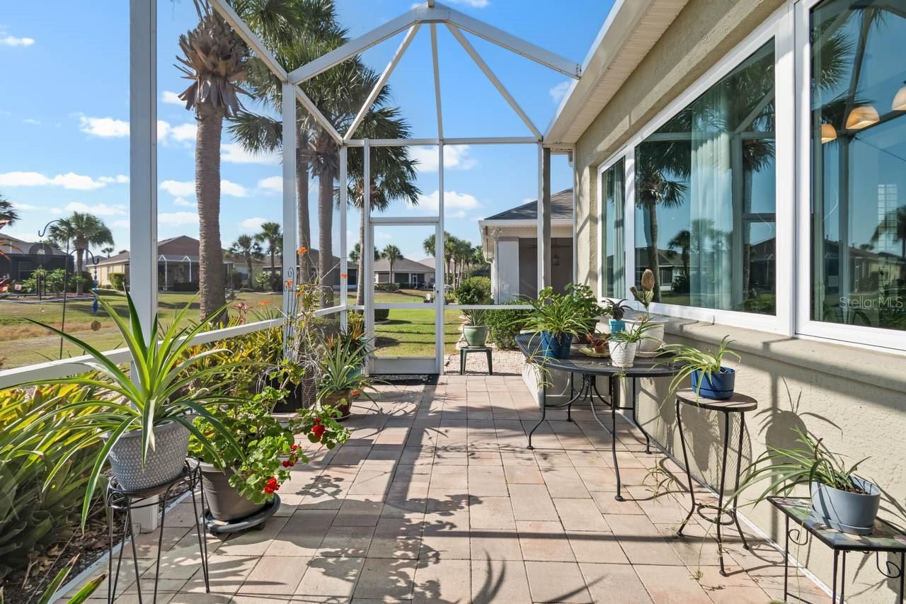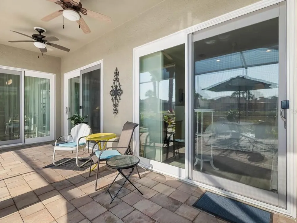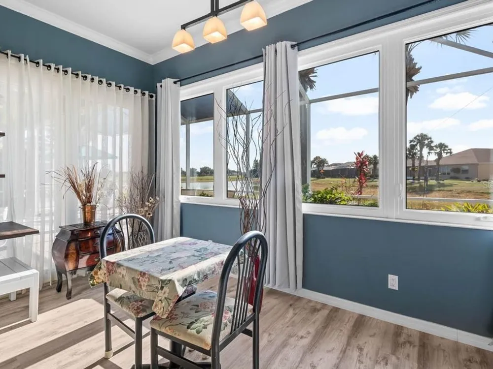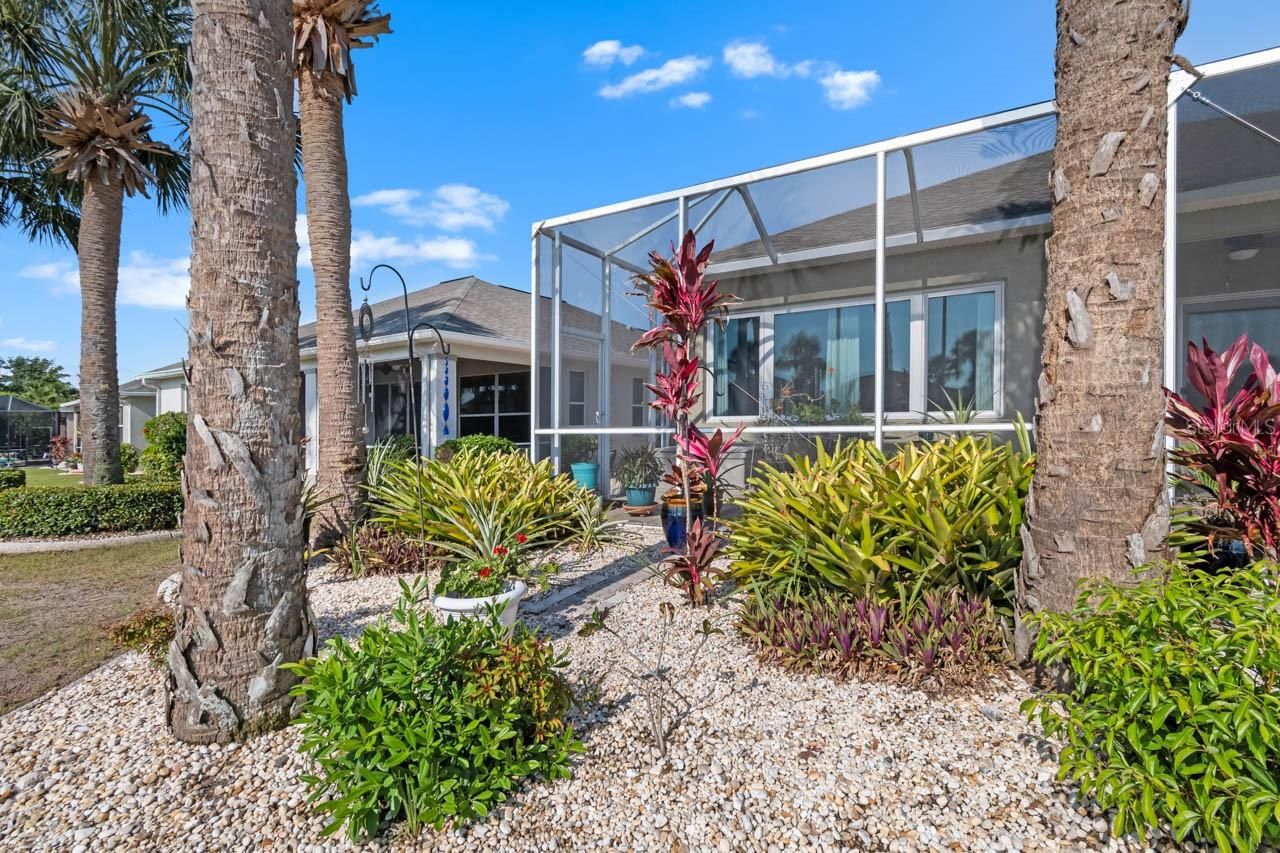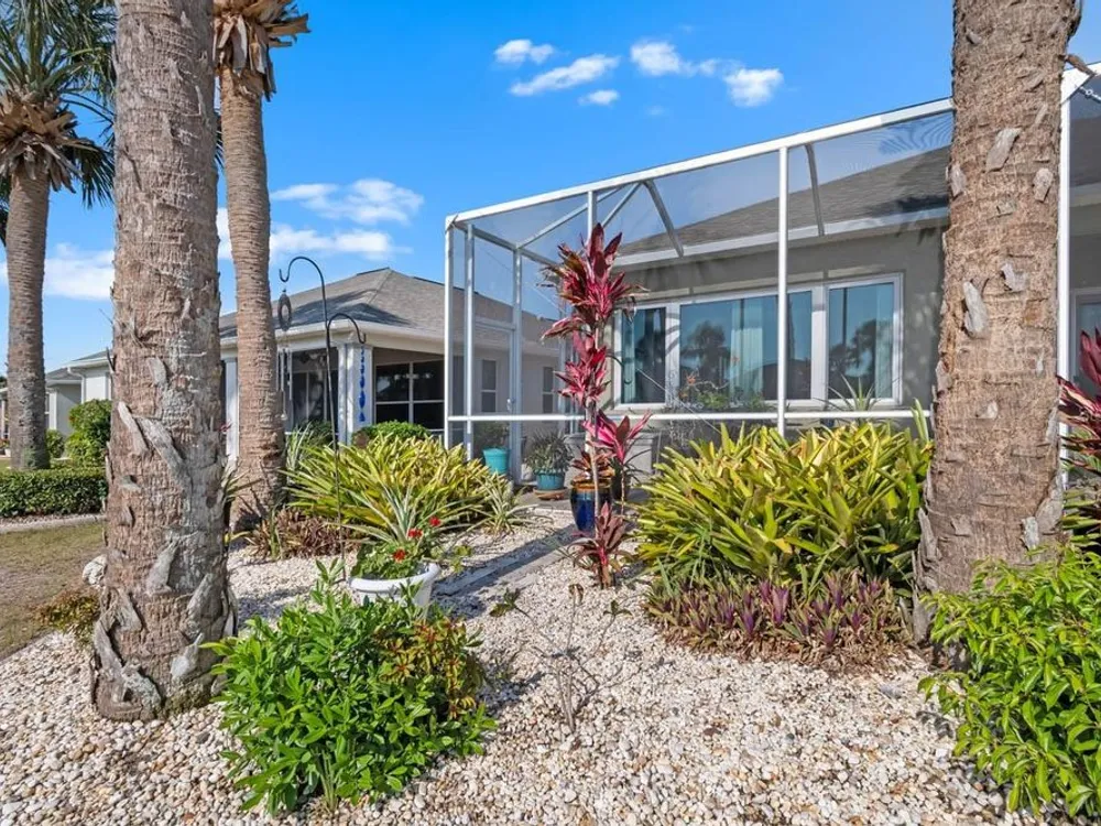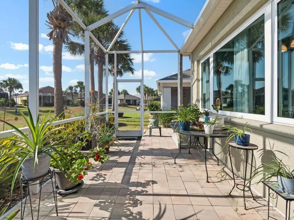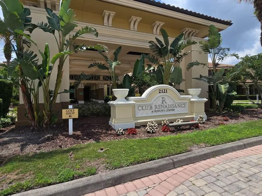 WATER VIEW 2-bed + Den, 2-bath, 2-car garage home in the exquisite golf club community of Renaissance within the active 55+ Sun City Center! Mature landscaping, CUL-DE-SAC location, PAVER DRIVEWAY, irrigation, COVERED/SCREENED entryway & lanai with paver deck, NEWER WATER SOFTENER (2024), NEW WATER HEATER (2025), GRANITE COUNTERTOPS, CENTRAL VAC, PLANTATION SHUTTERS, CROWN MOLDING, and NO CARPET! Instead, enjoy the easy maintenance and timeless appeal of LUXURY VINYL PLANK throughout this tastefully appointed retreat. At the front of this SPLIT-BEDROOM layout is the secondary bedroom, full bathroom with a single sink vanity and tub/shower combination, and the open den/office. The spacious Great Room houses both living and dining areas, along with a FLEX SPACE near the back of the home. The gourmet kitchen features a BREAKFAST BAR, NEW DISPOSAL (2025), and STAINLESS STEEL APPLIANCES including a NATURAL GAS RANGE, and feeds into the dinette with sliders to the beautiful lanai. The laundry room has its own cabinetry and sink, along with front-loading LG washer and NATURAL GAS DRYER. The primary suite is like stepping into your very own luxury hotel and spa, with its beautiful TRAY CEILING, DUAL WALK-IN CLOSETS customized by California Closets, private sliders to take in the view or access the lanai, and an EN-SUITE BATHROOM complete with a DUAL-SINK VANITY, WALK-IN SHOWER, and water closet. The covered and screened lanai provides comfortable enjoyment of the lovely pond view and Florida weather year-round. The Renaissance community offers a variety of activities and classes at its resident-only gym, and of course golf on a world class course! There are many exclusive amenities including clubhouse, gourmet dining, fitness options, and entertainment. Feel like you're living on a perpetual vacation. Schedule a showing today!