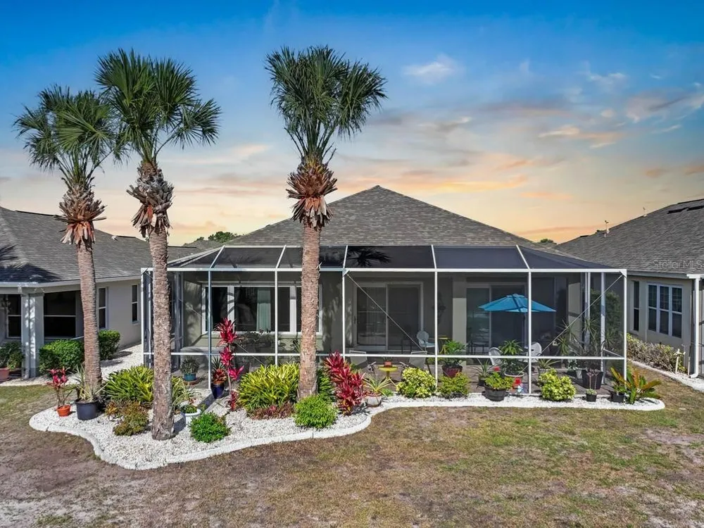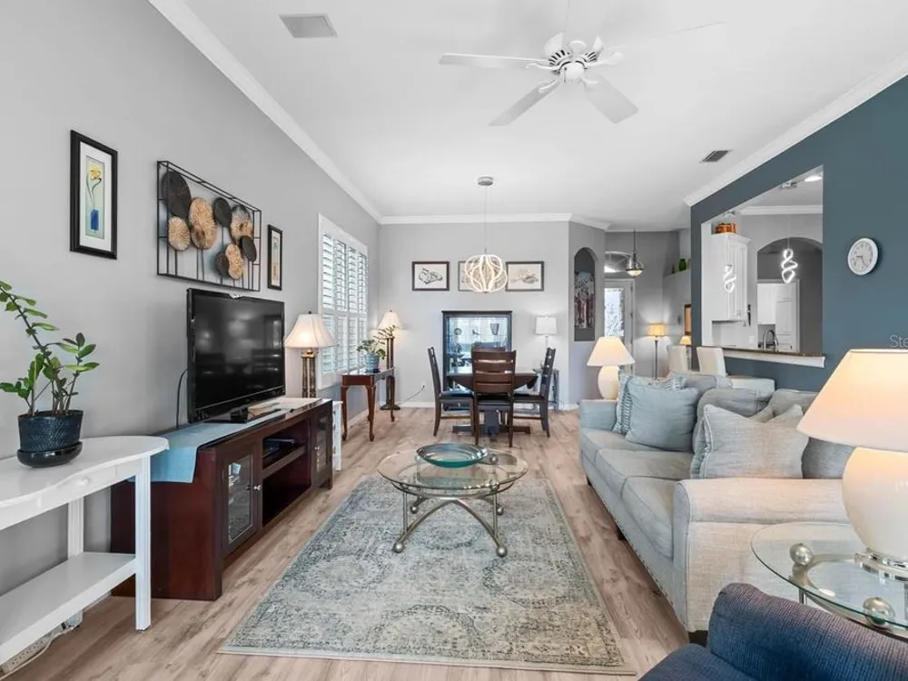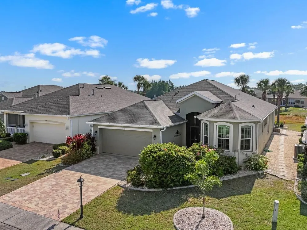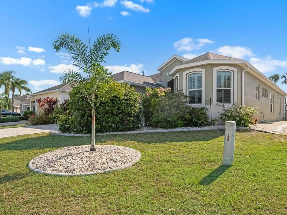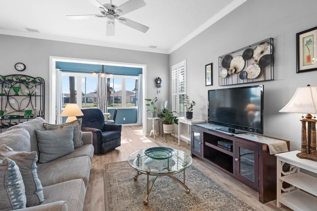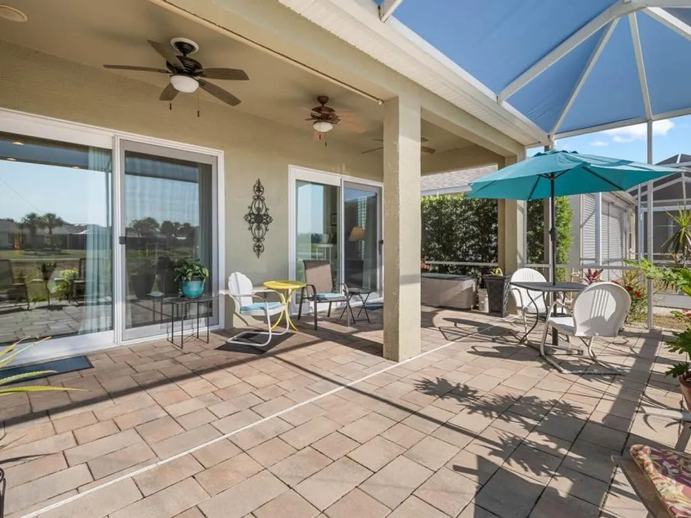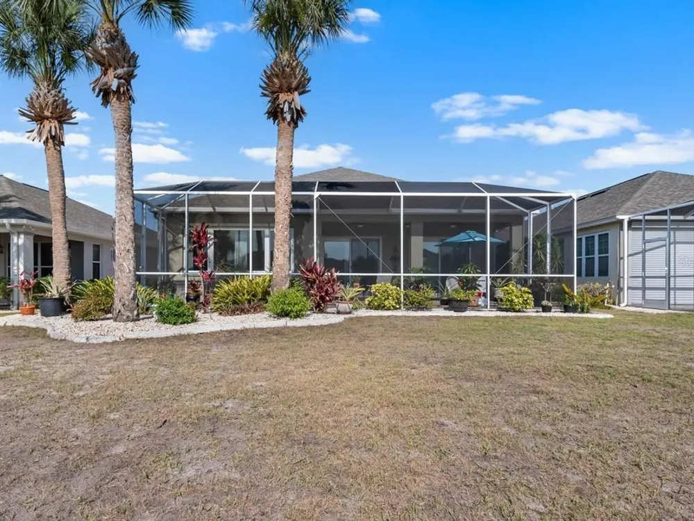 WATER VIEW 2-bed + Den, 2-bath, 2-car garage home in the exquisite golf club community of Renaissance within the active 55+ Sun City Center! Mature landscaping, CUL-DE-SAC location, PAVER DRIVEWAY, irrigation, COVERED/SCREENED entryway & lanai with paver deck, NEWER WATER SOFTENER (2024), NEW WATER HEATER (2025), GRANITE COUNTERTOPS, CENTRAL VAC, PLANTATION SHUTTERS, CROWN MOLDING, and NO CARPET! Instead, enjoy the easy maintenance and timeless appeal of LUXURY VINYL PLANK throughout this tastefully appointed retreat. At the front of this SPLIT-BEDROOM layout is the secondary bedroom, full bathroom with a single sink vanity and tub/shower combination, and the open den/office. The spacious Great Room houses both living and dining areas, along with a FLEX SPACE near the back of the home. The gourmet kitchen features a BREAKFAST BAR, NEW DISPOSAL (2025), and STAINLESS STEEL APPLIANCES including a NATURAL GAS RANGE, and feeds into the dinette with sliders to the beautiful lanai. The laundry room has its own cabinetry and sink, along with front-loading LG washer and NATURAL GAS DRYER. The primary suite is like stepping into your very own luxury hotel and spa, with its beautiful TRAY CEILING, DUAL WALK-IN CLOSETS customized by California Closets, private sliders to take in the view or access the lanai, and an EN-SUITE BATHROOM complete with a DUAL-SINK VANITY, WALK-IN SHOWER, and water closet. The covered and screened lanai provides comfortable enjoyment of the lovely pond view and Florida weather year-round. The Renaissance community offers a variety of activities and classes at its resident-only gym, and of course golf on a world class course! There are many exclusive amenities including clubhouse, gourmet dining, fitness options, and entertainment. Feel like you're living on a perpetual vacation. Schedule a showing today!