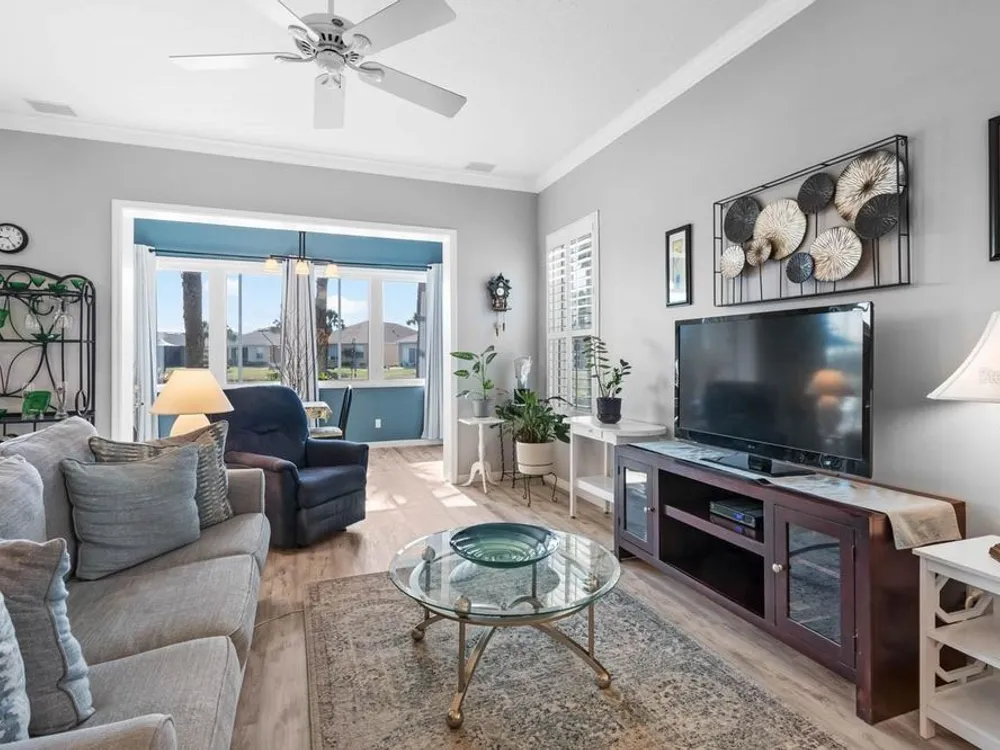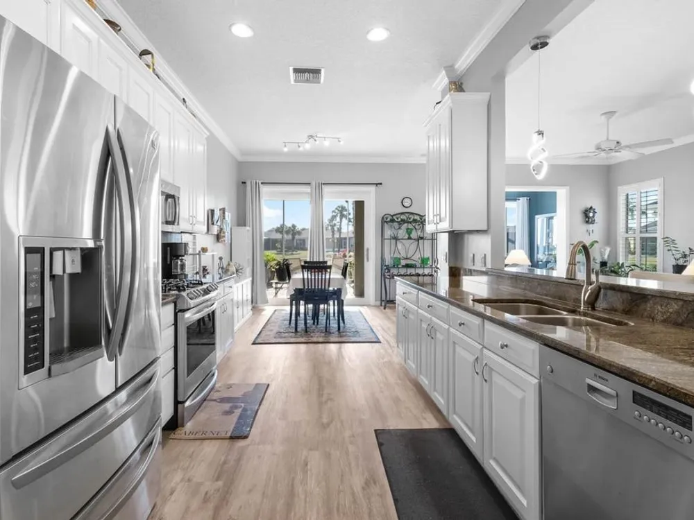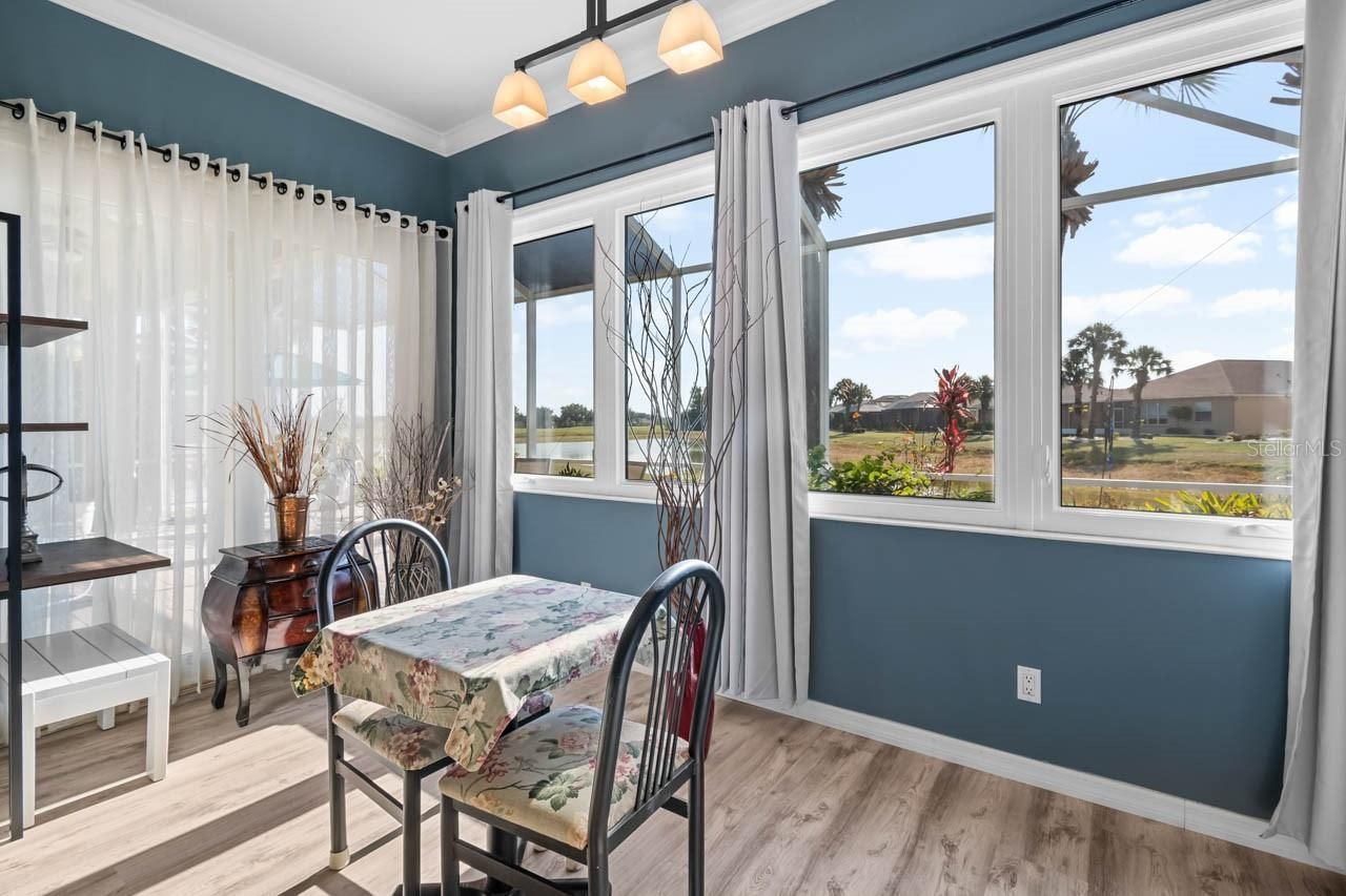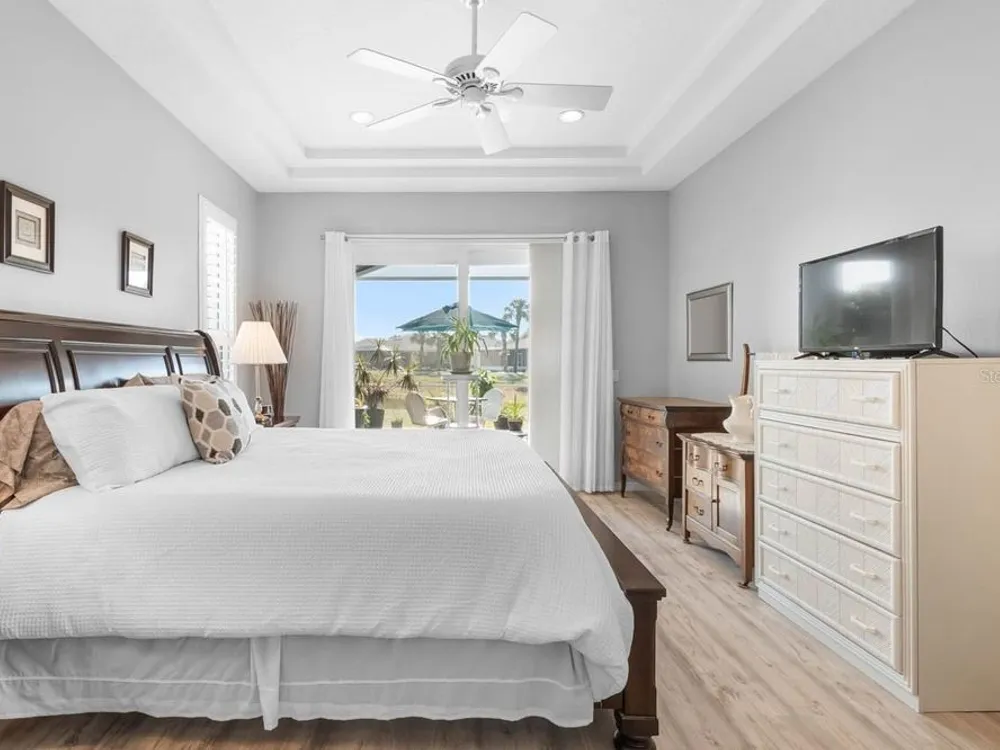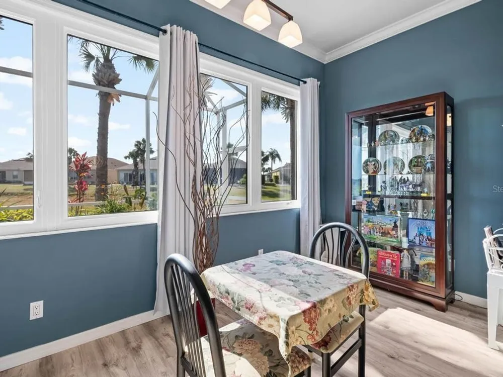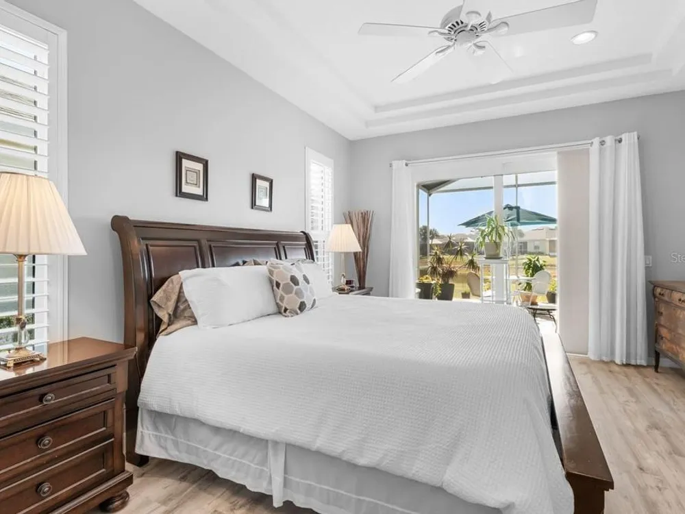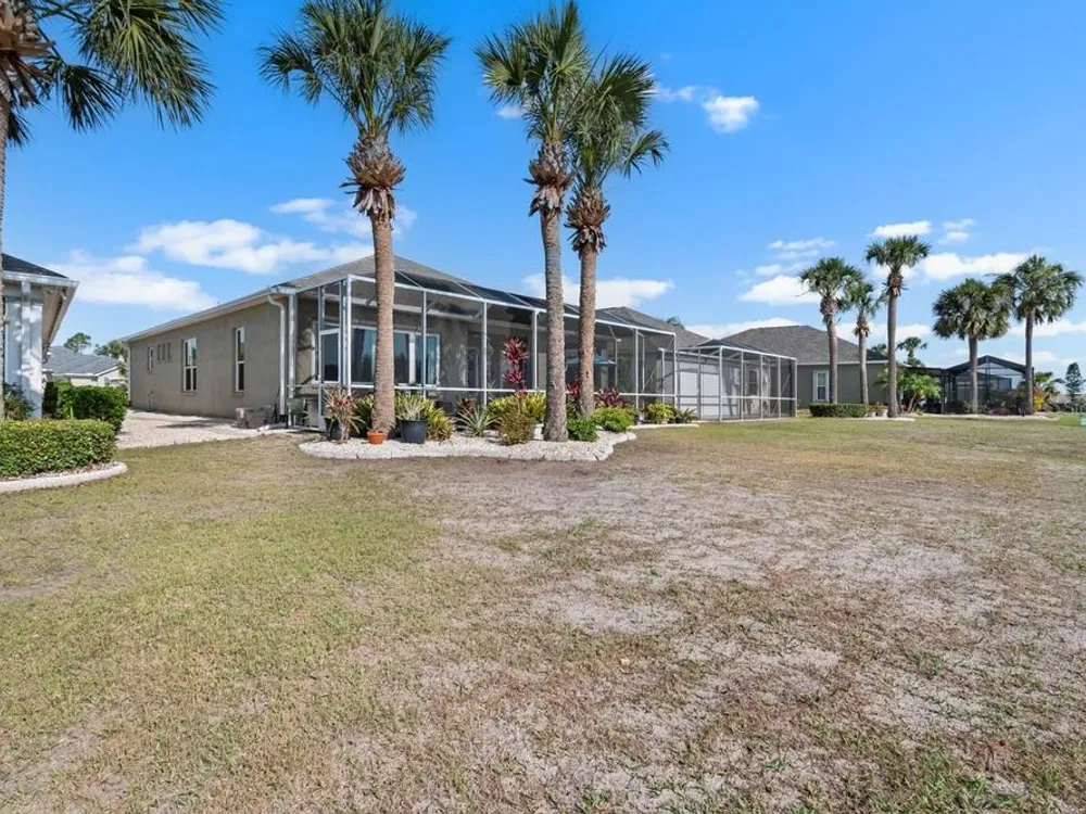 WATER VIEW 2-bed + Den, 2-bath, 2-car garage home in the exquisite golf club community of Renaissance within the active 55+ Sun City Center! Mature landscaping, CUL-DE-SAC location, PAVER DRIVEWAY, irrigation, COVERED/SCREENED entryway & lanai with paver deck, NEWER WATER SOFTENER (2024), NEW WATER HEATER (2025), GRANITE COUNTERTOPS, CENTRAL VAC, PLANTATION SHUTTERS, CROWN MOLDING, and NO CARPET! Instead, enjoy the easy maintenance and timeless appeal of LUXURY VINYL PLANK throughout this tastefully appointed retreat. At the front of this SPLIT-BEDROOM layout is the secondary bedroom, full bathroom with a single sink vanity and tub/shower combination, and the open den/office. The spacious Great Room houses both living and dining areas, along with a FLEX SPACE near the back of the home. The gourmet kitchen features a BREAKFAST BAR, NEW DISPOSAL (2025), and STAINLESS STEEL APPLIANCES including a NATURAL GAS RANGE, and feeds into the dinette with sliders to the beautiful lanai. The laundry room has its own cabinetry and sink, along with front-loading LG washer and NATURAL GAS DRYER. The primary suite is like stepping into your very own luxury hotel and spa, with its beautiful TRAY CEILING, DUAL WALK-IN CLOSETS customized by California Closets, private sliders to take in the view or access the lanai, and an EN-SUITE BATHROOM complete with a DUAL-SINK VANITY, WALK-IN SHOWER, and water closet. The covered and screened lanai provides comfortable enjoyment of the lovely pond view and Florida weather year-round. The Renaissance community offers a variety of activities and classes at its resident-only gym, and of course golf on a world class course! There are many exclusive amenities including clubhouse, gourmet dining, fitness options, and entertainment. Feel like you're living on a perpetual vacation. Schedule a showing today!