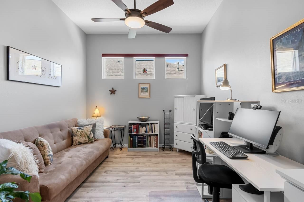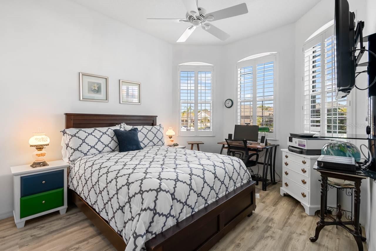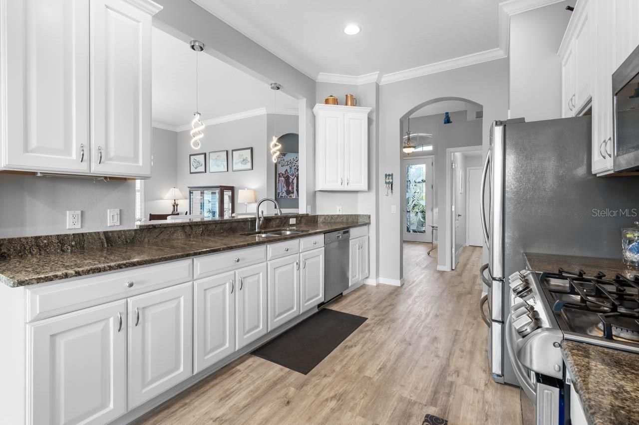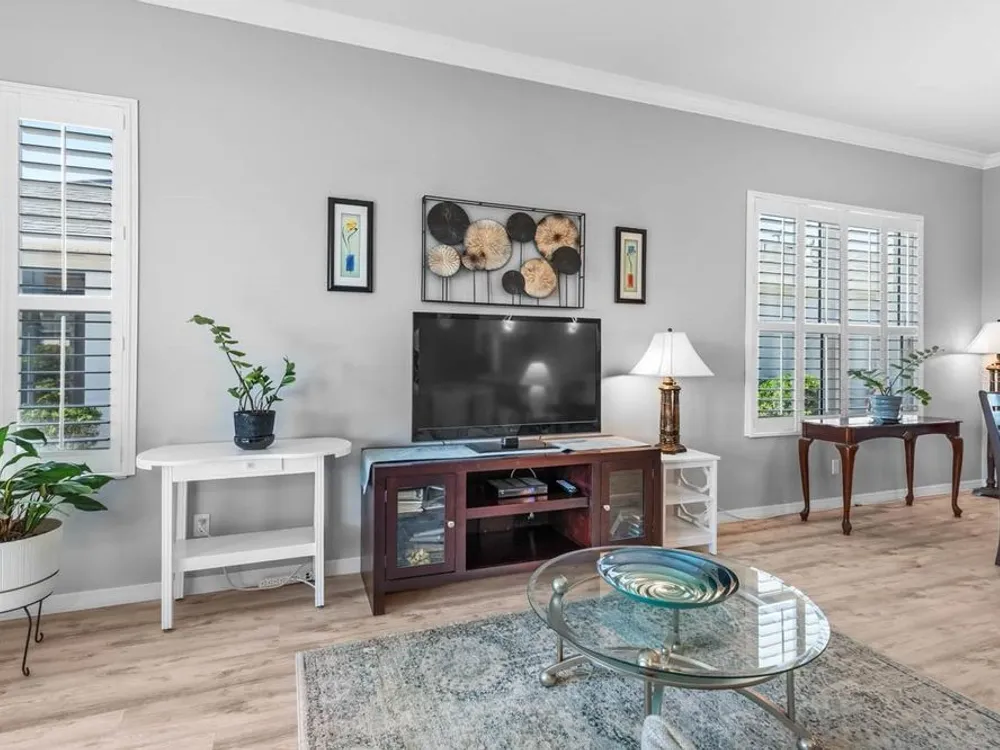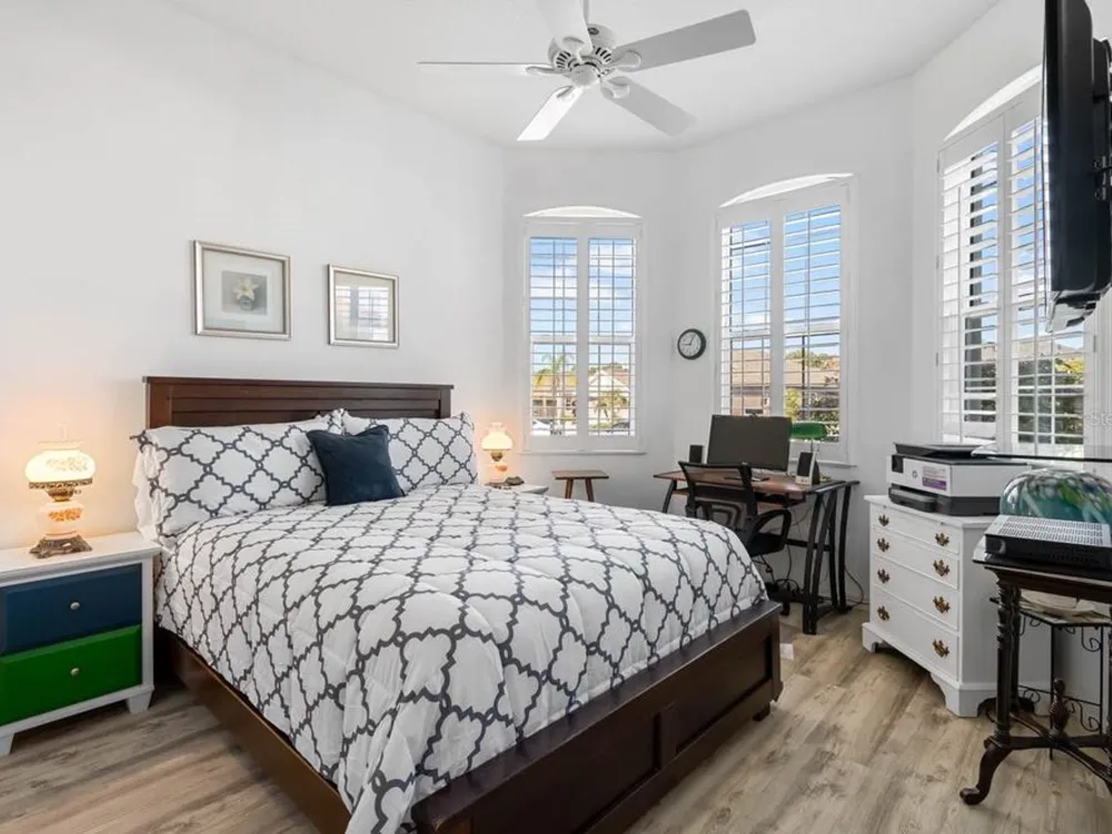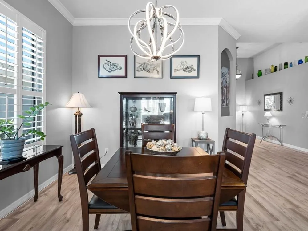 WATER VIEW 2-bed + Den, 2-bath, 2-car garage home in the exquisite golf club community of Renaissance within the active 55+ Sun City Center! Mature landscaping, CUL-DE-SAC location, PAVER DRIVEWAY, irrigation, COVERED/SCREENED entryway & lanai with paver deck, NEWER WATER SOFTENER (2024), NEW WATER HEATER (2025), GRANITE COUNTERTOPS, CENTRAL VAC, PLANTATION SHUTTERS, CROWN MOLDING, and NO CARPET! Instead, enjoy the easy maintenance and timeless appeal of LUXURY VINYL PLANK throughout this tastefully appointed retreat. At the front of this SPLIT-BEDROOM layout is the secondary bedroom, full bathroom with a single sink vanity and tub/shower combination, and the open den/office. The spacious Great Room houses both living and dining areas, along with a FLEX SPACE near the back of the home. The gourmet kitchen features a BREAKFAST BAR, NEW DISPOSAL (2025), and STAINLESS STEEL APPLIANCES including a NATURAL GAS RANGE, and feeds into the dinette with sliders to the beautiful lanai. The laundry room has its own cabinetry and sink, along with front-loading LG washer and NATURAL GAS DRYER. The primary suite is like stepping into your very own luxury hotel and spa, with its beautiful TRAY CEILING, DUAL WALK-IN CLOSETS customized by California Closets, private sliders to take in the view or access the lanai, and an EN-SUITE BATHROOM complete with a DUAL-SINK VANITY, WALK-IN SHOWER, and water closet. The covered and screened lanai provides comfortable enjoyment of the lovely pond view and Florida weather year-round. The Renaissance community offers a variety of activities and classes at its resident-only gym, and of course golf on a world class course! There are many exclusive amenities including clubhouse, gourmet dining, fitness options, and entertainment. Feel like you're living on a perpetual vacation. Schedule a showing today!