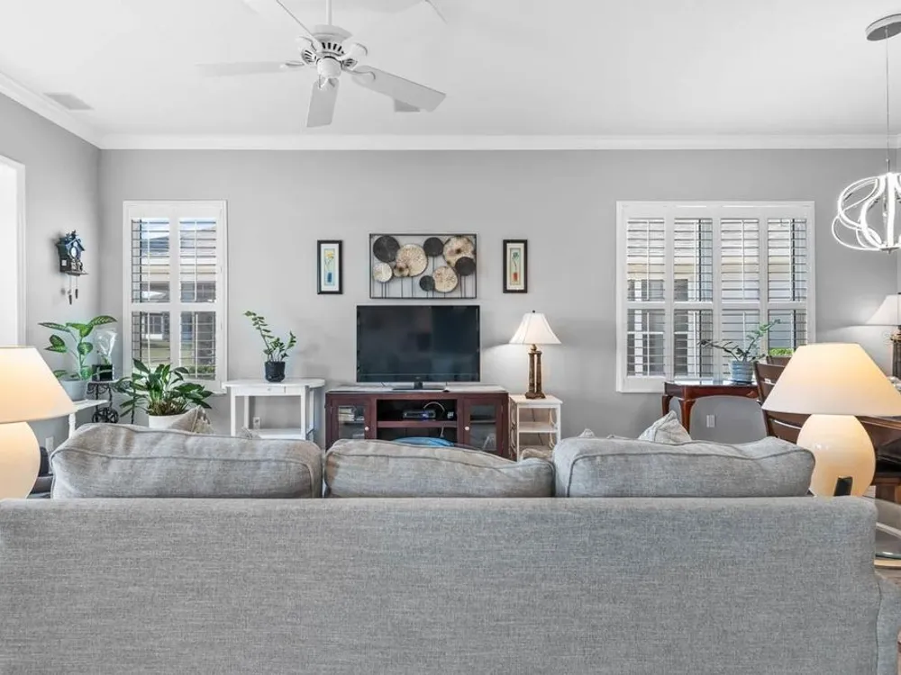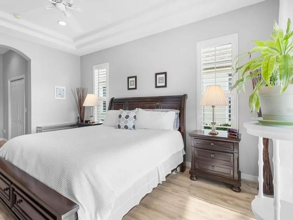 - Built-in Features, Ceiling Fan(s), Central Vacuum, Crown Molding, High Ceilings, Living/Dining Room, Open Floorplan, Split Bedrooms, Stone Counters, Thermostat, Tray Ceiling(s), Walk-In Closet(s), Window Treatments