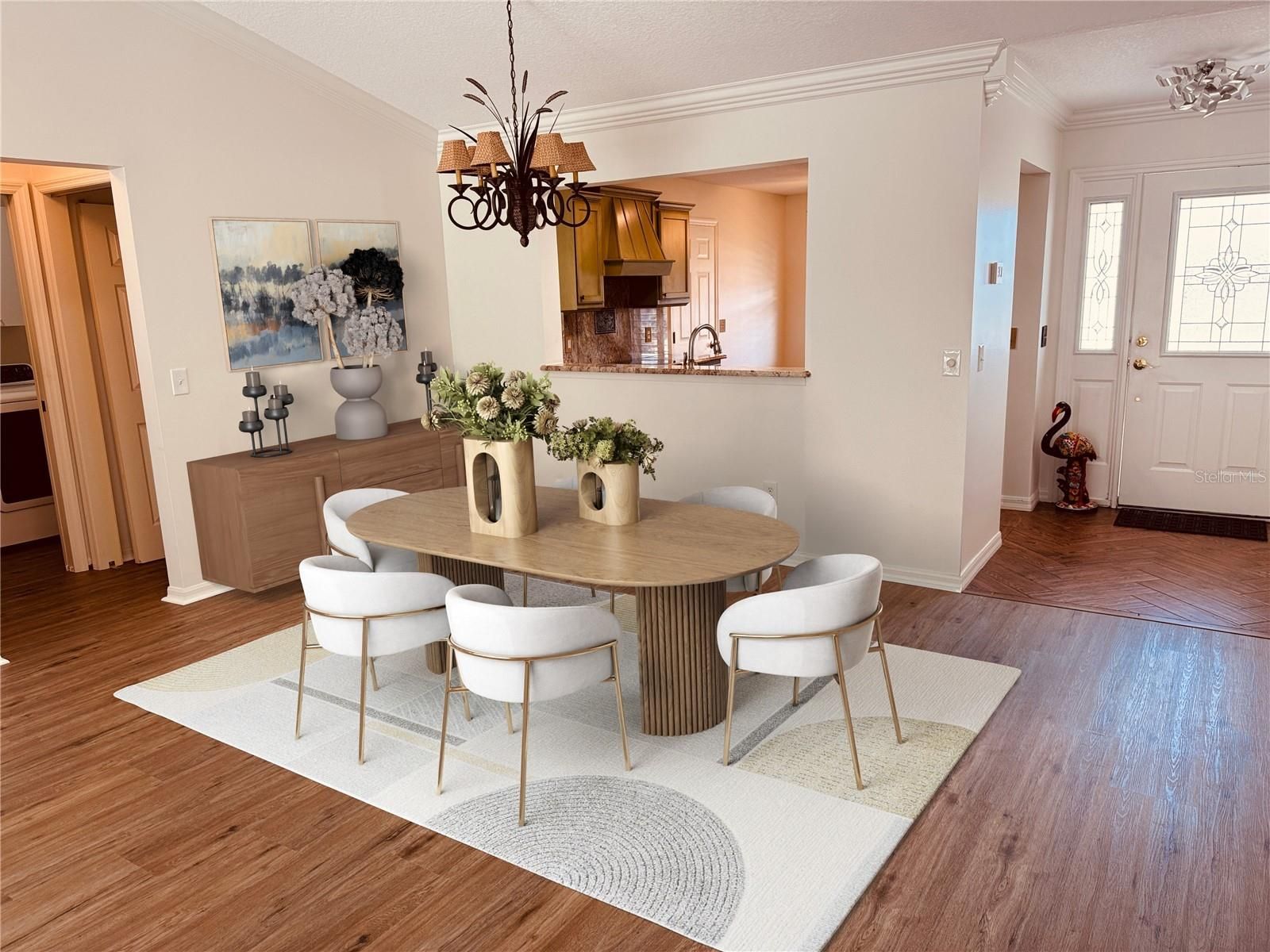- Crown Molding, Living/Dining Room, Open Floorplan, Main Level Primary, Walk-In Closet(s)