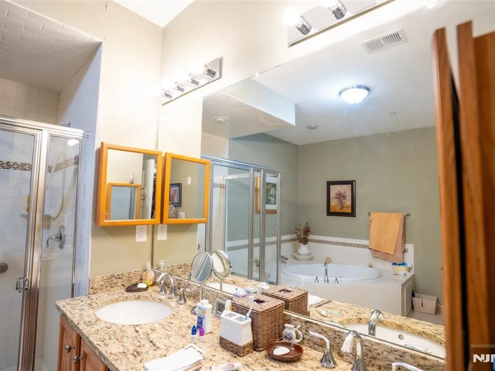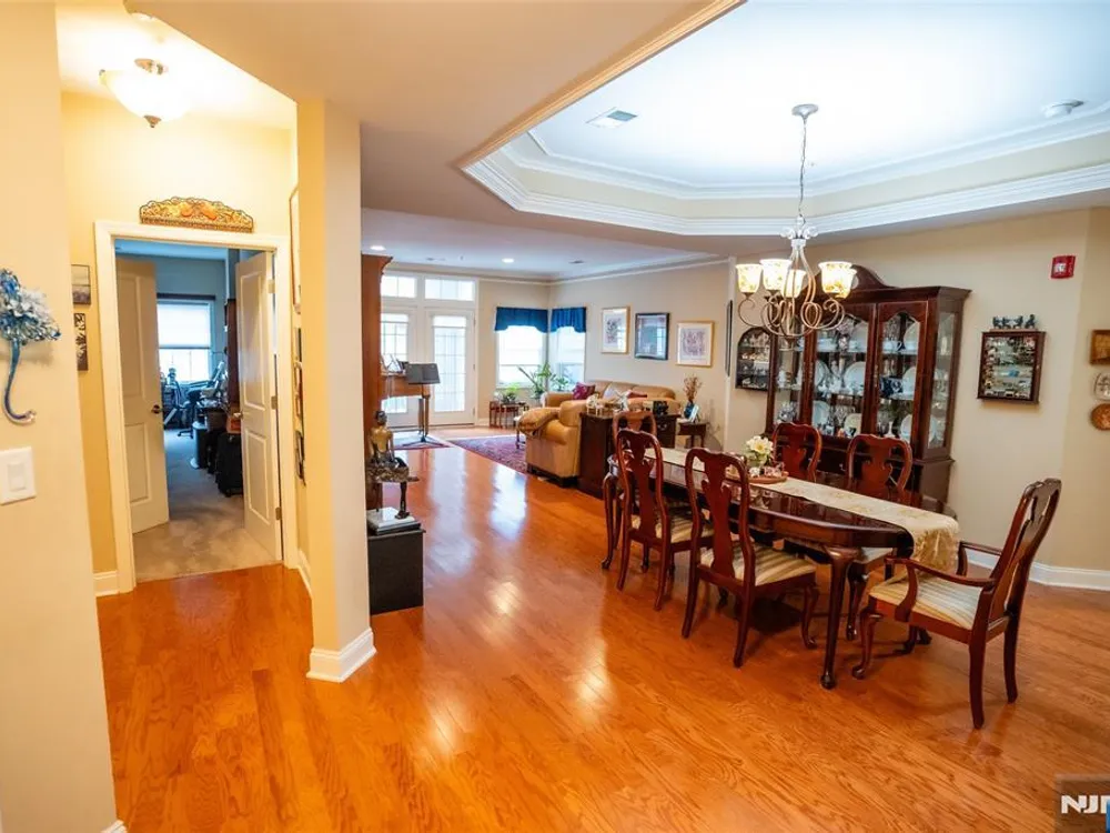 Welcome to this spacious 2 bedroom, 2 bath home in a desirable 55+ gated community. Both bedrooms feature walk-in closets, with the primary offering two closets, a full bath with soaking tub & stall shower, plus private patio perfect for relaxing with a book or morning coffee. The large living room with electric fireplace opens to another patio ideal for entertaining. Enjoy a formal dining room, eat-in kitchen with breakfast bar, and a versatile nook perfect for a home office or extra seating. Additional highlights include in-unit laundry, a storage closet on the same floor, and 2-car garage parking with ample visitor spaces. Community amenities include pool, gym, clubhouse, and 24-hour security. Conveniently located near NYC transportation, dining, shopping, American Dream, and more. Move right in and start enjoying the lifestyle you deserve!