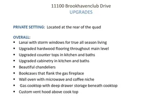 Award-winning Westminster SUPERMASTER floor plan in prestigious 55+ Active Adult LIFESTYLE Community. Private location. A quick walk to the Community Clubhouse makes it easy and convenient to participate in the organized (or free style) activities and amenities. Convenient main level living with an upstairs bonus room/full bath offers the homeowner and your guests the ultimate in privacy. MAIN LEVEL: Gourmet kitchen layout with upgraded KitchenAid gas cooktop, wall oven and microwave, coffee niche, beautiful creamy cabinetry, upgraded backsplash, undercounter lighting, and upgraded countertops. Vaulted ceilings. Gorgeous hardwoods throughout main level. Stunning light fixtures. Luxurious Primary Suite Bath features double vanity, makeup area, upgraded countertops, spacious double-headed shower with listello tile, bench seat and grab bars, private W/C, and an enormous walk-in closet. Secondary bedroom with full bath also on main level. Spacious living room with gas fireplace, and custom bookcases. Storm windows on the private lanai extend the livability of this space to four seasons. UPSTAIRS: Oversized upstairs bonus space with private bath and spacious storage closet. MAINTENANCE-FREE living for the Lock and GO lifestyle. HOA/COA maintains home exterior, termite bond, roof and landscape. EXCEPTIONAL LIFESTYLE COMMUNITY with gorgeous clubhouse that hosts a variety of planned activities. Recreation and resort type amenities include: fitness center, free library, pool, PICKLEBALL, tennis, nature trail, and community garden. Community is GATED and FENCED. Brookhaven at Johns Creek is convenient to shopping, entertainment, hospital/medical facilities, multiple public and private golf courses, restaurants, and parks. COMING SOON TO JOHNS CREEK! Multi-BILLION DOLLAR Johns Creek Town Center, Medley and Creekside Park.