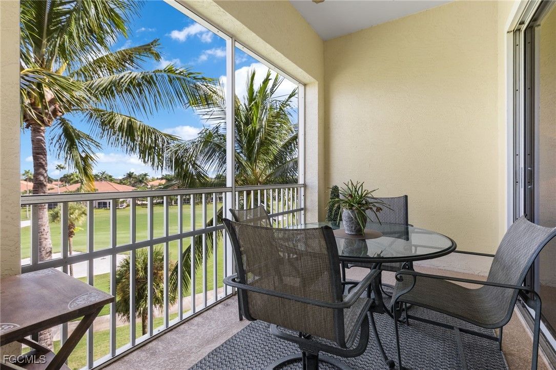 Your TURNKEY PENTHOUSE retreat awaits! Experience resort-style living in this stunning 2-bedroom + den, 2-bath condo in the highly sought-after Bellavista neighborhood of Gulf Harbour Yacht & Country Club. This top-floor CORTINA floor plan offers over 1400 sq. ft. of elegant living space with soaring 11-foot ceilings, double tray ceilings and breathtaking views of the 16th fairway and the shimmering lake beyond. The open-concept design is ideal for entertaining, featuring a kitchen with granite countertops, a breakfast bar, and stainless steel and white appliances. Enjoy the perfect balance of comfort and style with luxury vinyl plank as well as carpeting in the main living area, creating a warm, inviting atmosphere. The primary suite is a peaceful haven with an ensuite bathroom with a separate walk in shower with a seamless glass enclosure and a lovely garden tub. The primary suite also offers private lanai access - the perfect place to relax with your morning coffee or unwind after a day on the course. A split floor plan ensures privacy for guests, while the den offers flexibility as a home office or additional bedroom. Additional highlights include: Top-floor location for added privacy and panoramic views Overszed two-car garage providing convenience and extra storage Screened lanai overlooking the golf course and lake Gated, 24-hour security for peace of mind Turnkey furnishings available for immediate enjoyment Private memberships are available for separate purchase and provide access to Gulf Harbour’s world-class amenities: golf, marina, tennis, fitness center, spa, and dining. Don’t miss your chance to enjoy the Gulf Harbour lifestyle in this beautifully maintained, move-in ready home!