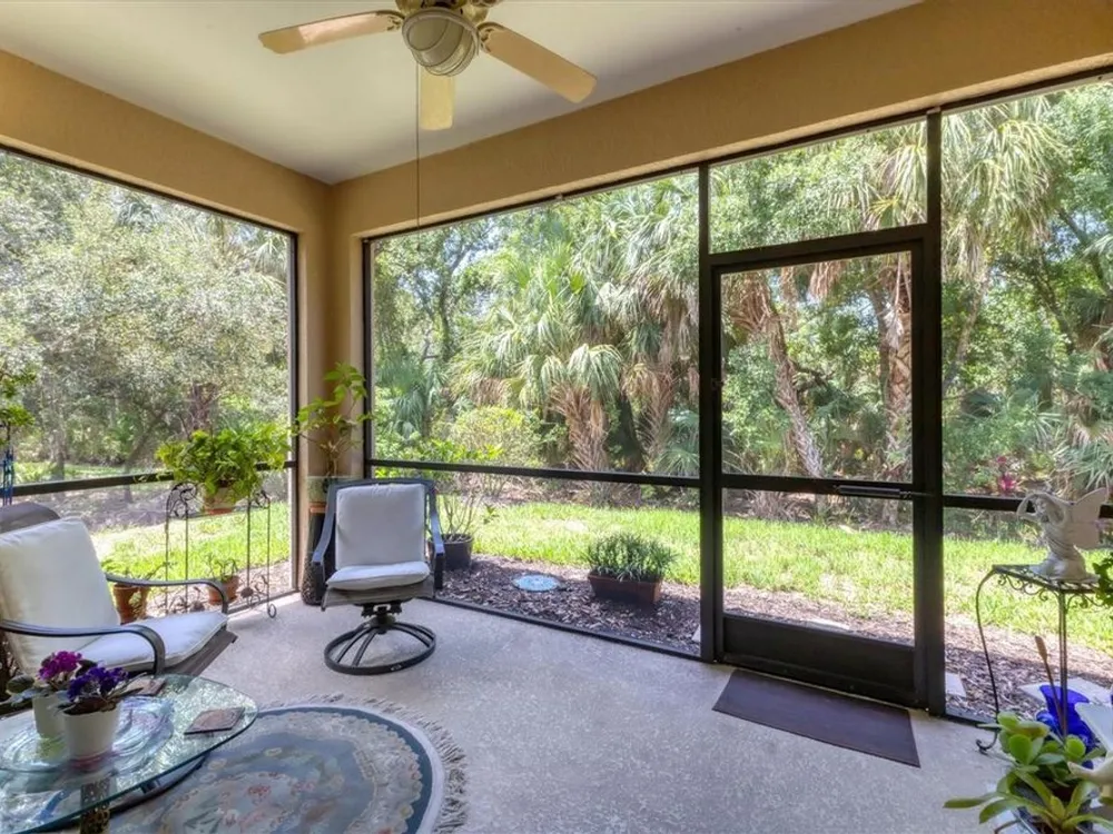 Rarely available end-unit villa on a premium lot with no rear neighbors and tranquil preserve views! Located in the gated, maintenance-free 55+ community of Venetian Falls. This home is a must see on your list of Villas to tour. Built in 2006, this 2 bed / 2 bath + bonus room with a 2-car garage is one of the largest villas in Venetian Falls at 1,600 sq ft. The open-concept dining and living area, combined with high ceilings and a view of the preserve, creates an expansive and airy space. The spacious primary suite sits towards the back of the home and features a large walk-in closet with a secondary built-in closet for the extra storage space. The primary bathroom is equipped with double sinks and a walk-in shower. The eat-in kitchen features solid wood cabinets, pull-out shelves, breakfast bar, kitchen nook, and pantry. Updates include water heater, under-sink plumbing, faucets,and microwave. Hurricane (accordion style) shutters installed. Here in Venetian Falls, you will find resort-style amenities: heated pool, fitness center, clubhouse, game room, bocce, library & full calendar of social events. Located within minutes to historic downtown Venice and Venice Beach. Enjoy the best of Florida living!