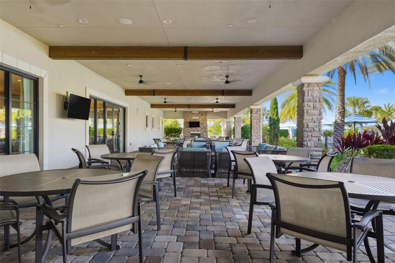 - Clubhouse, Community Mailbox, Deed Restrictions, Dog Park, Fitness Center, Gated, Guarded Entrance, Pool, Restaurant, Sidewalks, Tennis Court(s)