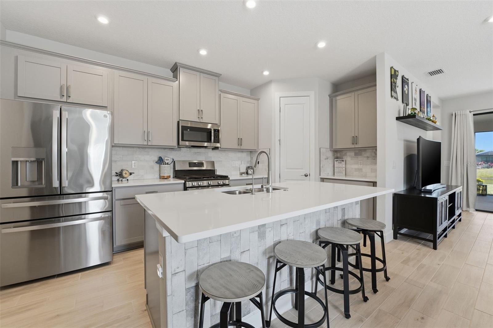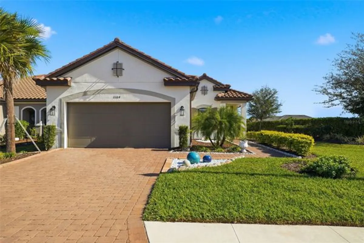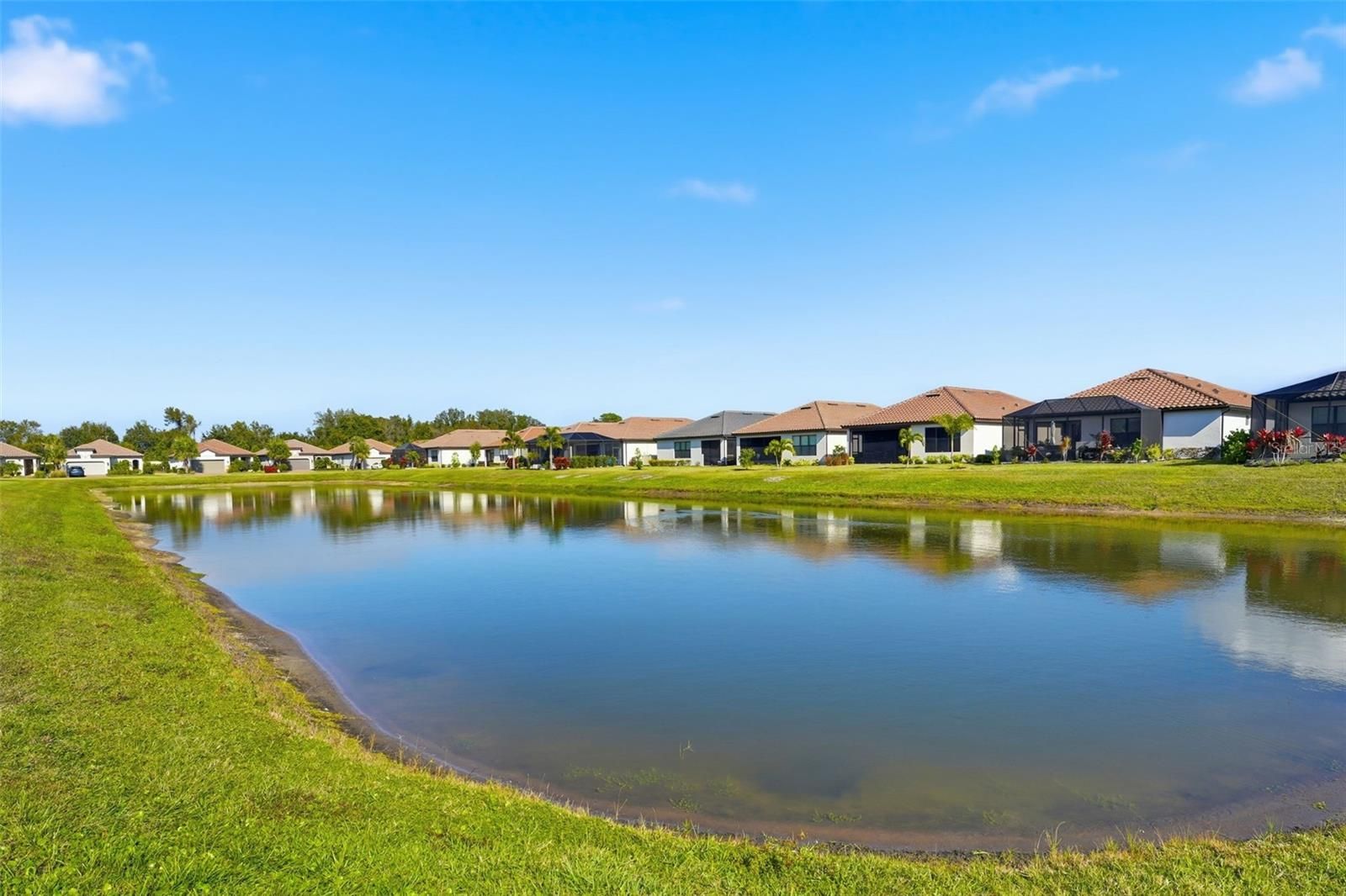 A SUN-SOAKED RESORT RETREAT! Welcome to upscale, resort style Florida living at it's best! Treat yourself to a fabulous new home in the new year and live where you can feel like you are on vacation everyday. This darling 3Br/2.5ba quality built Taylor Morrison home is situated on a large corner lot with serene lake views. This Matera floorplan offers a very light, bright, open and airy greatroom layout. The original owner has thoughfully upgraded and switched out lots of the standard builder included features. The home showcases upgraded light fixtures and ceiling fans throughout, gorgeous decorator tile on the Master bathroom wall, the kitchen island and backsplash, glass shower enclosures and upgraded plumbing fixtures in the Primary and Guest baths, designer mirrors in the baths, upgraded shower heads, and a Simply Safe alarm system. Other outstanding features this home has to offer include gorgeous plank style ceramic tile floors throughout the living area, solid surface countertops, stainless steel appliances, brand new washer and dryer, tankless hot water heater, large screened enclosed super sized extended lanai with rough in for a future outdoor kitchen. The HOA fee includes yard maintence, irrigation and cable/internet. This upscale gated community hands down offers some of the best amenties around which include a lifestyle instructor, multiple resort style pools, hot tubs, on site spa/therapy room, state of the art fitness center, tennis courts, pickleball bocci, firepits, cornhole, walking trails, dog park and more! This community is conveniently located to lots of brand new shopping, restaurants and I-75. A quick and easy commute to the Tampa/St. Pete area and quick and easy access to downtown Bradenton and Sarasota. This premiere community has it all!