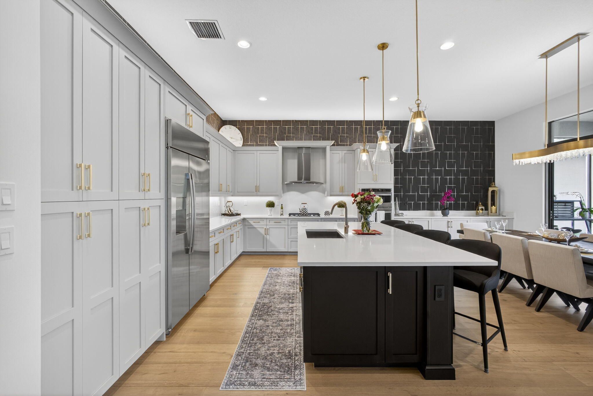 Welcome to luxury living in Valencia Grand, a premier gated 55+ community. This desirable NAPA model offers 4 bedrooms plus Clubroom/office, NO zero lot line, and a private backyard, providing exceptional space and privacy on the expanded screened patio. A beautifully designed home offers a split-bedroom floor plan, soaring ceilings, fabulous custom walk-in closets, and wide-plank wood flooring throughout. Elegant finishes include quartzite countertops, custom cabinetry, and designer lighting, creating a home that truly shows like a model. The chef's kitchen is ideal for entertaining with premium finishes and generous storage, while the large laundry room with sink and cabinetry adds everyday convenience. Enjoy the Florida lifestyle in this gorgeous home! An abundance of upgrades, such as the AC Whole House water filtration system. The Community boasts a 44,000 sq ft Clubhouse, Indoor Pickle Ball, Pro Shop, Tennis Courts, Grand Ball Room, Cafe, Exercise Studio & Fitness Center, Bocce, Yoga Zen Garden, Salon for haircare, Facials & Massages, 10 Miles to the Beach & minutes to all your shopping Needs. A Great place to call home!!