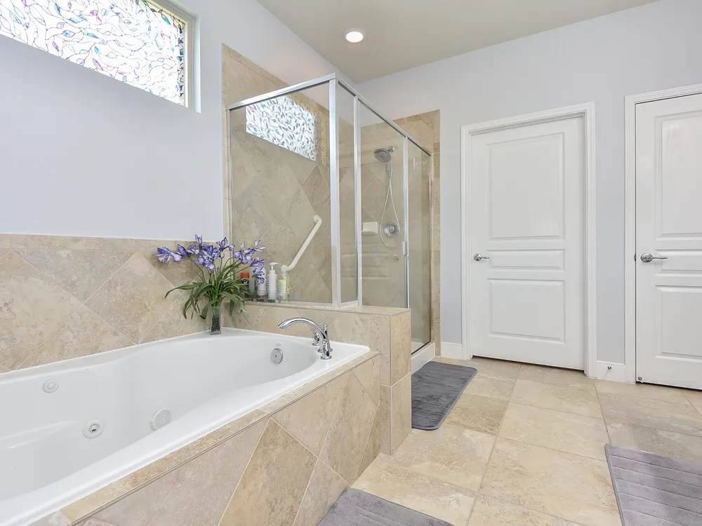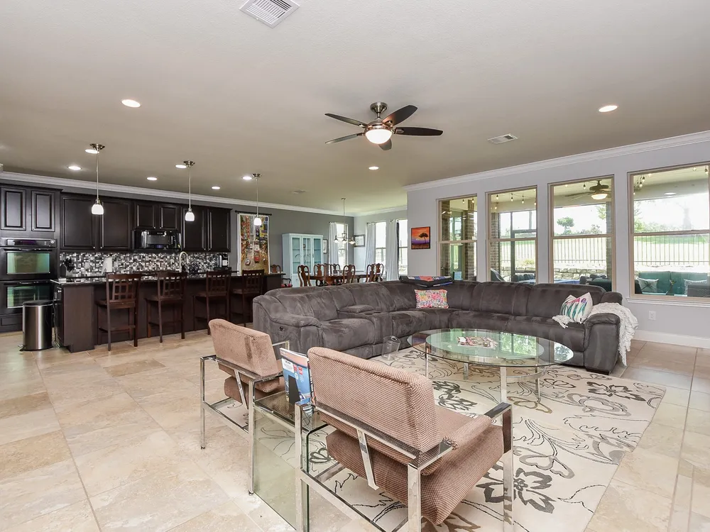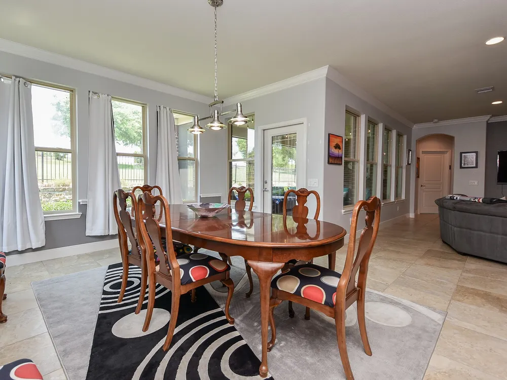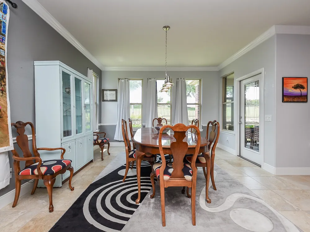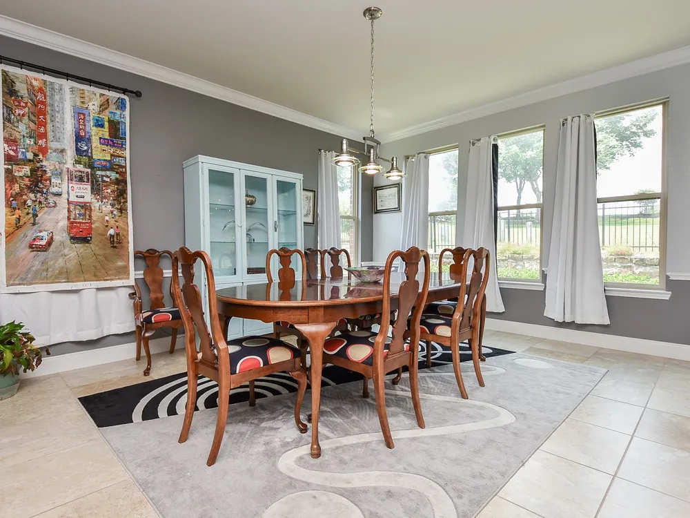 - Breakfast Bar, Crown Molding, Double Vanity, High Ceilings, Jetted Tub, Kitchen Island, Kitchen/Family Room Combo, Pantry, Separate Shower, Tub Shower, Walk-In Pantry, Window Treatments, Ceiling Fan(s), Kitchen/Dining Combo, Living/Dining Room, Programmable Thermostat