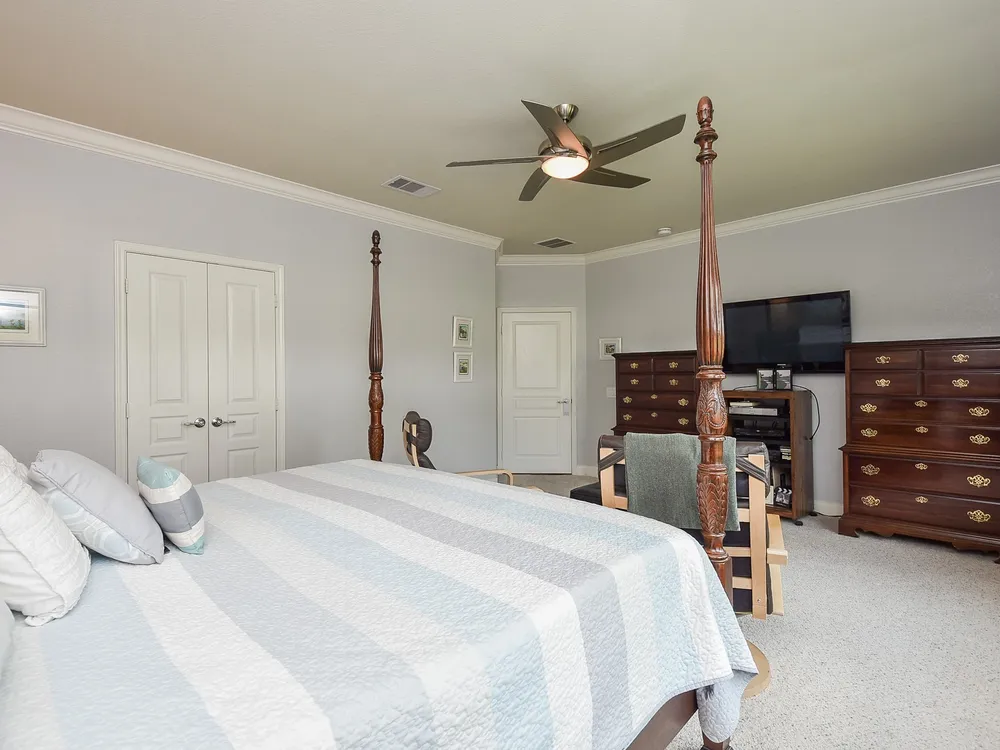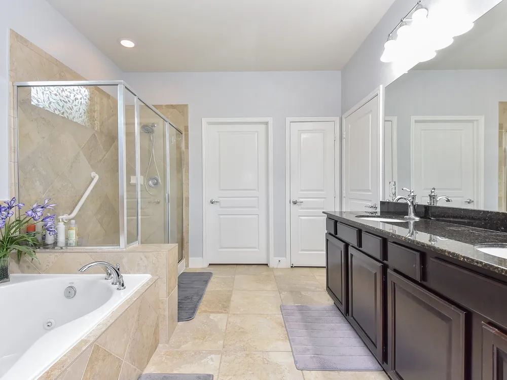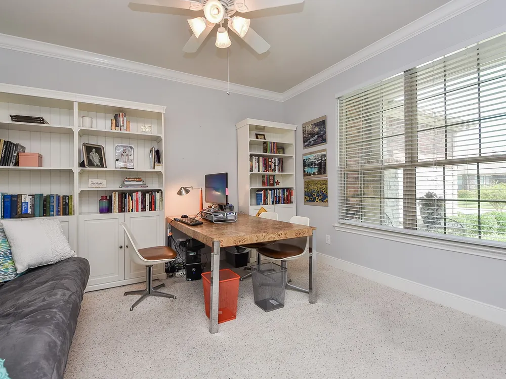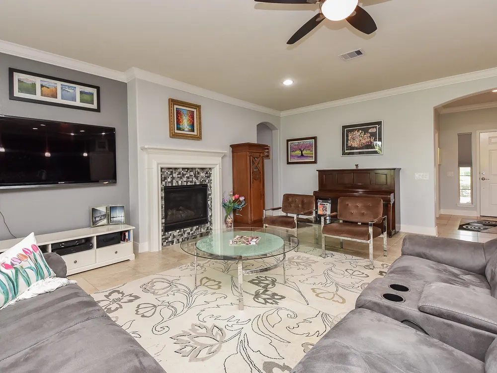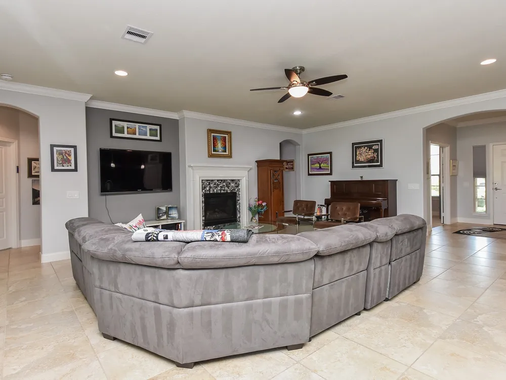 - Breakfast Bar, Crown Molding, Double Vanity, High Ceilings, Jetted Tub, Kitchen Island, Kitchen/Family Room Combo, Pantry, Separate Shower, Tub Shower, Walk-In Pantry, Window Treatments, Ceiling Fan(s), Kitchen/Dining Combo, Living/Dining Room, Programmable Thermostat