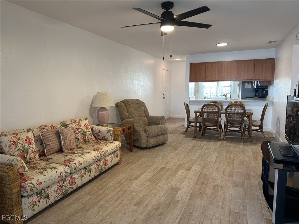 Lakefront Condo in Cinnamon Cove – 2nd Floor Corner Unit This beautiful second-floor corner unit is perfectly positioned in the middle of Cinnamon Cove’s large lake, directly across from the clubhouse. With sweeping water views from nearly every room, the home offers both privacy and relaxation. Enjoy your morning coffee in the enclosed lanai, unwind in the updated kitchen and primary bathroom, or simply take in the scenery from your light-filled terrace. The unit comes fully furnished with in-unit laundry—just bring your bags and settle into your new piece of paradise. Cinnamon Cove residents have access to four community pools, plus you’re less than five miles from Fort Myers Beach, Sanibel, and the Captiva Causeway. Condo Fee: $560/month (includes flood insurance) Annual Taxes: Approx. $3,200 This is the perfect retreat or a wonderful option for year-round living.