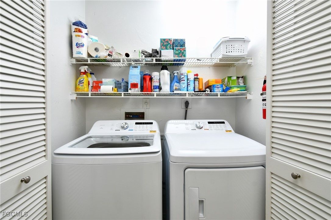 - Dryer, Dishwasher, Electric Cooktop, Freezer, Disposal, Ice Maker, Microwave, Range, Refrigerator, Self Cleaning Oven, Washer