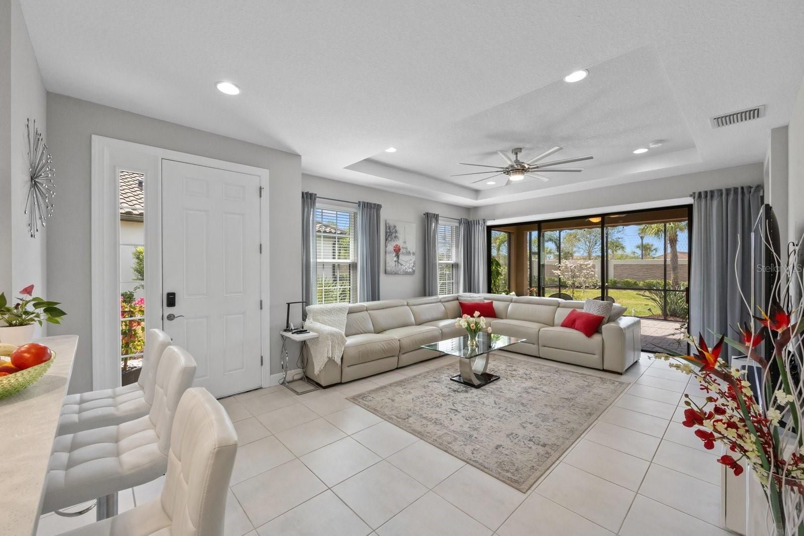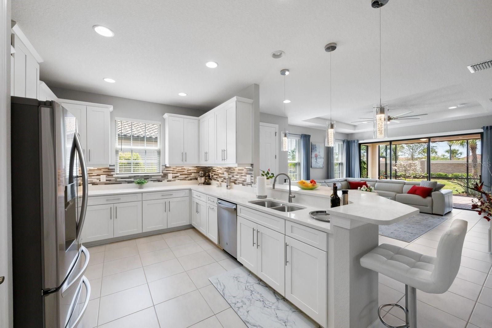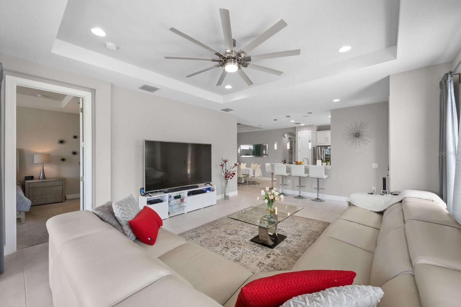 Welcome to LUXURY living at its finest in this exquisite Taylor Morrison Roma model located in the exclusive GATED community of Esplanade at Starkey Ranch in Odessa! PRIME LOCATION! Boasting 2 bedrooms, 2 bathrooms, and a versatile OFFICE or DEN, this home shines sophistication. Upon entry, you are greeted by VAULTED ceilings, an airy OPEN FLOOR plan, and elegant 8-foot doors throughout. The kitchen features upgraded QUARTZ countertops and top-of-the-line STAINLESS STEEL appliances (GAS STOVE ), gorgeous back splash, plenty of storage and counterspace. The breakfast bar seats and light fixtures add a touch of class to an already gorgeous kitchen. In addition, the kitchen seamlessly flows into the dining room and family room, perfect for hosting gatherings. The master suite is a retreat with TRAY ceilings, a generously sized bathroom featuring a frameless shower, and large WALK-IN closet. Additionally, the office/DEN area offers flexibility and could easily be converted into a third bedroom. Convenience is key with a spacious laundry room equipped with cabinets, a sink, and included washer and gas dryer. The garage boasts a sleek epoxy finish. Relish your downtime in the comfort of your SCREENED-IN extended paved lanai (2020- 15K) ; a perfect to spot to enjoy the Florida lifestyle .WATER SOFTENER was installed in 2020. Nestled within a gated neighborhood of the sought-after Starkey Ranch community, residents enjoy exclusive amenities including a 6,000 sf clubhouse with lifestyle director, concierge services, pool, fitness center, pickleball and tennis courts, cards & billiards room, multi-purpose room, message room and in-door and out-door kitchens. Conveniently located near a plethora of shopping and dining options, with easy access to the Veterans Expressway, this home offers the epitome of convenience and luxury living. Schedule your appointment today to experience this exceptional home firsthand!