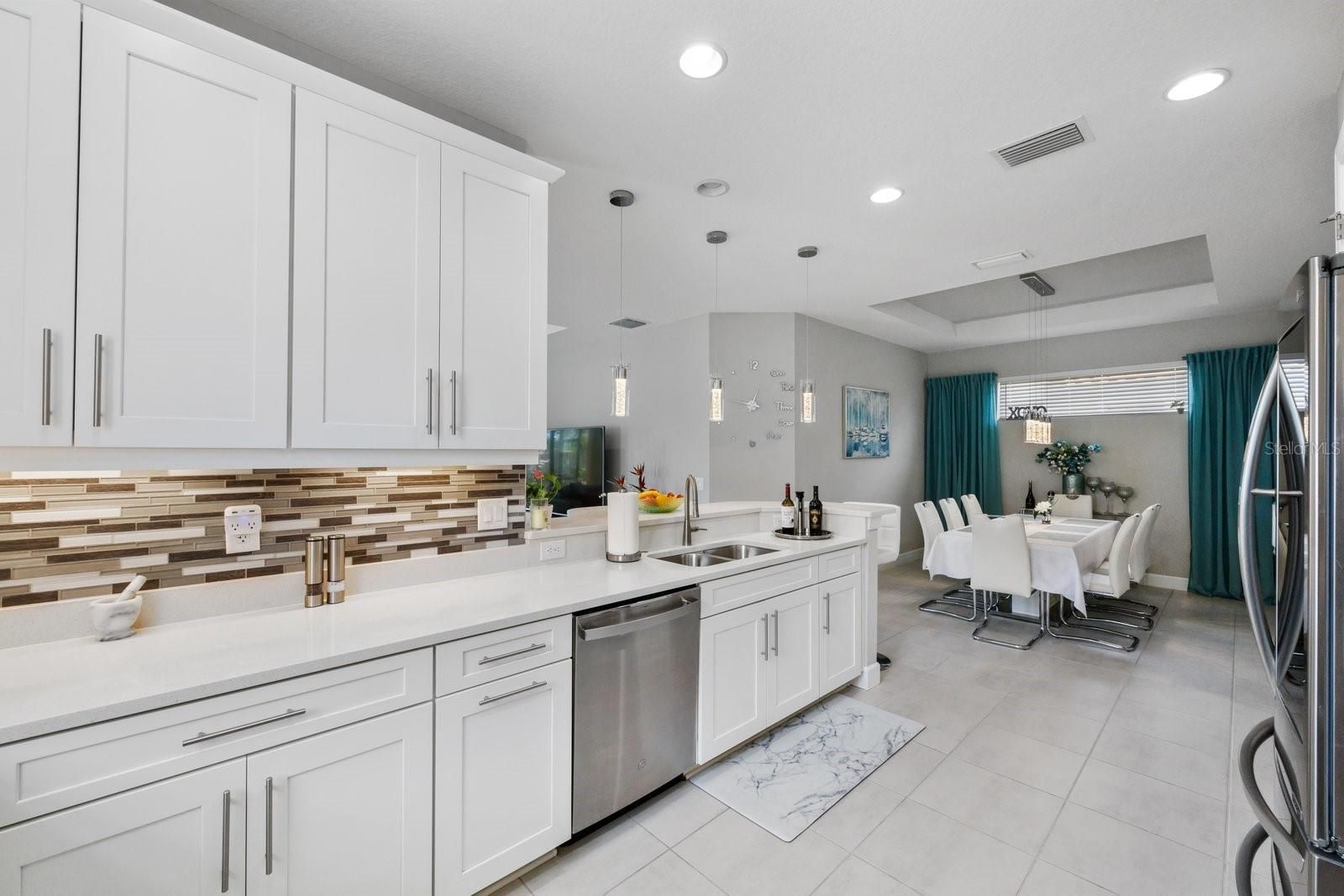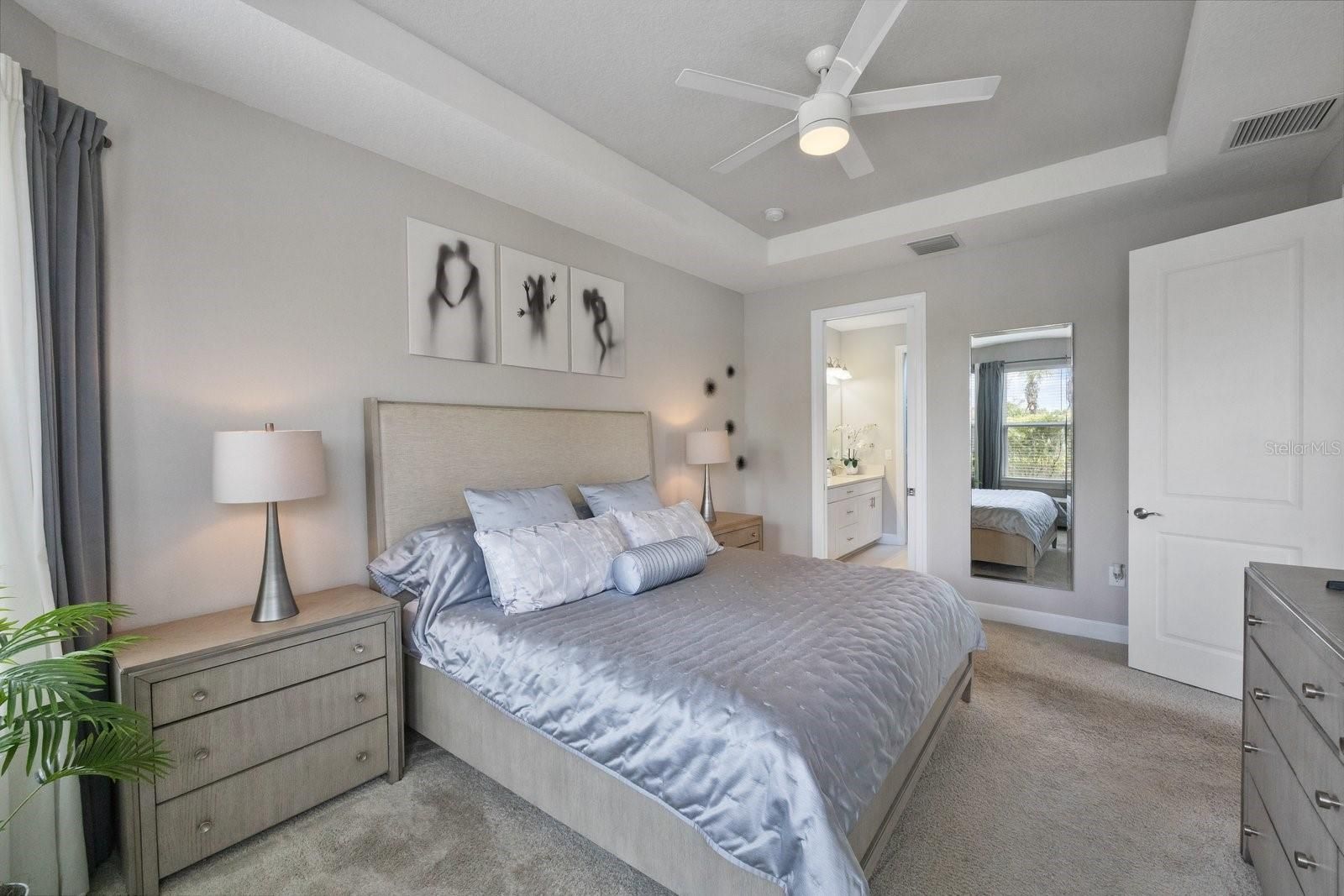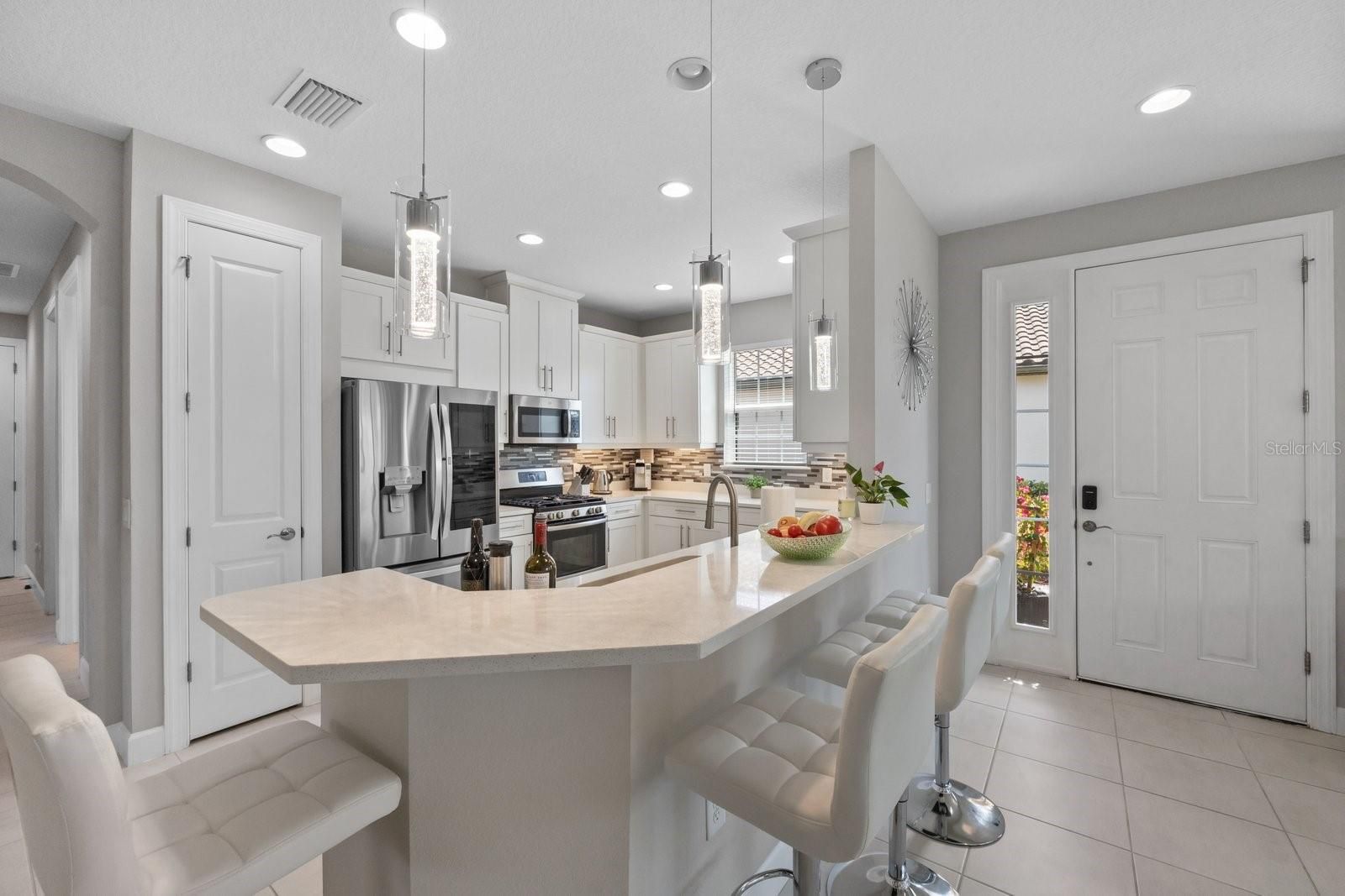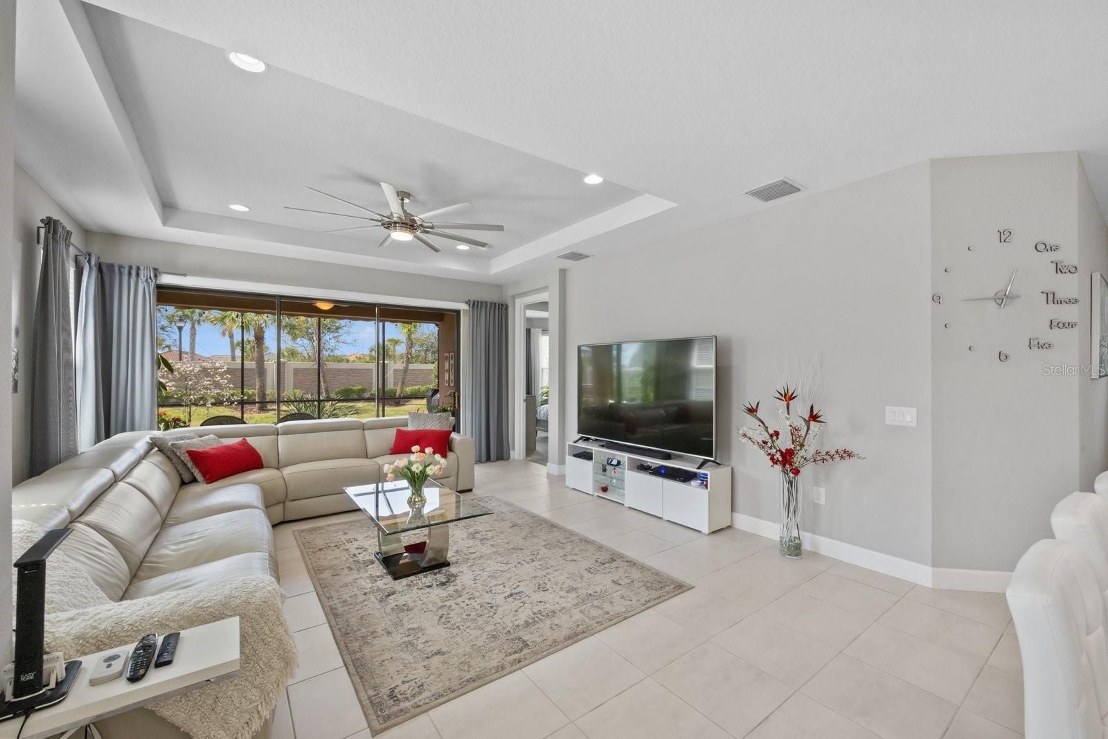 Welcome to LUXURY living at its finest in this exquisite Taylor Morrison Roma model located in the exclusive GATED community of Esplanade at Starkey Ranch in Odessa! PRIME LOCATION! Boasting 2 bedrooms, 2 bathrooms, and a versatile OFFICE or DEN, this home shines sophistication. Upon entry, you are greeted by VAULTED ceilings, an airy OPEN FLOOR plan, and elegant 8-foot doors throughout. The kitchen features upgraded QUARTZ countertops and top-of-the-line STAINLESS STEEL appliances (GAS STOVE ), gorgeous back splash, plenty of storage and counterspace. The breakfast bar seats and light fixtures add a touch of class to an already gorgeous kitchen. In addition, the kitchen seamlessly flows into the dining room and family room, perfect for hosting gatherings. The master suite is a retreat with TRAY ceilings, a generously sized bathroom featuring a frameless shower, and large WALK-IN closet. Additionally, the office/DEN area offers flexibility and could easily be converted into a third bedroom. Convenience is key with a spacious laundry room equipped with cabinets, a sink, and included washer and gas dryer. The garage boasts a sleek epoxy finish. Relish your downtime in the comfort of your SCREENED-IN extended paved lanai (2020- 15K) ; a perfect to spot to enjoy the Florida lifestyle .WATER SOFTENER was installed in 2020. Nestled within a gated neighborhood of the sought-after Starkey Ranch community, residents enjoy exclusive amenities including a 6,000 sf clubhouse with lifestyle director, concierge services, pool, fitness center, pickleball and tennis courts, cards & billiards room, multi-purpose room, message room and in-door and out-door kitchens. Conveniently located near a plethora of shopping and dining options, with easy access to the Veterans Expressway, this home offers the epitome of convenience and luxury living. Schedule your appointment today to experience this exceptional home firsthand!