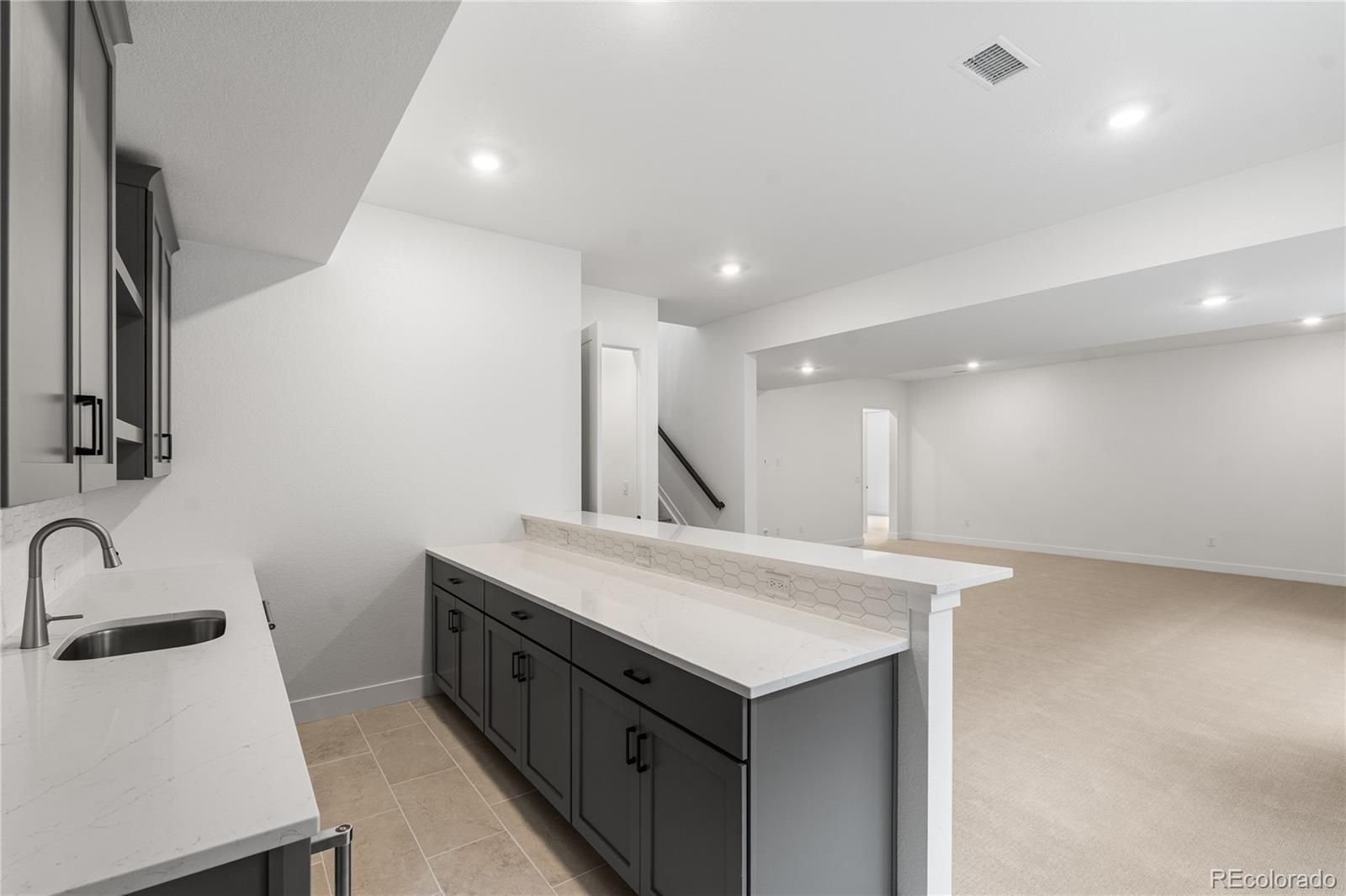 Beautiful one-story home in the desirable Solstice Community. Solstice is surrounded by Chatfield State Park on 3 sides of the community and acreage parcels on the 4th side. This home features 3 bedrooms, 3 baths, fireplace with full height tile surround, finished basement with wet bar, covered patio, and 2-bay garage with storage. Design finishes include Evoke luxury plank flooring in Astoria/Gaela, AZT/DT engineered stone counter tops in New Venatino Grey, and Yorktowne Henning cabinets in White Icing and Frappe. Please contact a community representative for details. The Mirabelle Metropolitan Districts provide various services to the property and in addition to the estimated taxes, a $40 per month operations fee is imposed.