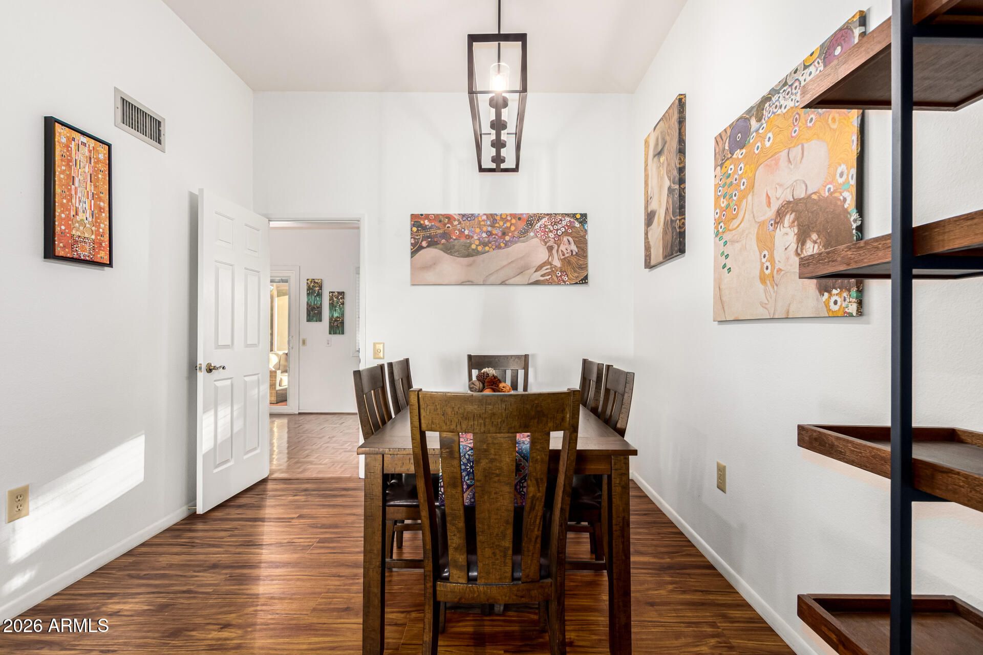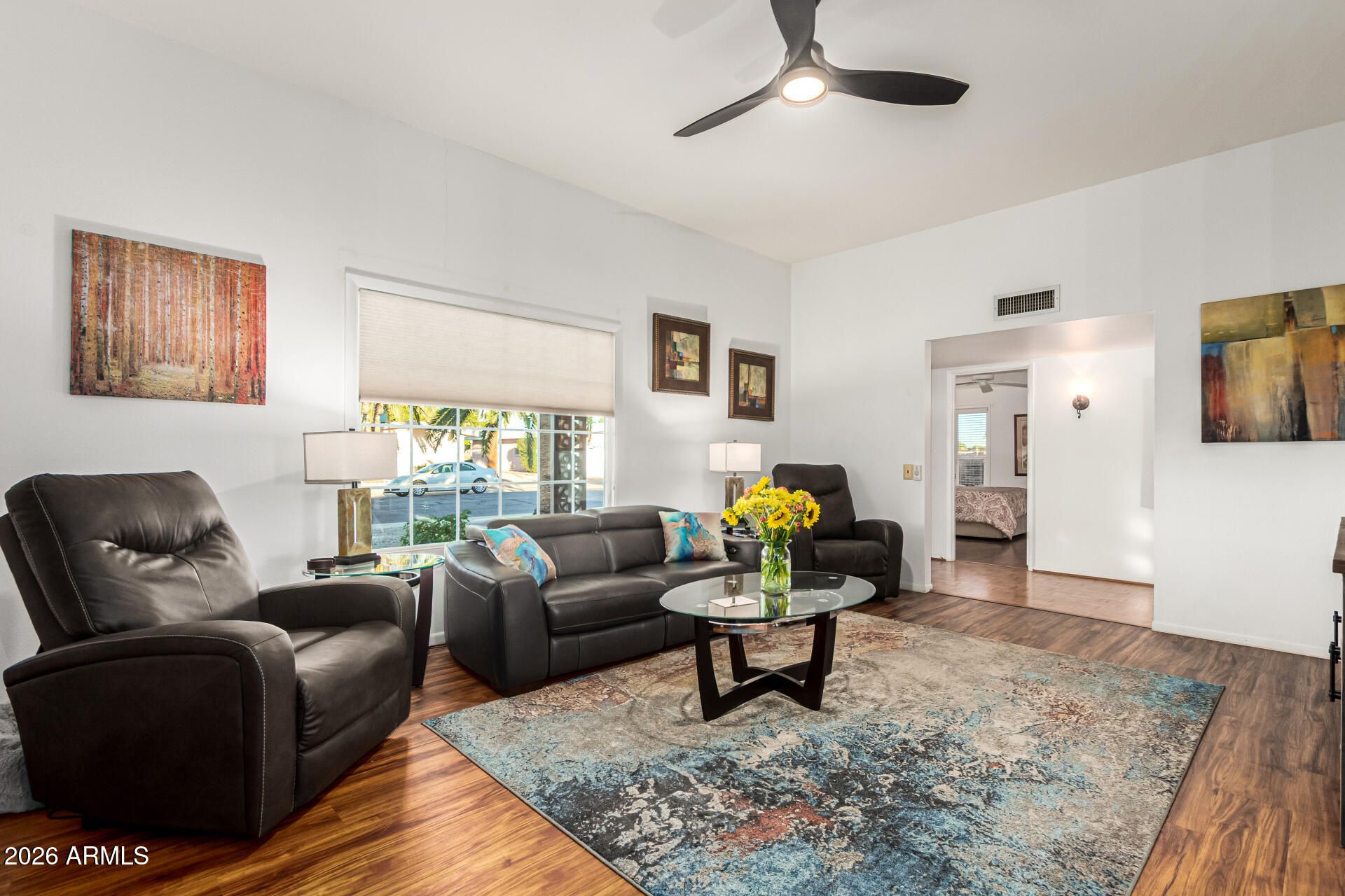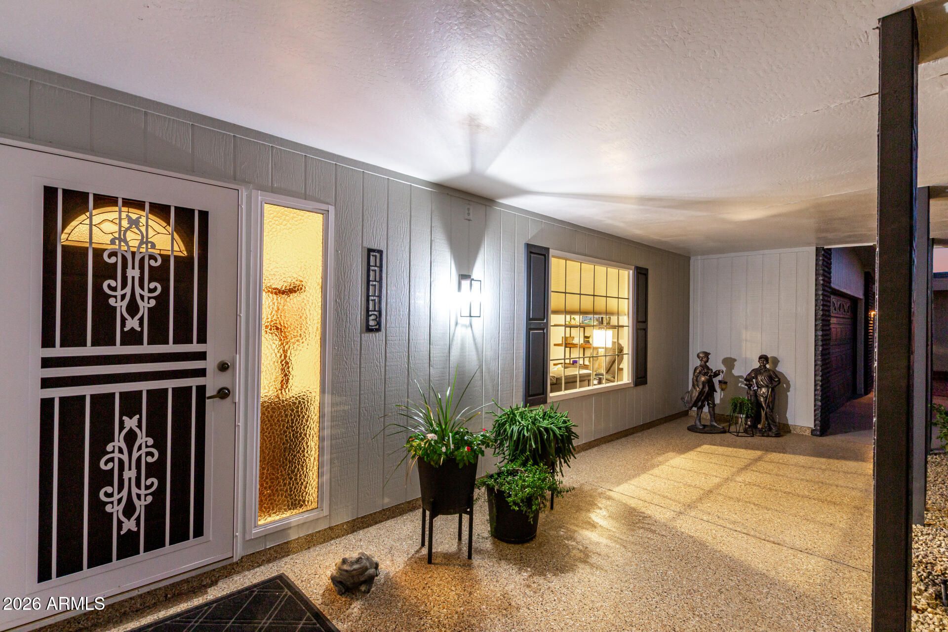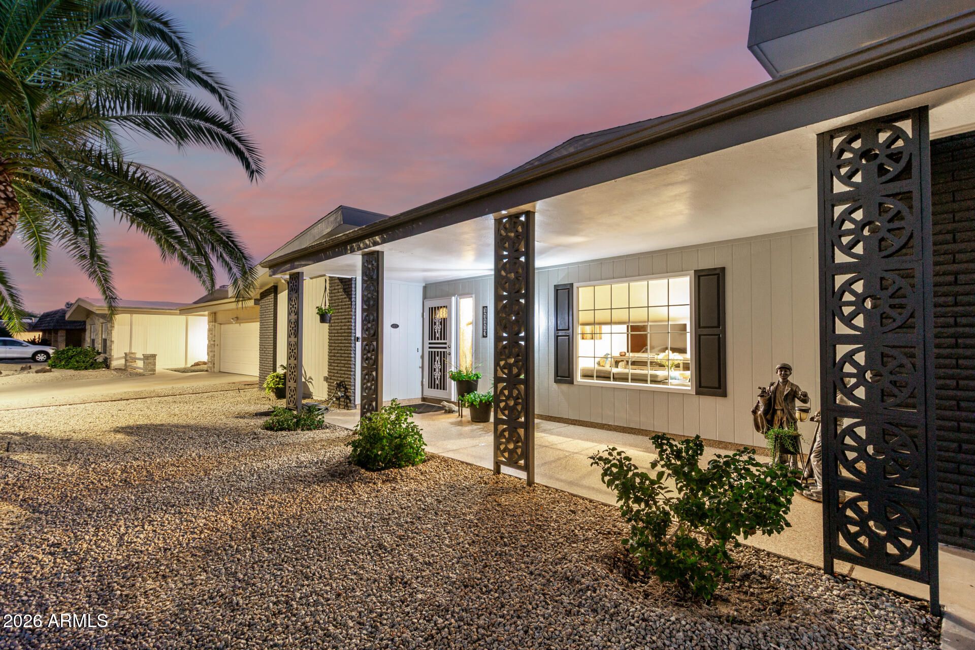 Extremely well cared-for 2-bedroom home features high ceilings and a bright, open feel. Dual-pane Pella windows, a separate family room, and a well-appointed kitchen with stainless steel appliances, Corian counters, tile backsplash, recessed lighting, and ample cabinetry contribute to the home's appeal. Recent upgrades include a 2-year-old AC, whole-house water softener, and RO system. Outdoor features include mature date palms, epoxy front patio, and an awesome screened-in back patio for entertaining and enjoying the great Arizona weather (most of the time ;-). The extended 2.5-car garage provides added storage and utility - could likely fit four small cars and certainly two regular sized cars and two golf carts.
