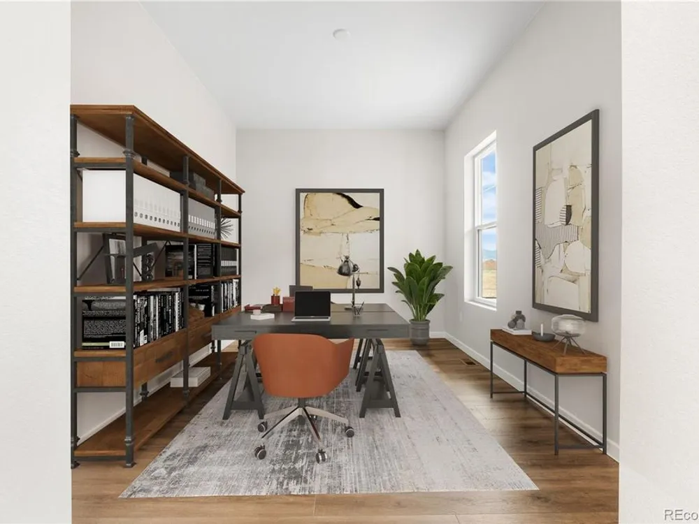 Beautiful one-story home in the desirable Solstice Community. Solstice is surrounded by Chatfield State Park on 3 sides of the community and acreage parcels on the 4th side. This home features 2 bedrooms, 2.5 baths, study with barn door, fireplace with full height tile surround, covered patio, and 2-bay garage. Design finishes include Shaw luxury plank flooring in Truffle, AZT/DT engineered stone stone counter tops in New Venatino Beige and Bianco Pearl, and Yorktowne/Shaw cabinets in White Icing and Smoke. Please contact a community representative for details. The Mirabelle Metropolitan Districts provide various services to the property and in addition to the estimated taxes, a $40 per month operations fee is imposed.