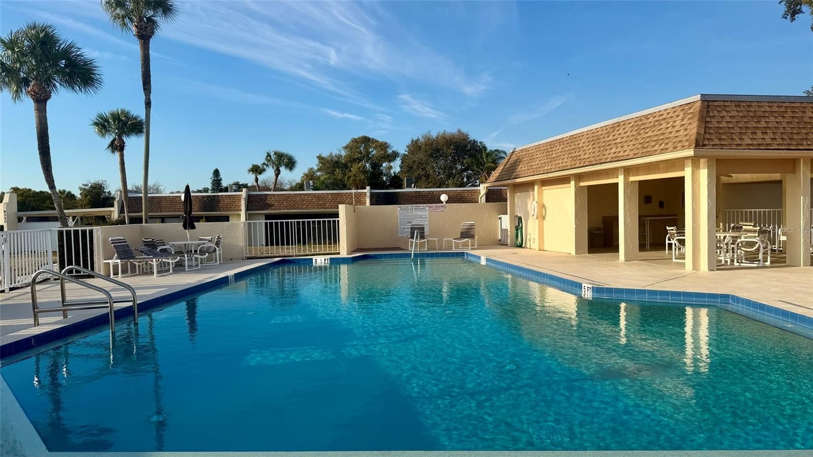 Welcome to this beautifully maintained 2-bedroom, 1-bath condo located in the highly desirable 55+ community of Timber Oaks Fairway Villas. This charming home offers a bright, open layout with a spacious living and dining area, with plenty of natural light. The kitchen features ample cabinet space, a breakfast bar, and an efficient layout perfect for everyday living. Both bedrooms are generously sized, and the primary bedroom includes a large closet and easy access to the bathroom. Enjoy the convenience of in-unit laundry, a rare perk in many 55+ communities. Step outside to a peaceful screened porch—ideal for morning coffee or relaxing with a book. The condo includes assigned parking and is just steps from beautifully maintained grounds. Residents of Timber Oaks enjoy an active lifestyle with exceptional amenities, including a clubhouse, heated pool, in-ground spa, shuffleboard courts, and a full calendar of social activities. The community features walking paths and sidewalks throughout, perfect for daily strolls, speed walking, and or staying active while enjoying the scenic ponds and landscaped area with big oak trees. HOA fees cover exterior maintenance, irrigation, landscaping, roofs, and more—providing low-maintenance living at its best. This condo offers comfort, convenience, and a vibrant community atmosphere. Perfect for year-round living or a seasonal retreat.