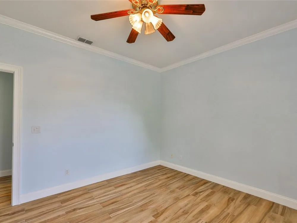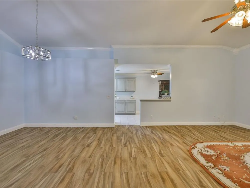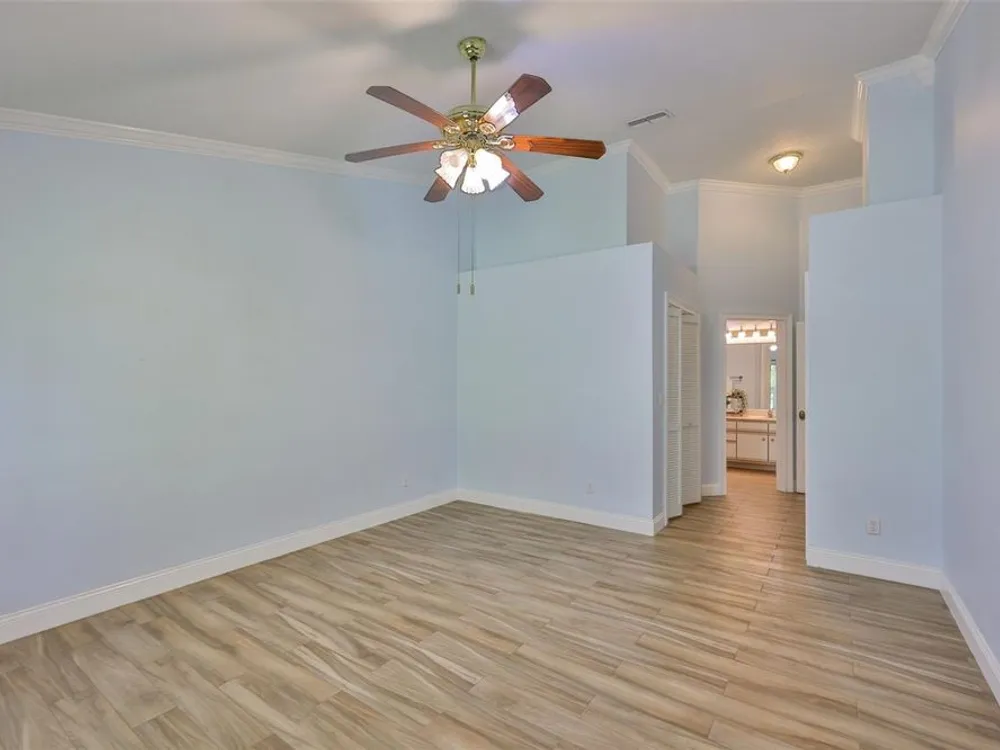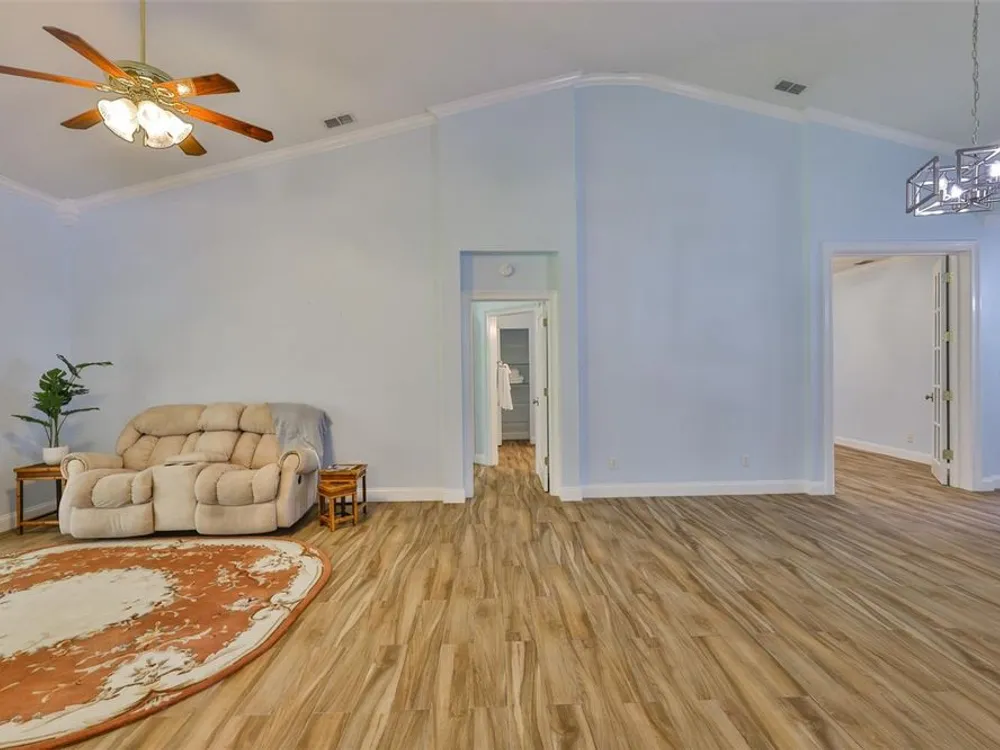 - Ceiling Fan(s), Eat-in Kitchen, High Ceilings, Living/Dining Room, Main Level Primary, Solid Surface Counters, Solid-Wood Cabinets, Vaulted Ceiling(s), Walk-In Closet(s)
