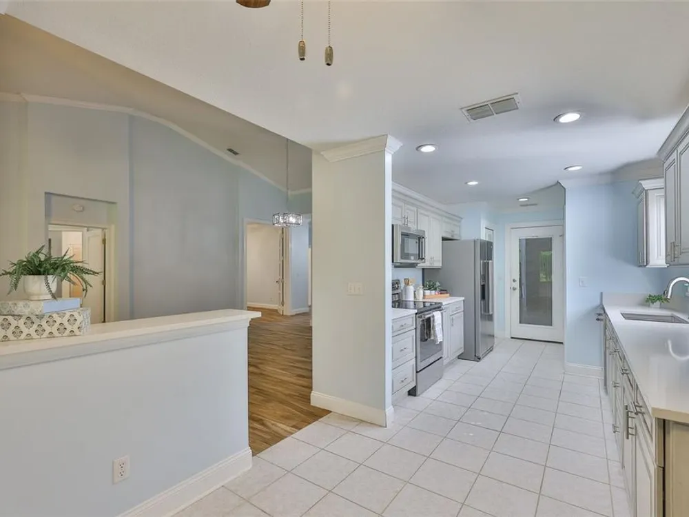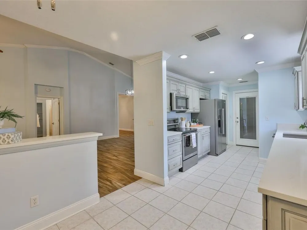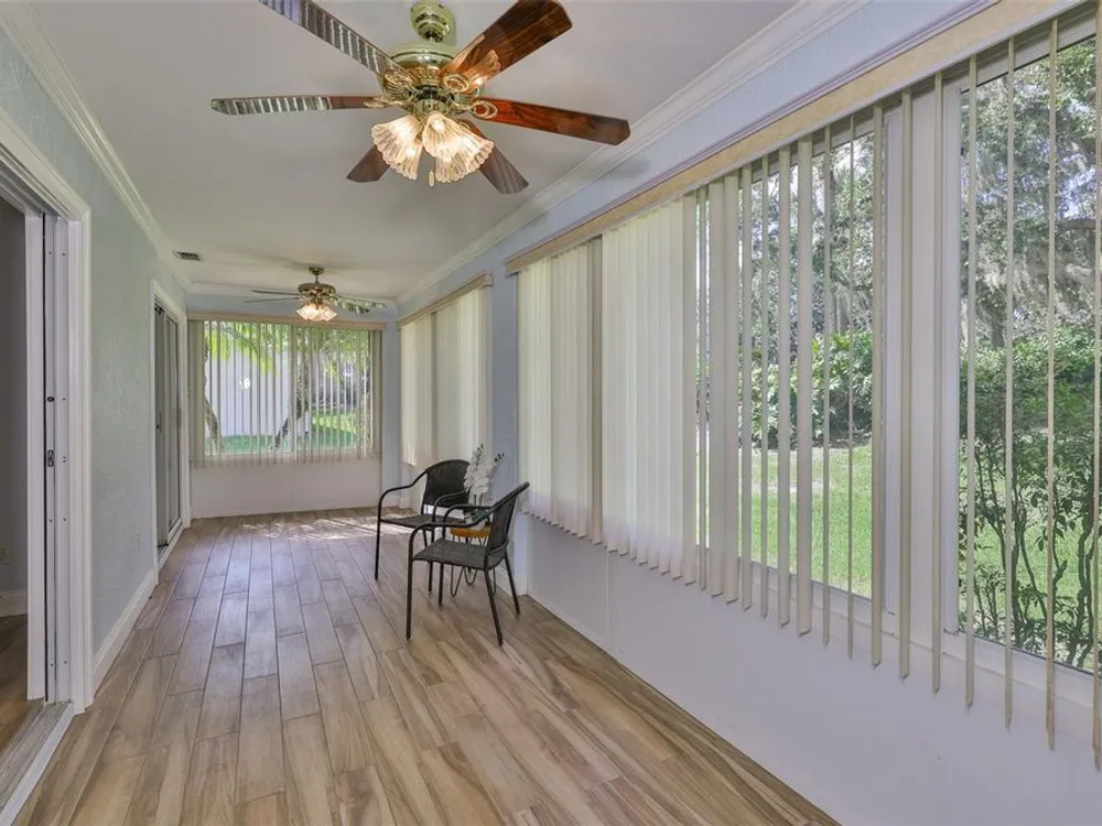 Care-free Florida living awaits in this impeccably maintained villa in Kings Point’s sought-after gated, golf-cart-friendly community. Residence highlights • 2 Bedrooms+ den/office | 2 full baths | enclosed, A/C-cooled Florida room • Open plan with wood-look tile, tall ceilings, crown molding, and NO popcorn throughout • $15k custom accordion hurricane shutters for peace of mind • Chef’s kitchen: soft-close cabinetry, quartz counters, stainless appliances, breakfast nook, and leaded-glass entry door that floods the space with natural light • Split layout: private primary suite occupies the southwest corner, offering an oversized walk-in closet and updated bath; guest wing sits at the front with adjacent full bath • Bonus den easily doubles as hobby room or extra sleep space • Oversized two-car garage with sliding screen doors, glass-inset service door going into garage, and brand-new washer & dryer • Smart front entry with fingerprint lock and keyed backup • 2021 Hot Water Heater and an Arctic Air Home Services-Annually Servicing Air Conditioner • Manicured landscaping with decorative garden edging Community perks Kings Point delivers a true resort lifestyle: multiple clubhouses, indoor & outdoor pools, fitness centers, pickleball, lawn bowling, golf, dozens of social clubs, on-site cafés, and dedicated golf-cart lanes to local shopping, dining, and medical facilities. Your condo fee includes lawn care, roof, exterior painting, water, sewer, insurance, and access to local transportation—making this a perfect seasonal or full-time residence. Just minutes from shopping, dining, award-winning medical facilities, and under 45 minutes to Tampa, Sarasota, and the Gulf beaches. Schedule your private tour today and discover the best of Florida living!