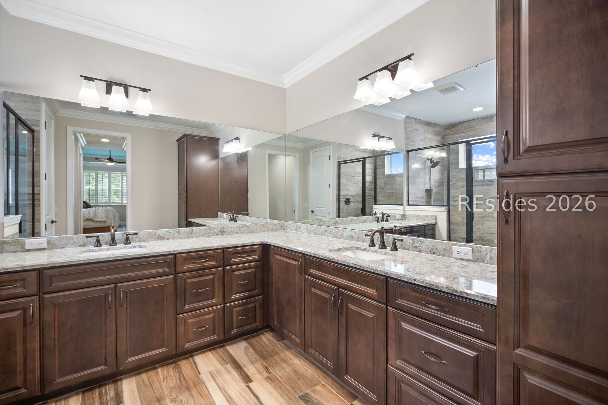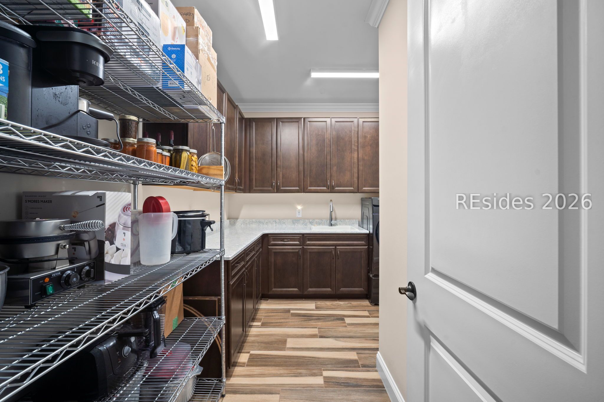 - Tray Ceiling(s), Main Level Primary, Multiple Primary Bathrooms, Smooth Ceilings, Pantry