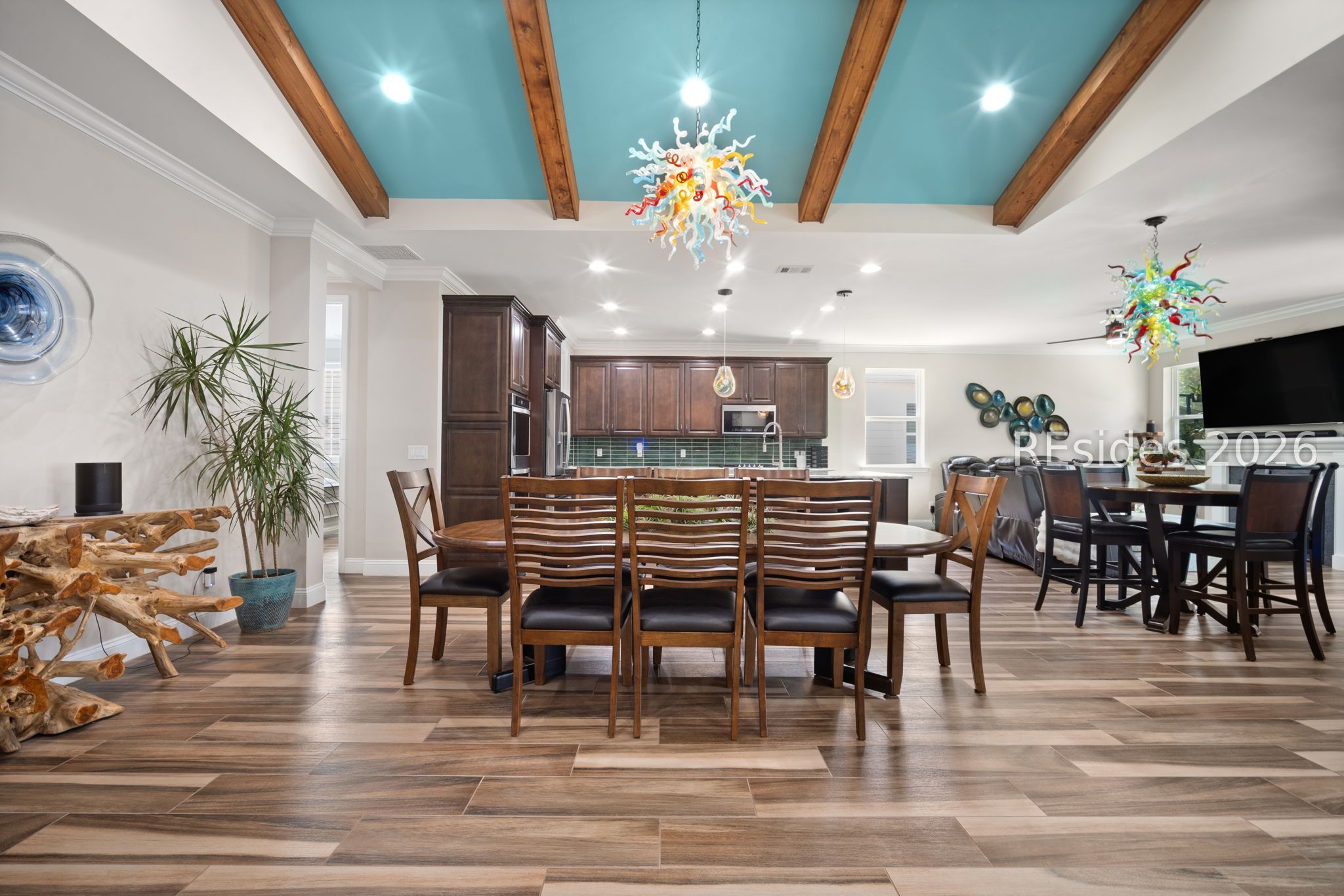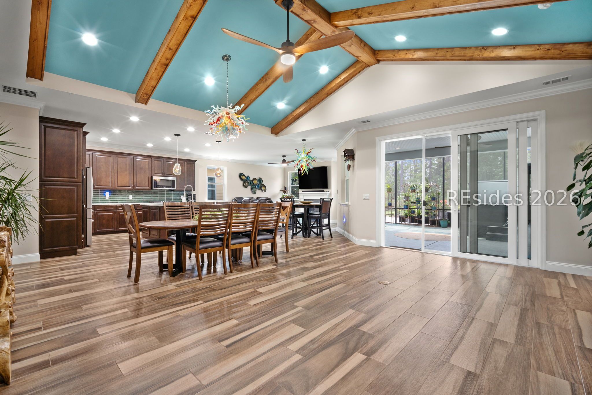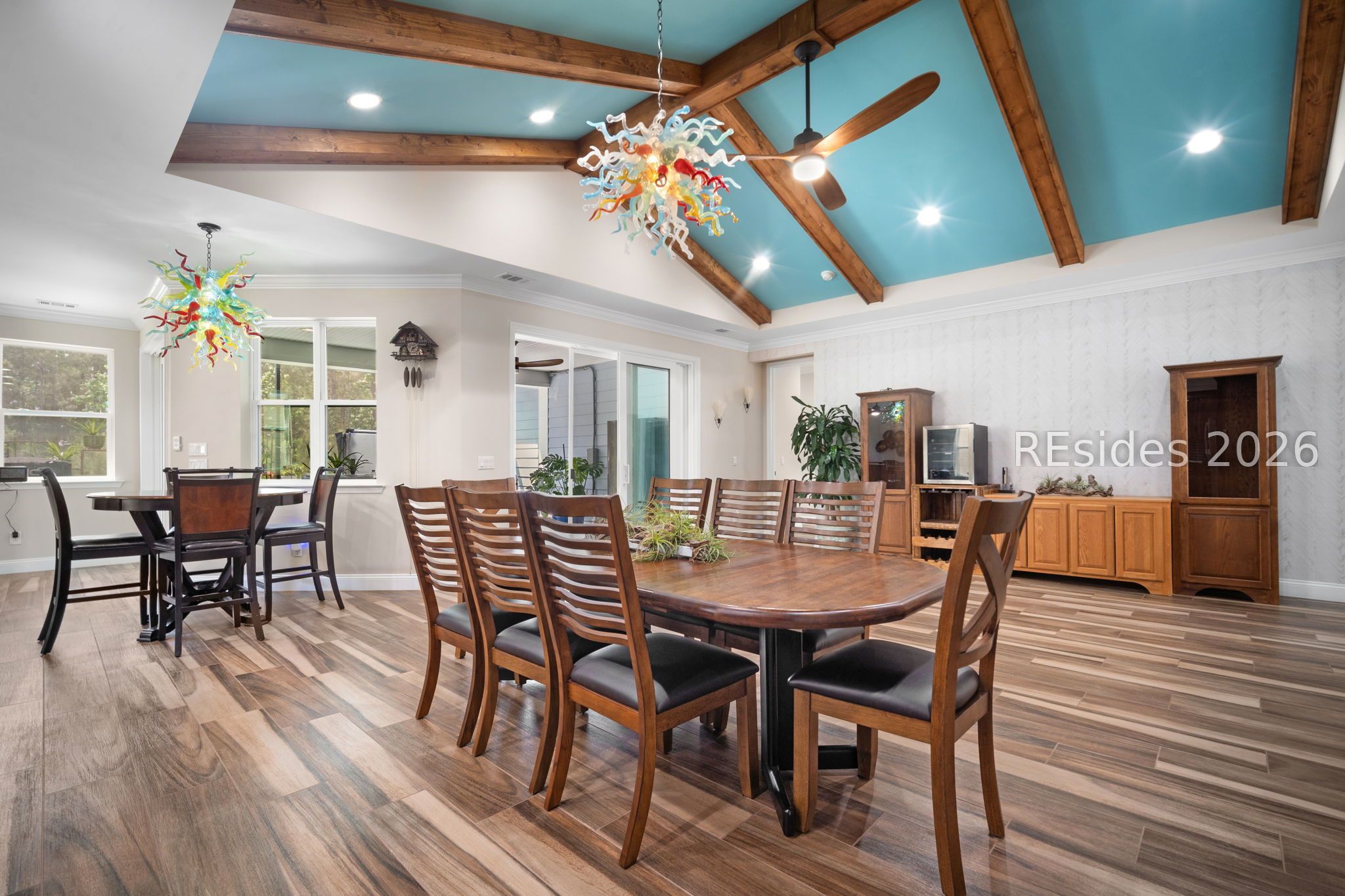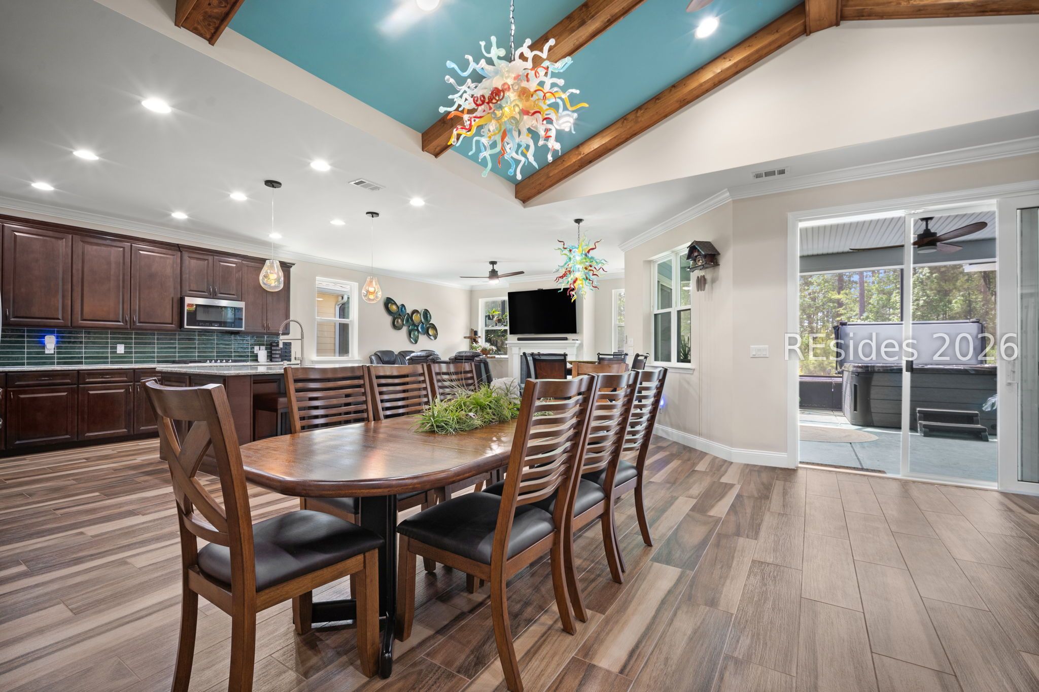 Trinidad Βaу flοor plan featuring а thoughtfully designed 3-BΕDROΟM LAYOUT with ALL BEDROOMS EN SUITE and a DEDICATED OFFICE...a functional layout with multiple distinct living areas creates flexibility for guests, family, or multigenerational living...the SPACIOUS PRIMARY SUITE offers a quiet, private setting with views toward the rear patio, along with a walk-in shower, double vanities, and upgraded closet space...throughout the home, you'll find TILE FLOORING, CROWN MOLDING, CEILING BEAMS, and PLANTATION SHUTTERS, complemented by custom foyer lighting, distinctive glass fixtures, and upgraded trim details that add character and visual interest...the GOURMET KITCHEN is equipped with STAINLESS STEEL APPLIANCES, TRUE DOUBLE OVENS, a built-in microwave, generous prep space, and an abundance of cabinetry...outdoor living is expanded with an EXTENDED LANAI, additional patio and deck space, and a BIRDCAGE ENCLOSURE with HOT TUB, all overlooking a WOODED REAR BACKDROP that provides a more private and quiet setting...a rare 3-CAR GARAGE offers exceptional space for vehicles, storage, or hobby use, along with an added attic storage platform...additional features include a WHOLE-HOUSE WATER FILTRATION SYSTEM and SMART HOME capabilities with app and voice control for lighting, TVs, and ceiling fans...this original-owner home has been well maintained and thoughtfully upgraded beyond standard builder finishes...located within a premier 55+ gated community offering resort-style amenities including pools, fitness center, sports courts, walking trails, dining venues, live entertainment, and an extensive selection of social clubs and activities.