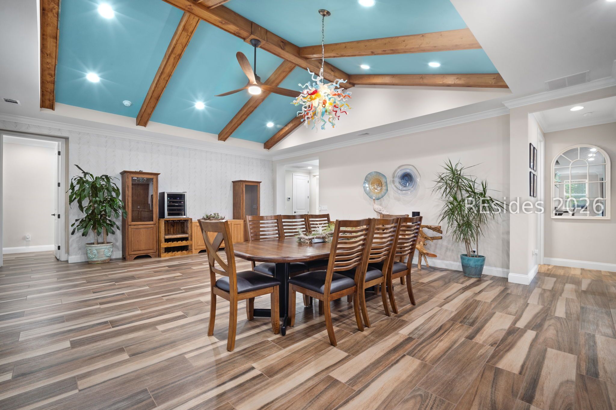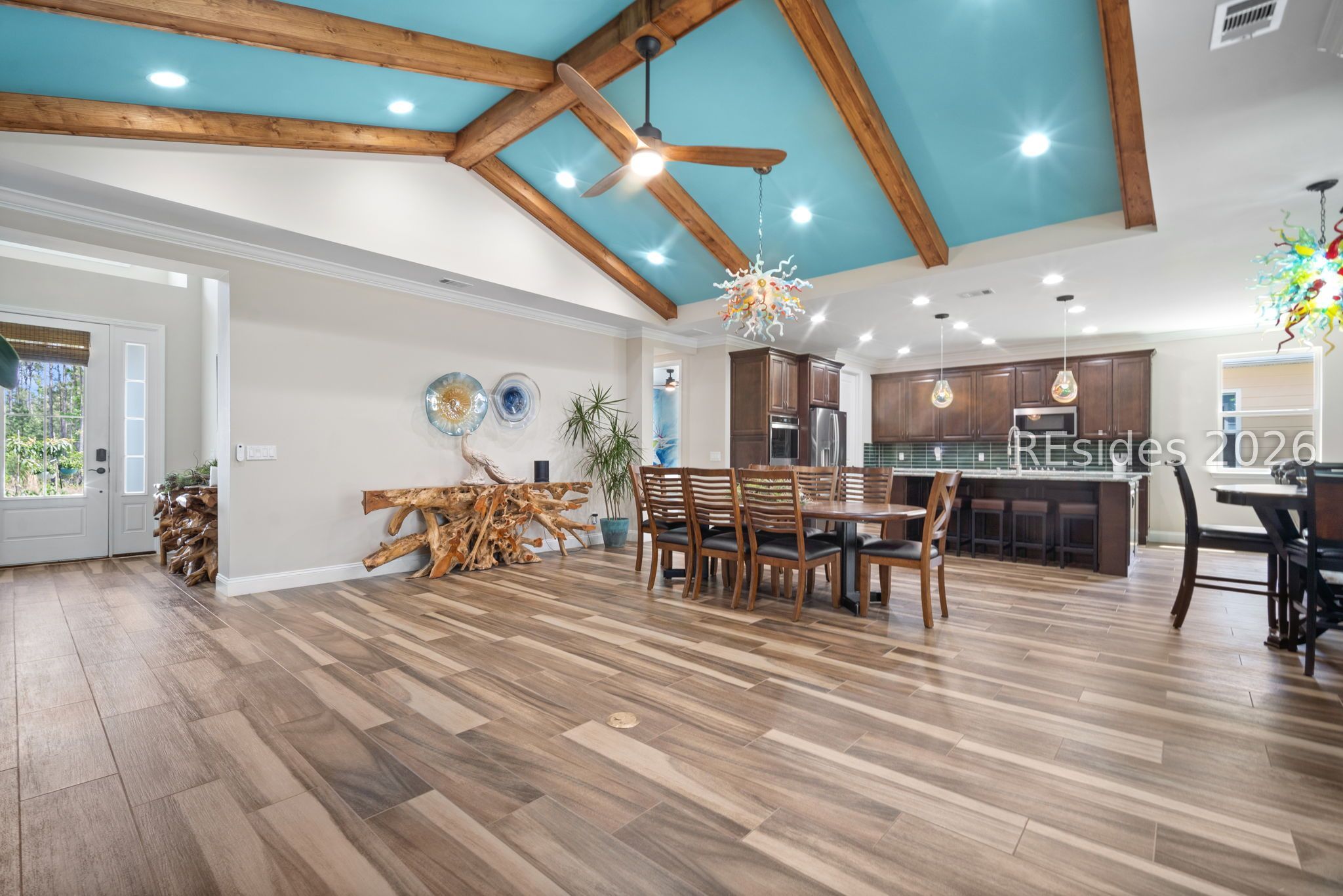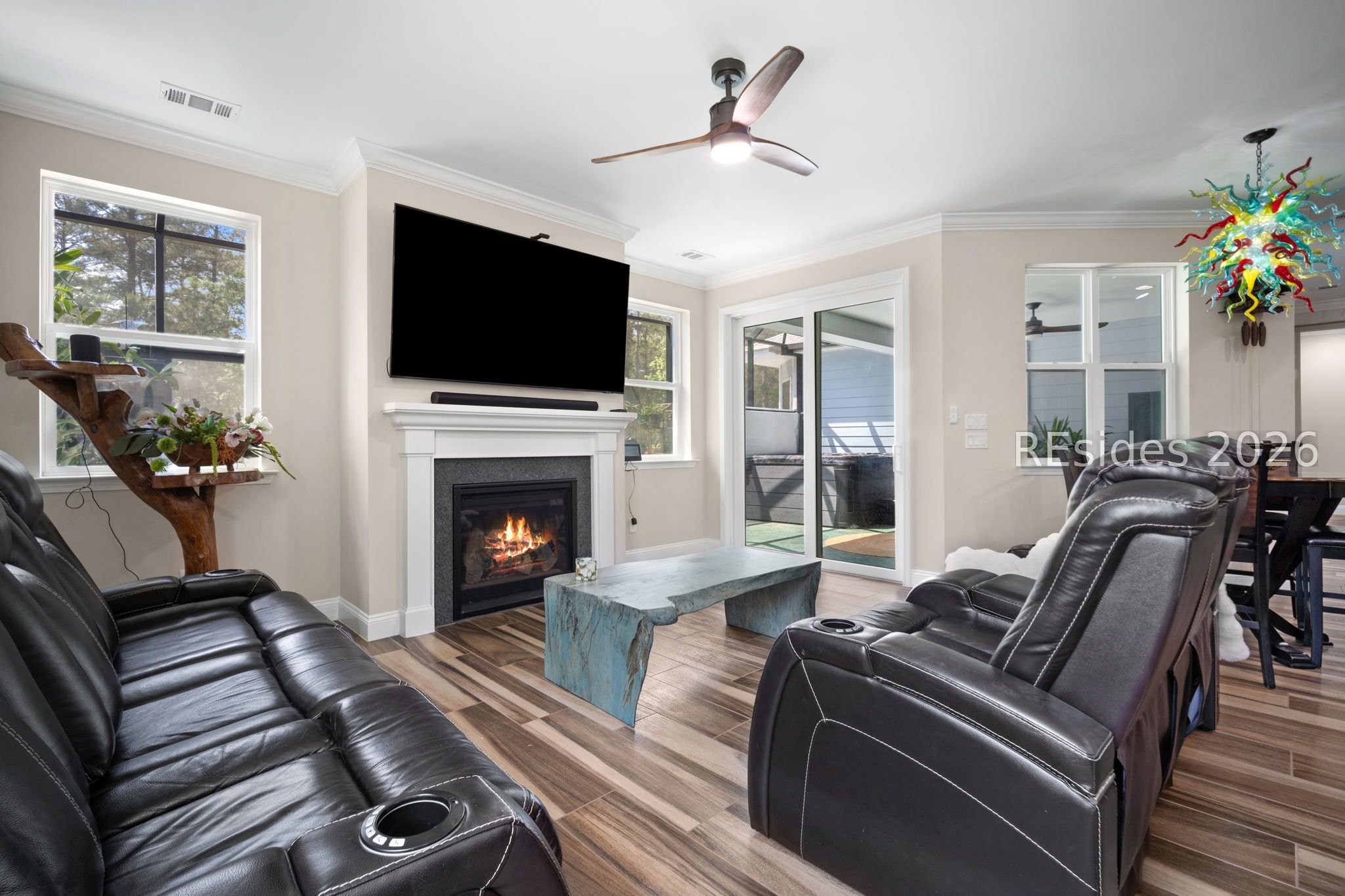 Trinidad Βaу flοor plan featuring а thoughtfully designed 3-BΕDROΟM LAYOUT with ALL BEDROOMS EN SUITE and a DEDICATED OFFICE...a functional layout with multiple distinct living areas creates flexibility for guests, family, or multigenerational living...the SPACIOUS PRIMARY SUITE offers a quiet, private setting with views toward the rear patio, along with a walk-in shower, double vanities, and upgraded closet space...throughout the home, you'll find TILE FLOORING, CROWN MOLDING, CEILING BEAMS, and PLANTATION SHUTTERS, complemented by custom foyer lighting, distinctive glass fixtures, and upgraded trim details that add character and visual interest...the GOURMET KITCHEN is equipped with STAINLESS STEEL APPLIANCES, TRUE DOUBLE OVENS, a built-in microwave, generous prep space, and an abundance of cabinetry...outdoor living is expanded with an EXTENDED LANAI, additional patio and deck space, and a BIRDCAGE ENCLOSURE with HOT TUB, all overlooking a WOODED REAR BACKDROP that provides a more private and quiet setting...a rare 3-CAR GARAGE offers exceptional space for vehicles, storage, or hobby use, along with an added attic storage platform...additional features include a WHOLE-HOUSE WATER FILTRATION SYSTEM and SMART HOME capabilities with app and voice control for lighting, TVs, and ceiling fans...this original-owner home has been well maintained and thoughtfully upgraded beyond standard builder finishes...located within a premier 55+ gated community offering resort-style amenities including pools, fitness center, sports courts, walking trails, dining venues, live entertainment, and an extensive selection of social clubs and activities.