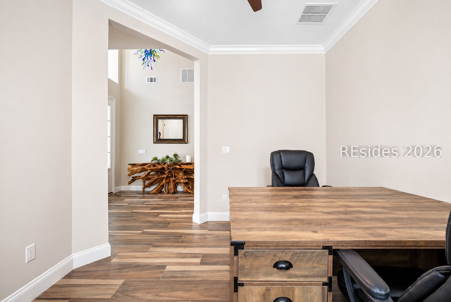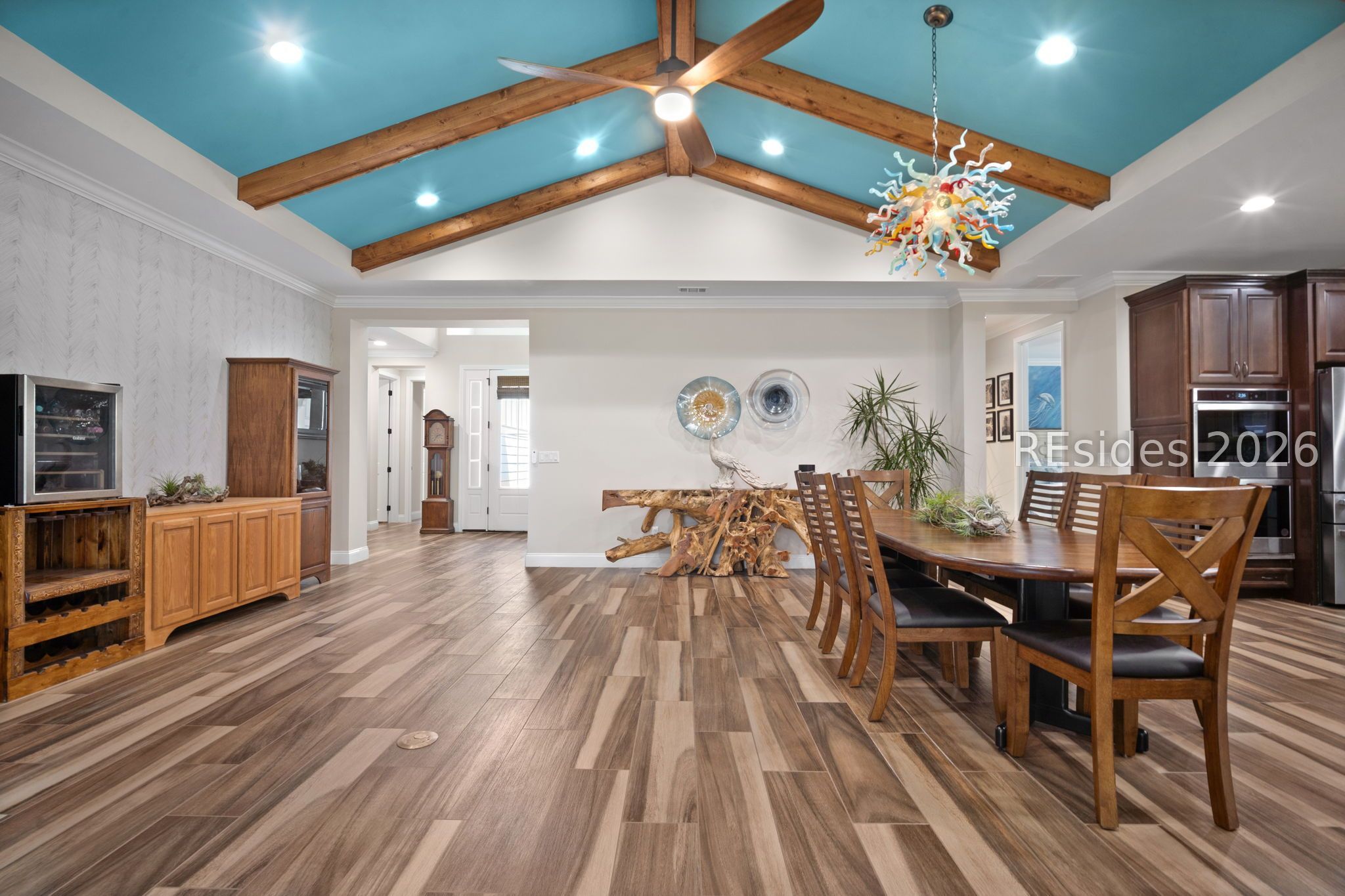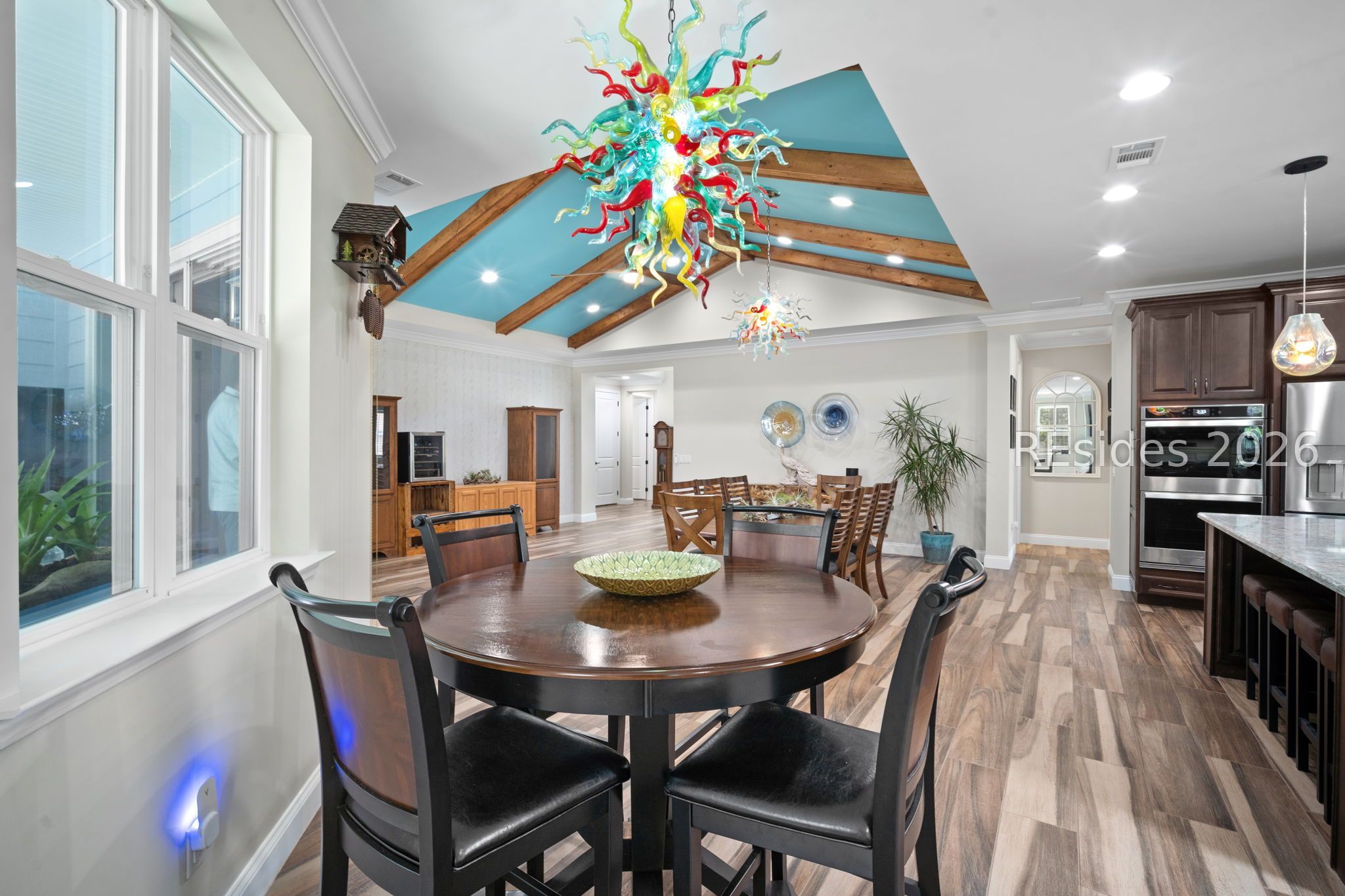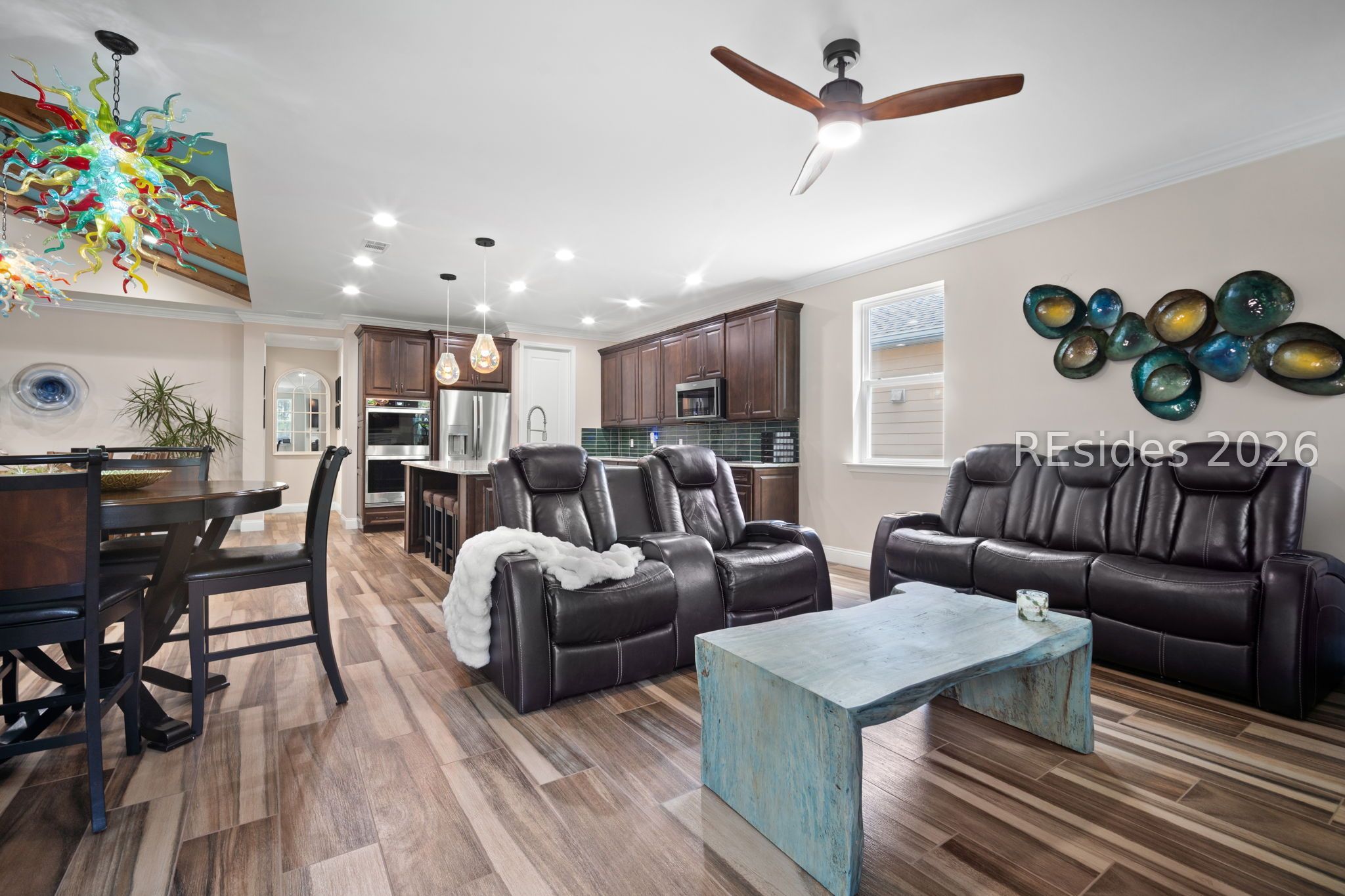 Trinidad Βaу flοor plan featuring а thoughtfully designed 3-BΕDROΟM LAYOUT with ALL BEDROOMS EN SUITE and a DEDICATED OFFICE...a functional layout with multiple distinct living areas creates flexibility for guests, family, or multigenerational living...the SPACIOUS PRIMARY SUITE offers a quiet, private setting with views toward the rear patio, along with a walk-in shower, double vanities, and upgraded closet space...throughout the home, you'll find TILE FLOORING, CROWN MOLDING, CEILING BEAMS, and PLANTATION SHUTTERS, complemented by custom foyer lighting, distinctive glass fixtures, and upgraded trim details that add character and visual interest...the GOURMET KITCHEN is equipped with STAINLESS STEEL APPLIANCES, TRUE DOUBLE OVENS, a built-in microwave, generous prep space, and an abundance of cabinetry...outdoor living is expanded with an EXTENDED LANAI, additional patio and deck space, and a BIRDCAGE ENCLOSURE with HOT TUB, all overlooking a WOODED REAR BACKDROP that provides a more private and quiet setting...a rare 3-CAR GARAGE offers exceptional space for vehicles, storage, or hobby use, along with an added attic storage platform...additional features include a WHOLE-HOUSE WATER FILTRATION SYSTEM and SMART HOME capabilities with app and voice control for lighting, TVs, and ceiling fans...this original-owner home has been well maintained and thoughtfully upgraded beyond standard builder finishes...located within a premier 55+ gated community offering resort-style amenities including pools, fitness center, sports courts, walking trails, dining venues, live entertainment, and an extensive selection of social clubs and activities.