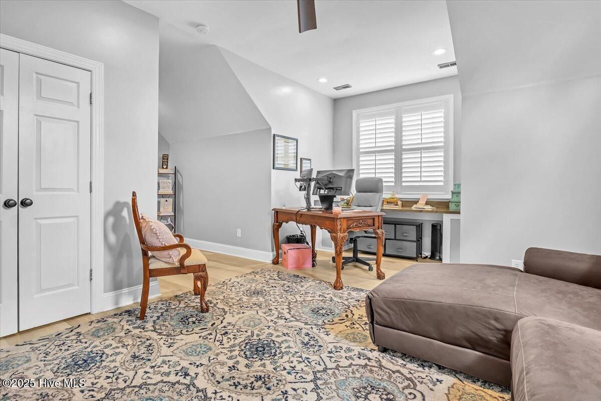 - Master Downstairs, Walk-In Closet(s), High Ceilings, Bookcases, Kitchen Island, Ceiling Fan(s), Blinds