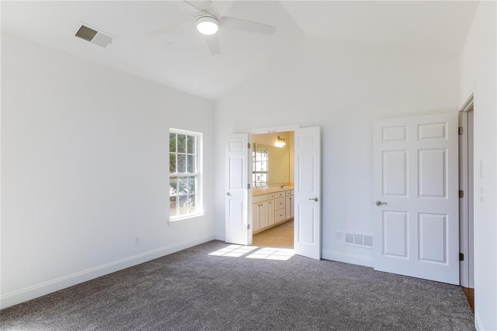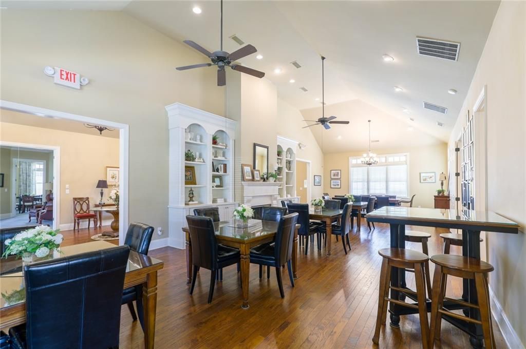 Lock and leave, low-maintenance living is sure to be a breeze in Brookhaven at Johns Creek, the perfect 55+ community for those who want a tight-knit neighborhood with social activities and loads of amenities. A spacious, open floorplan lives large with gleaming hardwoods and high ceilings throughout the living room with built-ins, a separate dining room, breakfast room and kitchen with granite countertops and stainless appliances. A vaulted primary bedroom features an ensuite bath with dual vanity. Two additional bedrooms on the main share a hall bath. Past the laundry room and pantry, head upstairs to find a spacious fourth bedroom and another full bath. Fresh paint and new carpet throughout give this home the refreshed feel you're after. Gated community with pool, gym, library, tennis, pickleball + more.