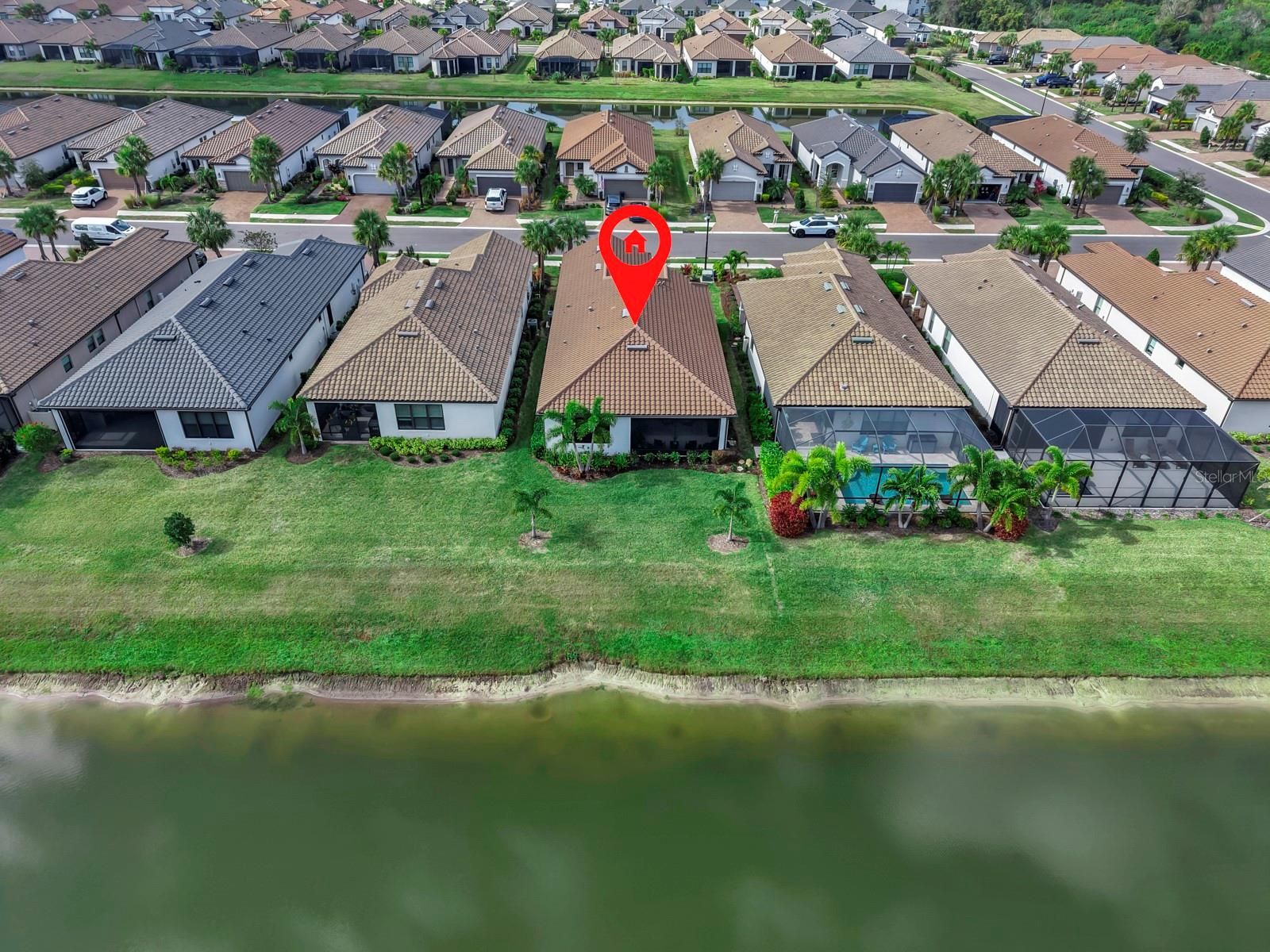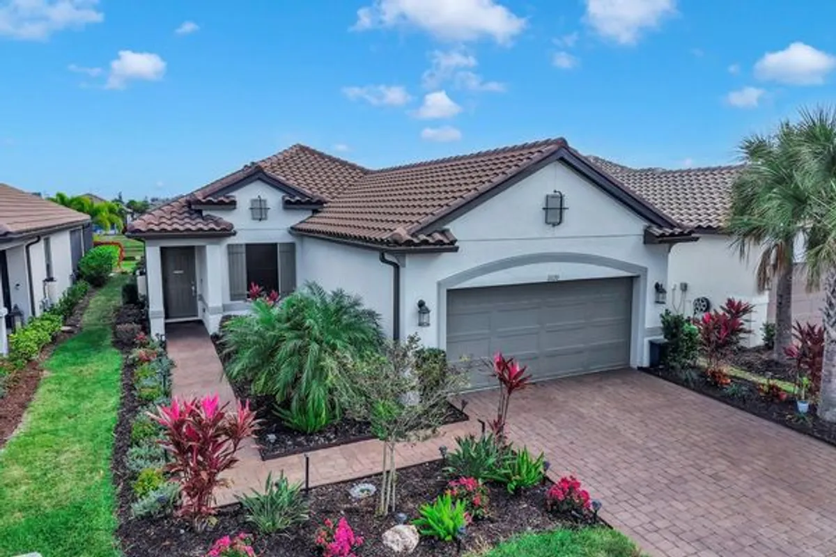 Enjoy resort style & maintenance free living in this beautifully updated Matera model, offering 3 bedrooms, 2.5 bathrooms, an open floor plan, and tranquil water views that set the tone for relaxed Florida living. From the moment you arrive, attention to detail is evident with upgraded landscaping and lighting, rain gutters, and a sealed paver driveway. A whole-home water softener and purification system adds comfort and convenience throughout the home. Inside, the space feels open, bright, and inviting. The kitchen, dining, and living areas flow seamlessly together, making this home ideal for everyday living and entertaining. Wood-look porcelain tile runs throughout the main living areas, creating a clean, cohesive aesthetic that is both stylish and easy to maintain. Crown molding, updated lighting, and ceiling fans provide a refined finish, while tray ceilings and 8' doors enhance the home’s open, airy feel. Plantation shutters add timeless character, complemented by sun screens that provide privacy and help manage the Florida sun. The kitchen is thoughtfully designed with a herringbone tile backsplash, a functional island, a dedicated nook ideal for a coffee or beverage station, and a five-stage water filtration system at the sink. Custom pantry shelving enhances storage and organization. Nearby, the laundry room features additional cabinetry and a window that brings in natural light. The home offers a desirable split-bedroom layout, with the primary suite privately situated at the rear to take full advantage of peaceful water views. Two additional bedrooms are located at the front of the home, providing excellent separation for guests, family, or a home office. The primary suite serves as a relaxing retreat and features an ensuite bathroom with double vanities, a spacious walk-in shower with an upgraded rain shower head and frameless glass enclosure, and a custom walk-in closet with built-in storage. Step outside to the extended lanai overlooking the water, where it’s easy to imagine enjoying this space year-round. The lanai is plumbed for an outdoor kitchen, includes a sink and ceiling fan, and offers ample room to add a pool. Remote-controlled sun shades allow you to comfortably enjoy the view—whether you’re having morning coffee, entertaining, or unwinding at the end of the day. The extended garage with a 4-foot extension adds exceptional value, featuring an epoxy-coated floor, custom cabinetry, overhead storage, an organizer system, and a dedicated breaker ready for a home generator. Esplanade at Artisan Lakes offers unmatched resort-style amenities, including two clubhouse centers with beautifully designed social and activity spaces. Residents enjoy two resort-style pools, a resistance pool, two spas, a state-of-the-art fitness center, movement studio, and outdoor recreation such as tennis, pickleball, bocce ball, and cornhole. Additional highlights include a fire pit, multiple lounging areas, both small and large dog parks, and a playground. A full-time lifestyle manager curates events, clubs, and activities, creating a vibrant community atmosphere. Conveniently located near I-75 and I-275, this home provides easy access to Tampa, St. Petersburg, Bradenton, Sarasota, airports, dining, shopping, golf, and the award-winning Gulf Coast beaches. Beautifully maintained, thoughtfully upgraded, and located in one of the area’s most desirable maintenance-free communities—this home is truly a must-see. *See attached video and 3D Tour*