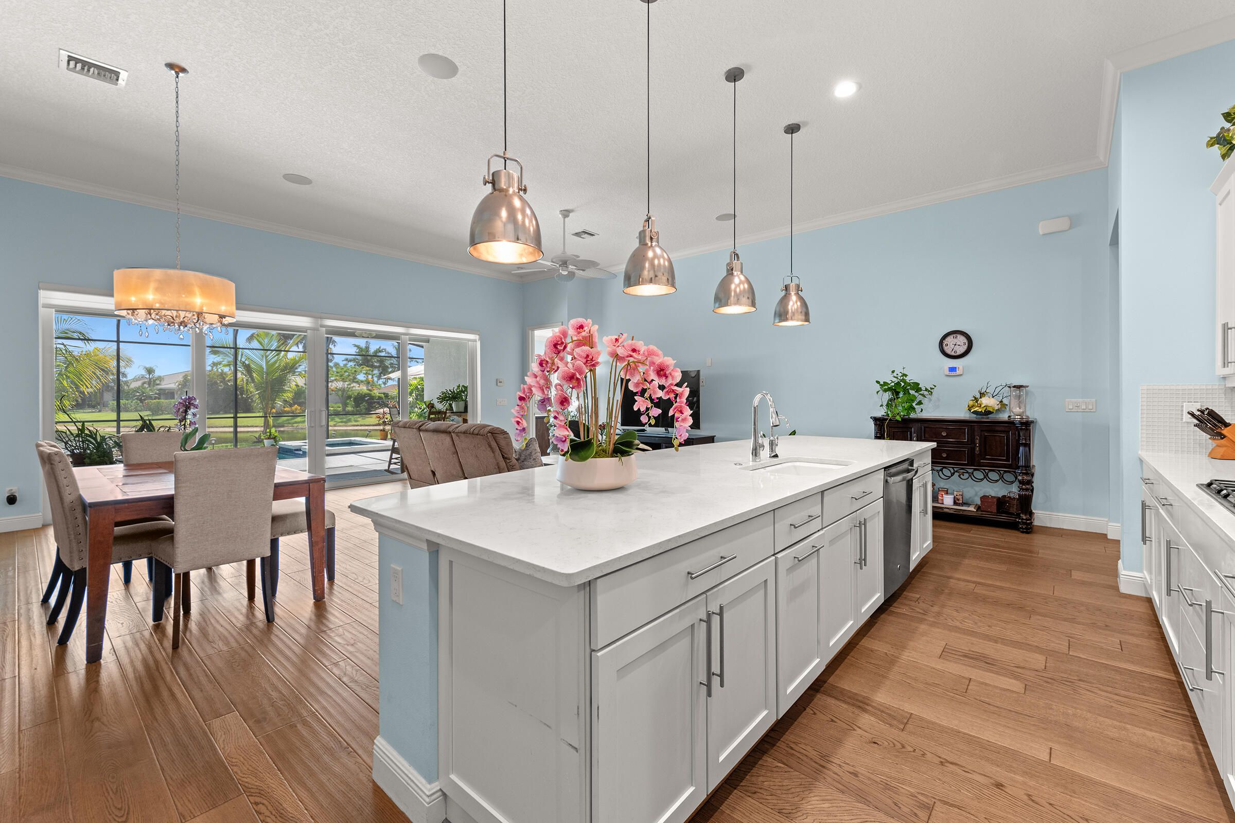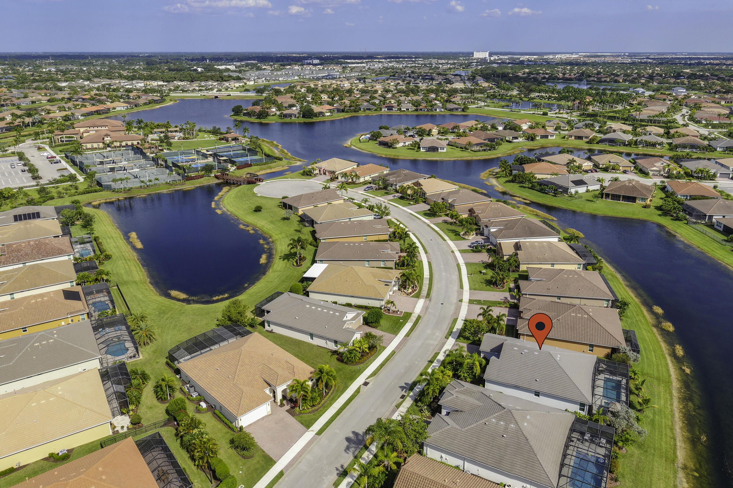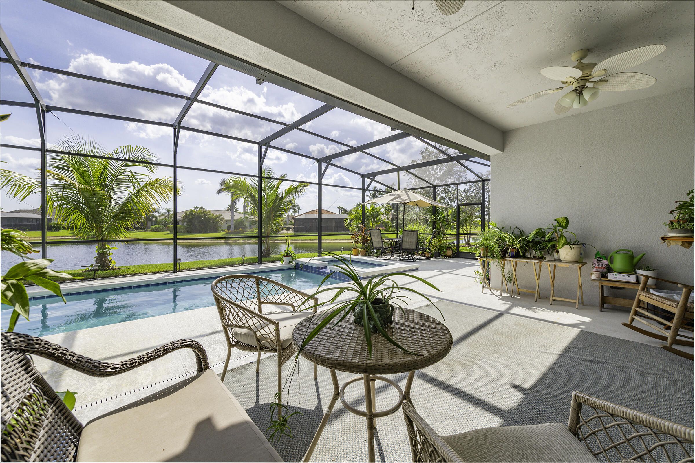 This LAKEFRONT POOL HOME sits on one of the BEST LOTS in Tradition offering real no filter SUNSET VIEWS, HEATED POOL & SPA, and a PRIVATE CUL-DE-SAC location on sought-after Vitalia Court, originally planned as MODEL ROW. Built in 2016, 3 BEDROOMS, PLUS a DEN, and 3 FULL BATHS and enjoy TWO PRIMARY SUITES on each wing of this home, CBS secured with IMPACT GLASS windows, and UPGRADED FLOORING throughout. The open layout highlights long lake views and effortless indoor-outdoor living. Enjoy a PRIVATE BRIDGE TO THE CLUBHOUSE and access to resort-style amenities. LOW INSURANCE & the HOA includes CABLE, INTERNET, ALARM, LAWN CARE, GYM, TENNIS, PICKLEBALL, POOL & MORE. Close to CLEVELAND CLINIC, TRADITION SQUARE, shopping, and 35 MINUTES TO THE BEACH. Located in a premier 55+ gated community