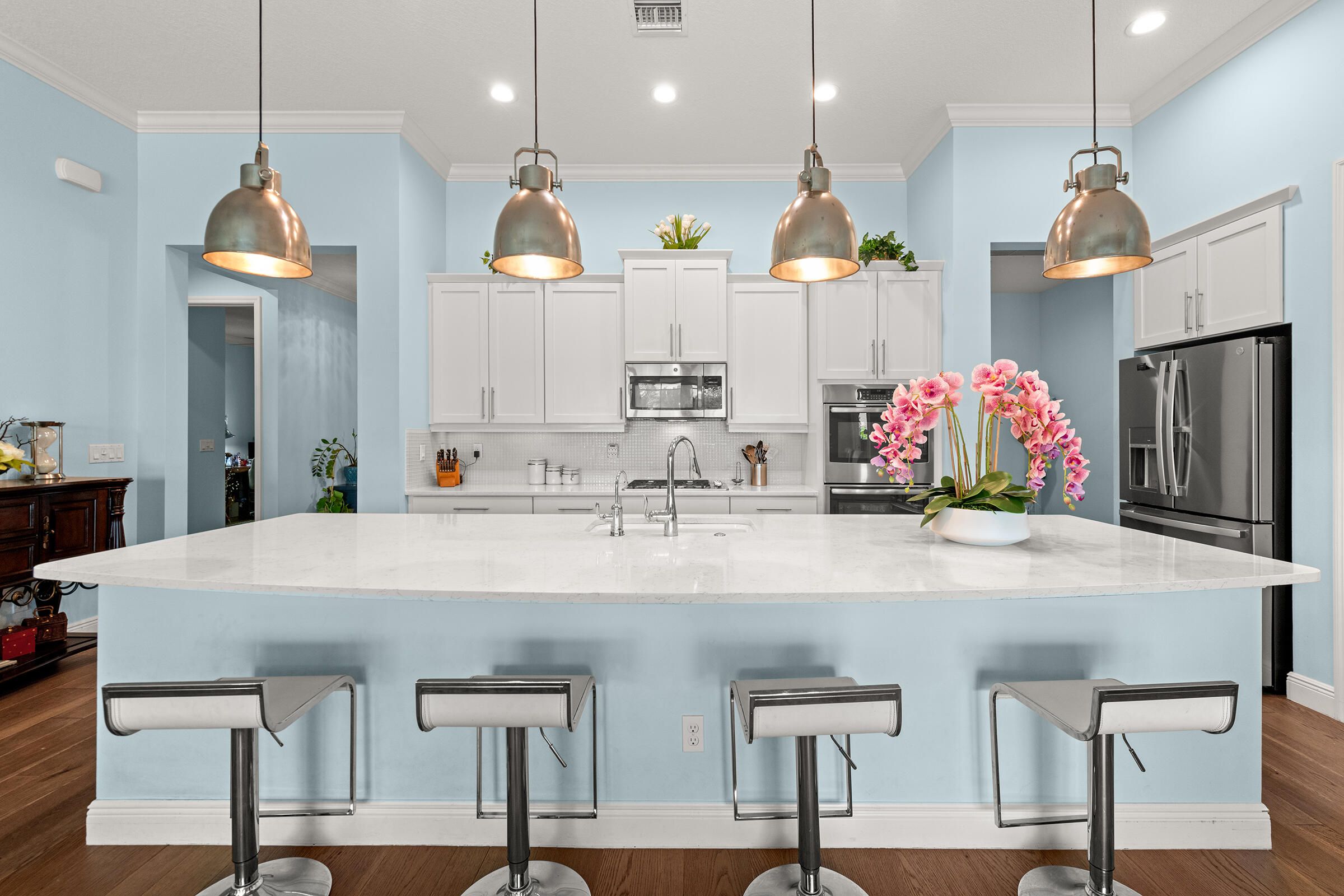 - Bar, Built-in Features, Entrance Foyer, High Ceilings, Pantry, Walk-In Closet(s), Closet Cabinetry, Custom Mirrors, Impact Glass, Living/Dining Room, Multiple Primary Bathrooms, Multiple Primary Suites, Dual Sinks, Main Level Primary, Separate Shower