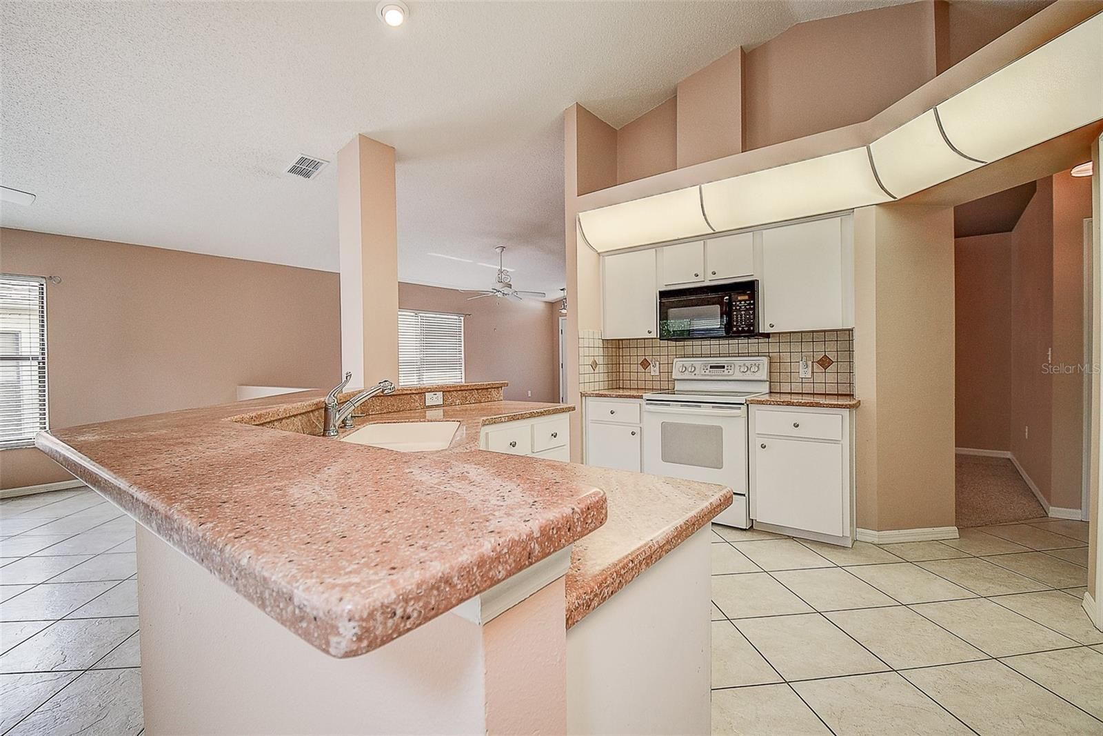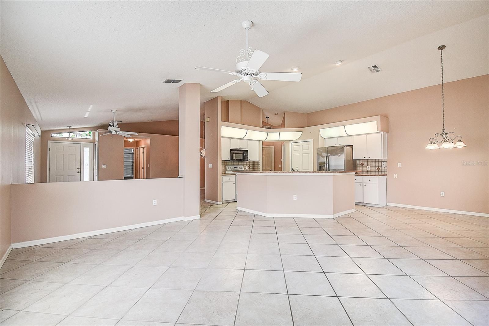 - Ceiling Fan(s), Eat-in Kitchen, Kitchen/Family Room Combo, Living/Dining Room, Open Floorplan, Split Bedrooms, Vaulted Ceiling(s), Walk-In Closet(s)