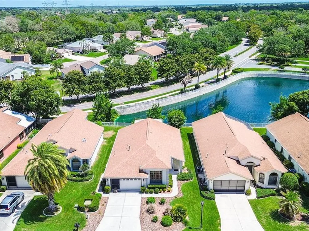 Located on a cul-de-sac in the desirable, gated 55-plus community of Wellington at Seven Hills. You’ll feel right at home when you walk into this 1700 sq ft, open floorplan home featuring vaulted ceilings, combination living/dining rooms and family room, two bedrooms, two baths and a two-car garage. The kitchen features Sile-stone counters, tile backsplash, raised breakfast bar, pantry closet, and breakfast-nook, overlooking the family room, opening to the large, fully screened lanai with a beautiful view of the pond. The spacious primary bedroom has a dual-entry walk-in closet, an ensuite bathroom, dual-sink vanity, and large shower. The second bedroom and bathroom are “split” from the primary bedroom. Enjoy the Florida lifestyle, only a short walk to the clubhouse, with its own restaurant and bar, heated pool and spa, fitness center, billiards room, tennis, pickleball, and bocce courts. Along with numerous clubs and social events. Wellington at Seven Hills Community is conveniently located to shopping, restaurants, entertainment, and an easy commute to Tampa and the Gulf Beaches. Don’t miss this opportunity!